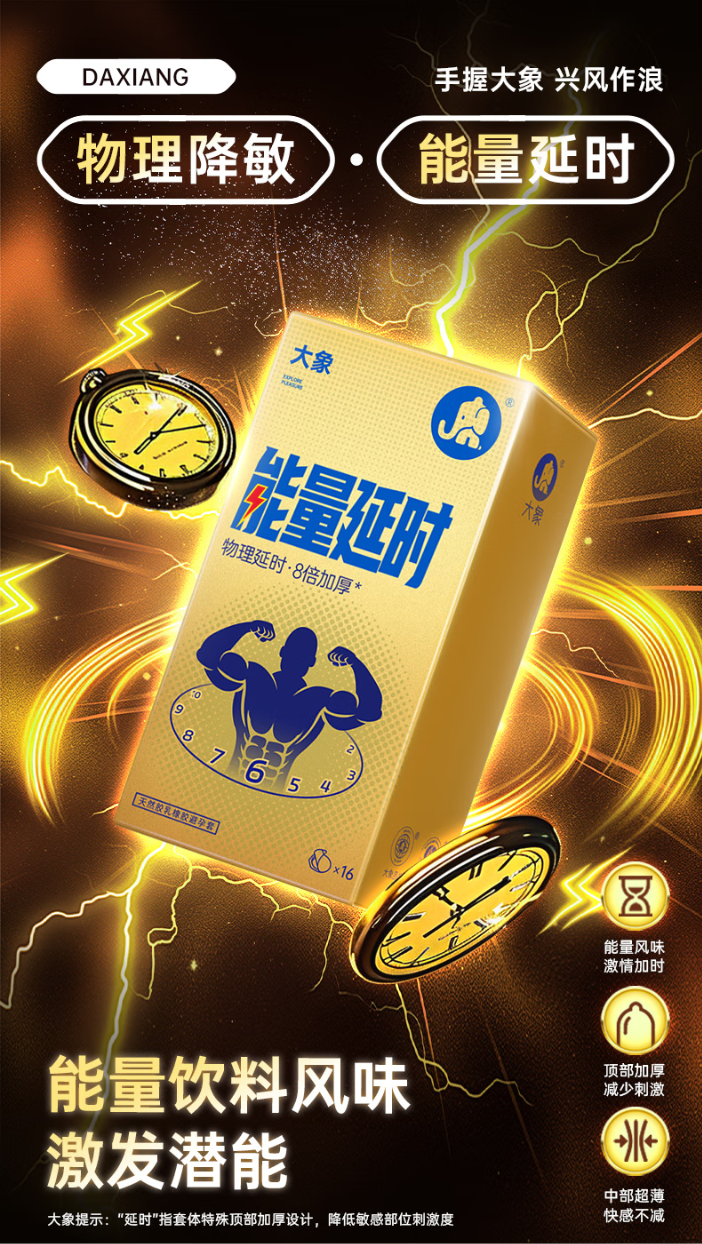 大象避孕套能量延时16只装加时安全套情趣 螺纹超薄大颗粒套套