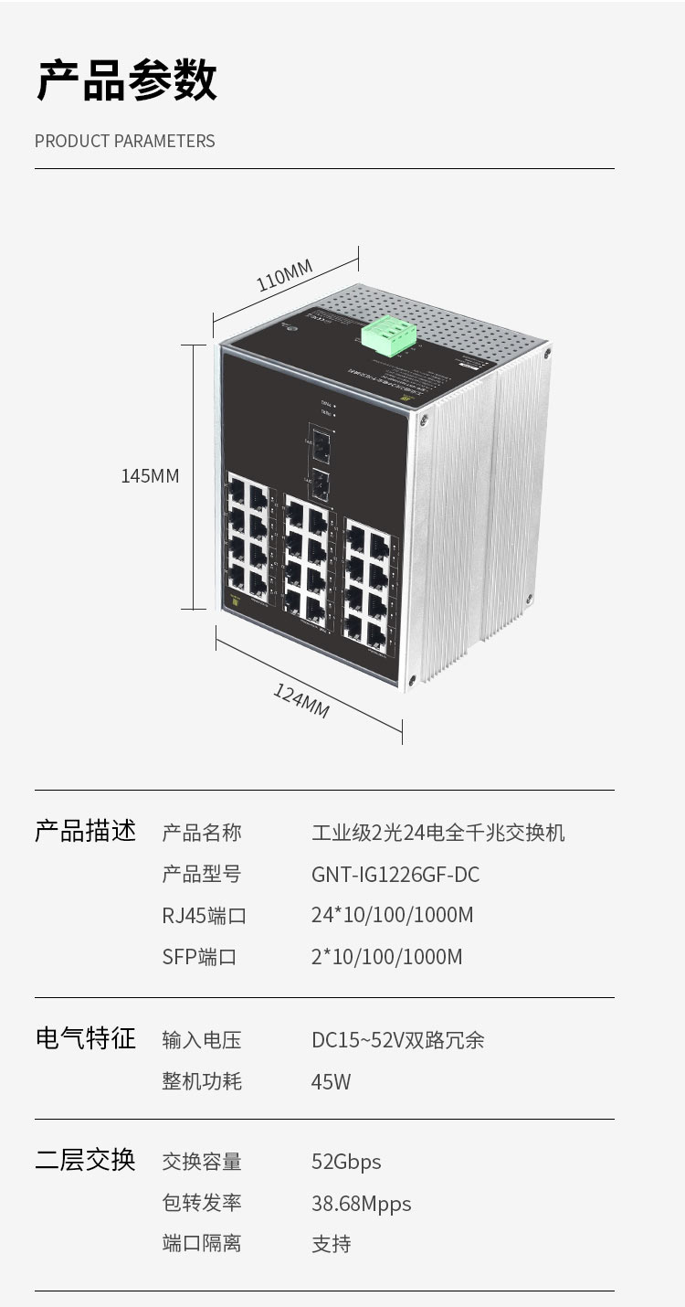 工业级2光24电全千兆交换机 IG1226GF-DC