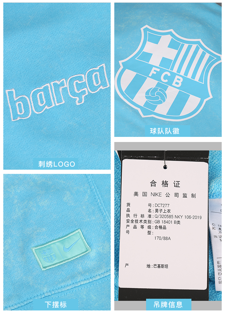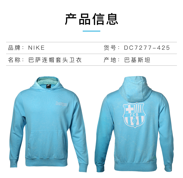 正品NIKE/耐克巴萨足球休闲连帽套头衫卫衣男DC7277-425