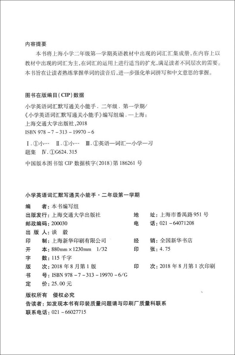 交大之星 小学英语词汇默写通关小能手 二年级第一学期/2年级上 配套上海牛津英语教材使用 小学生英语词汇默写辅导书
