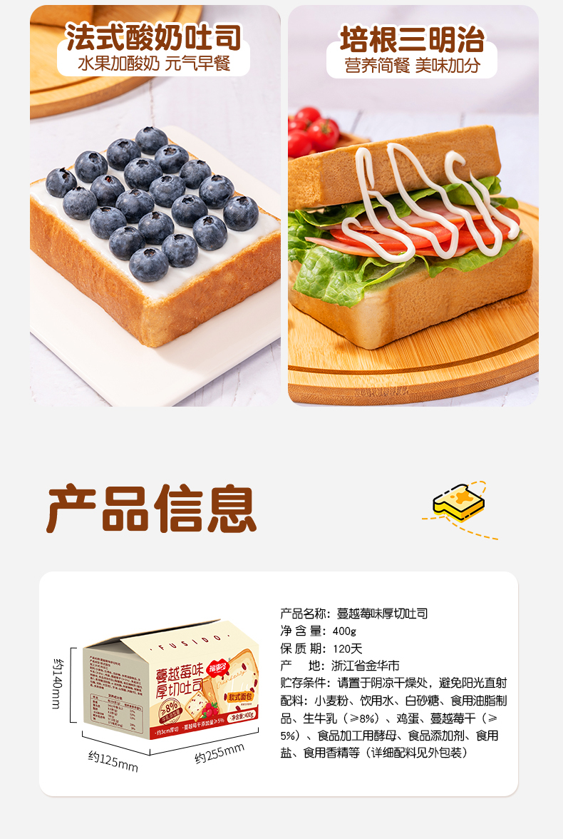 福事多蔓越莓口味厚切吐司400g*2箱