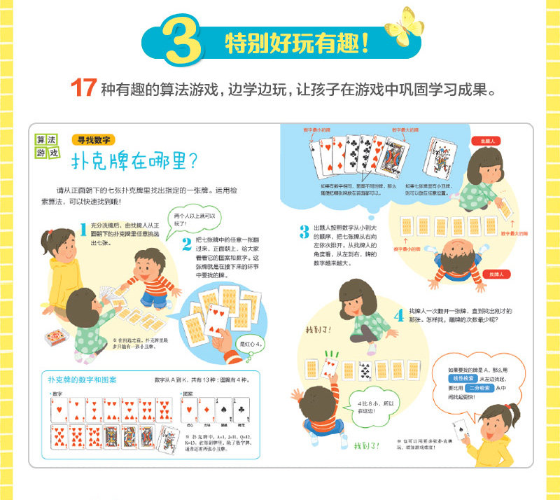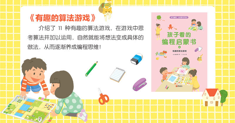 这是一套孩子能看懂的趣味编程思维养成书。它更注重孩子编程思维的养成,从6个常见的生活情景入手,亲切熟悉,帮助孩子轻松理解算法。通过17种有趣的算法游戏,边学边玩,让孩子在游戏中巩固学习成果。