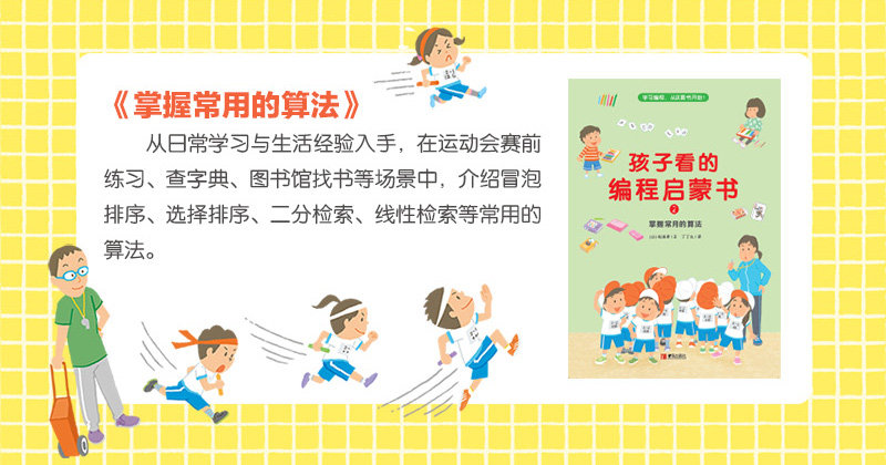 把大量东西按一定规则排列(排序),从中找出所需要的部分(检索),是计算机的“拿手好戏”。这本书从孩子们的日常学习与生活经验入手,在运动会赛前练习、查字典、图书馆找书等场景中,介绍了冒泡排序、选择排序、二分检索、线性检索等常用的算法。