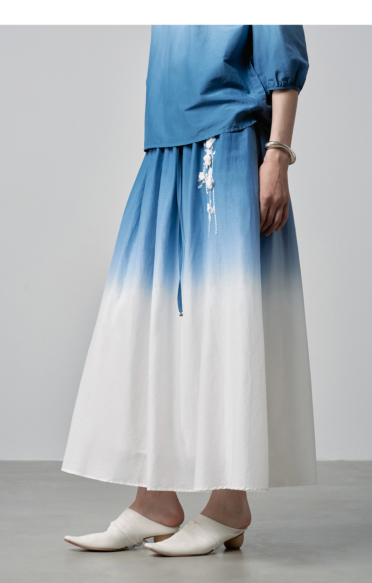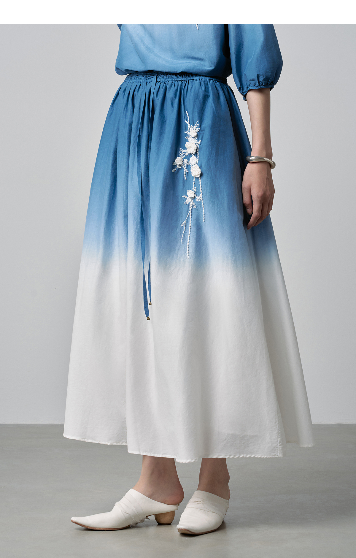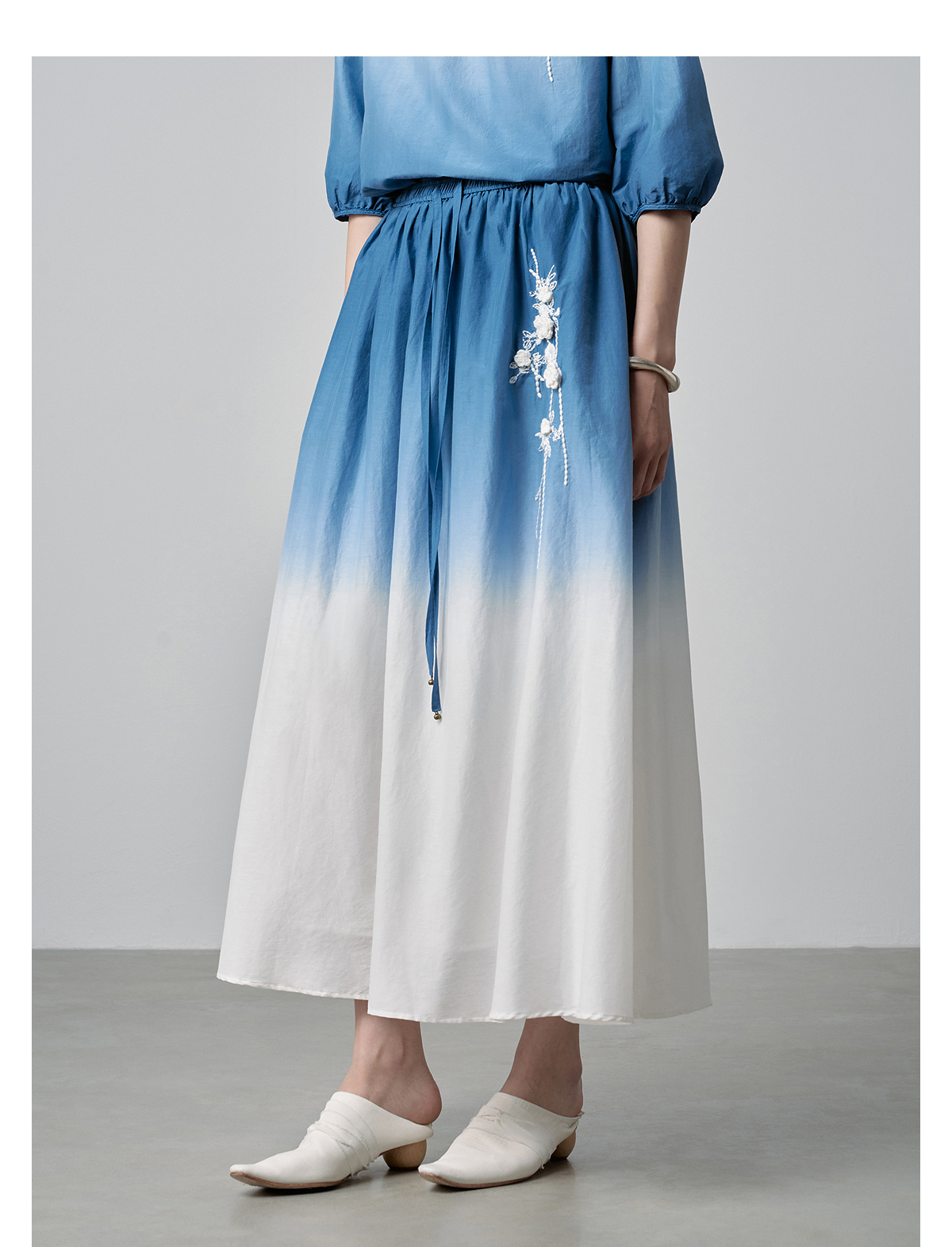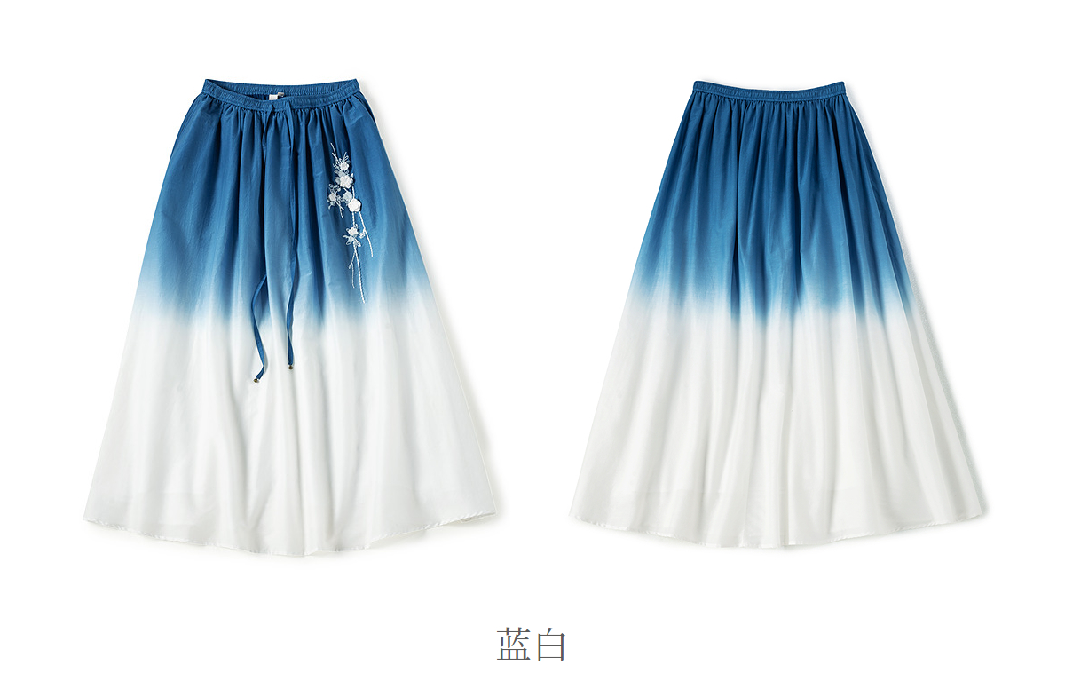 【林栖设计小店】手工钩花|丝棉蓝白渐变优雅百搭2026春新款绣花半身裙T1961278