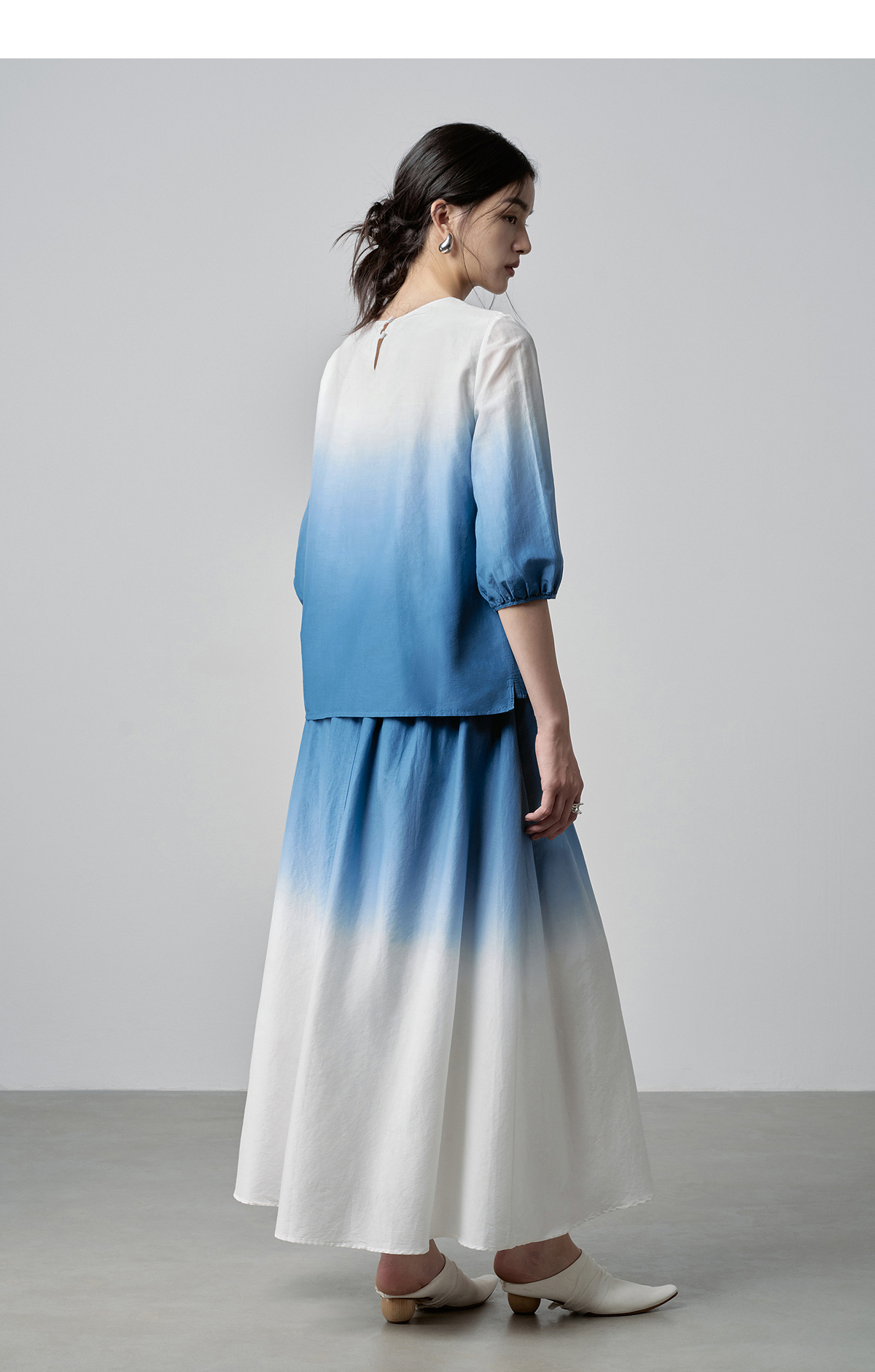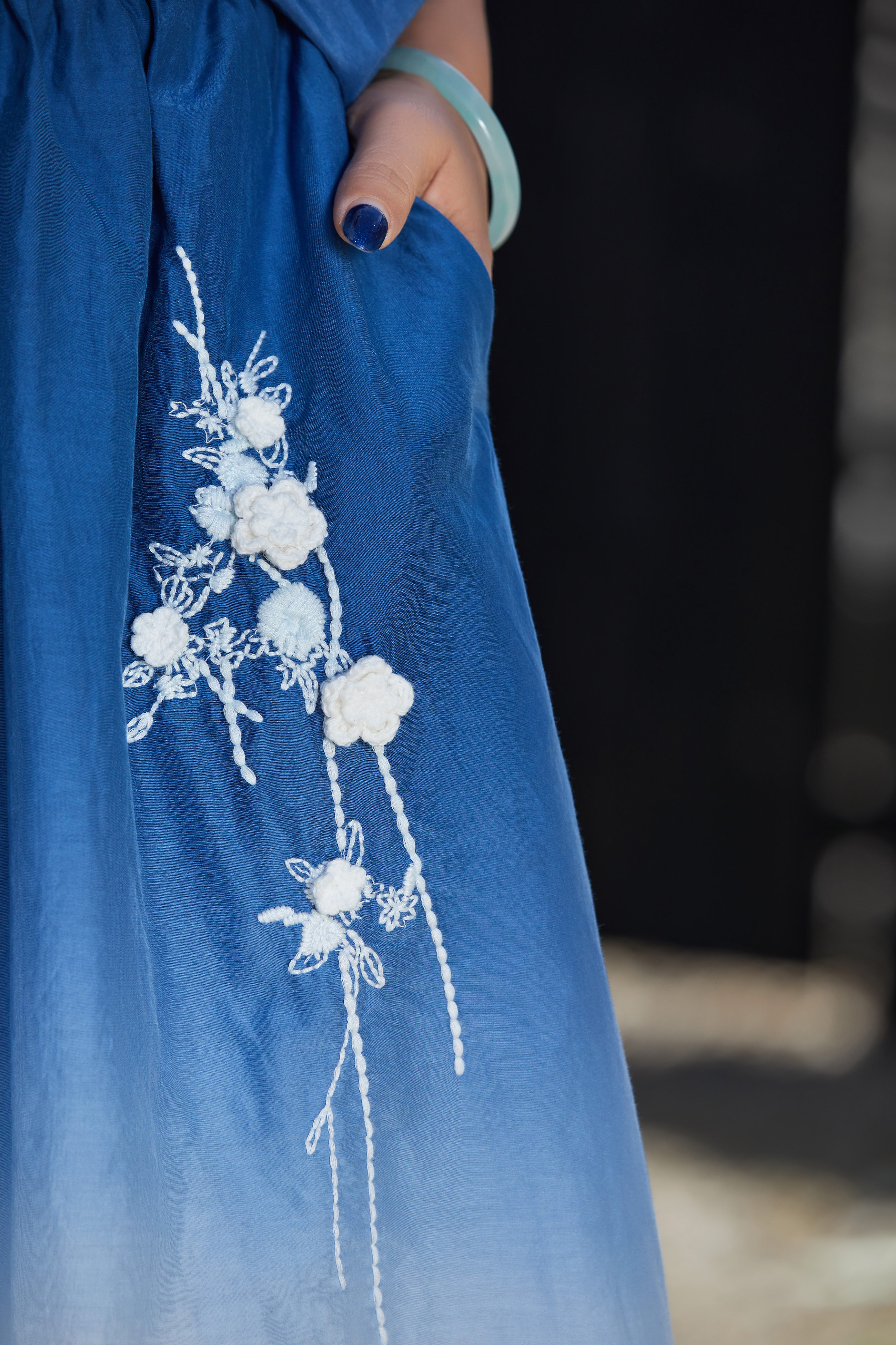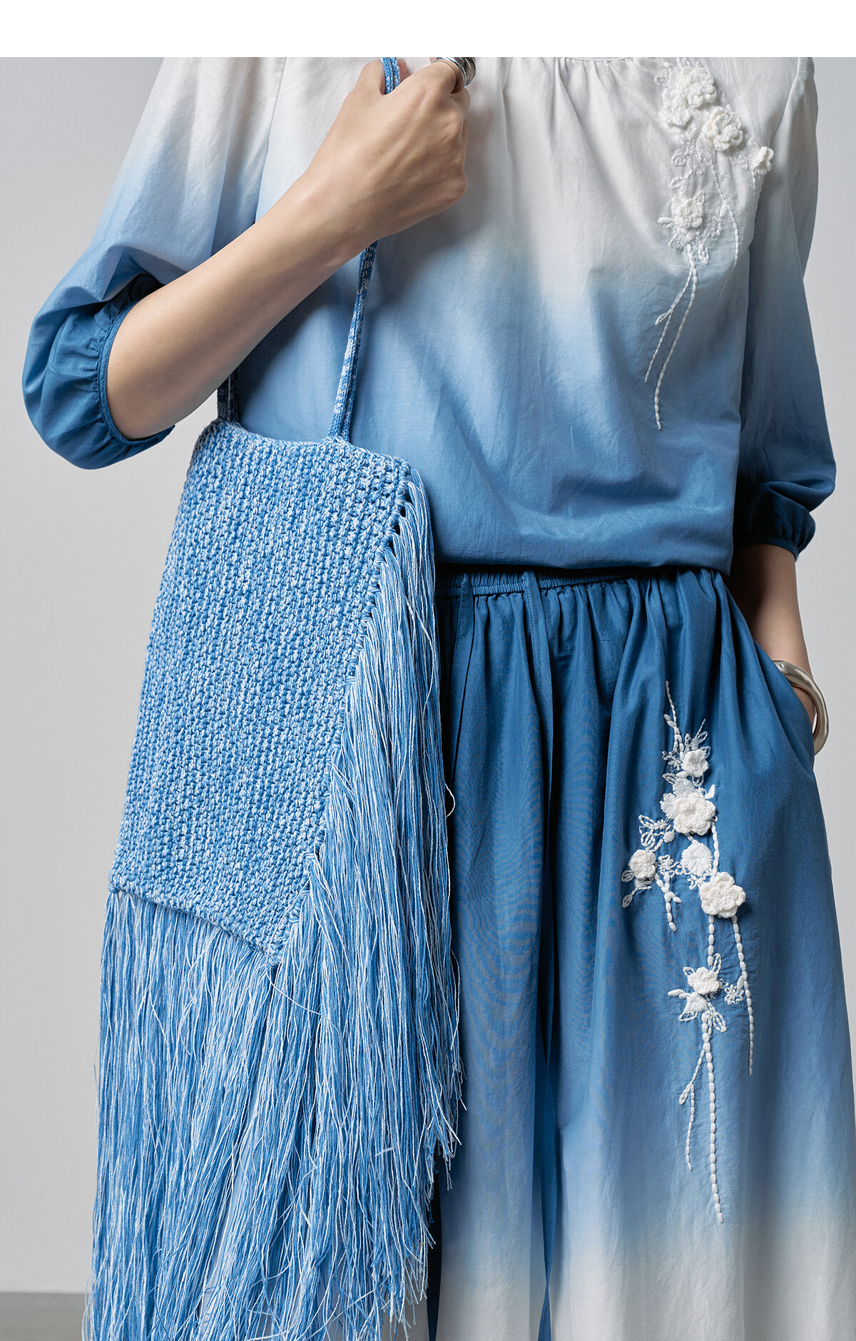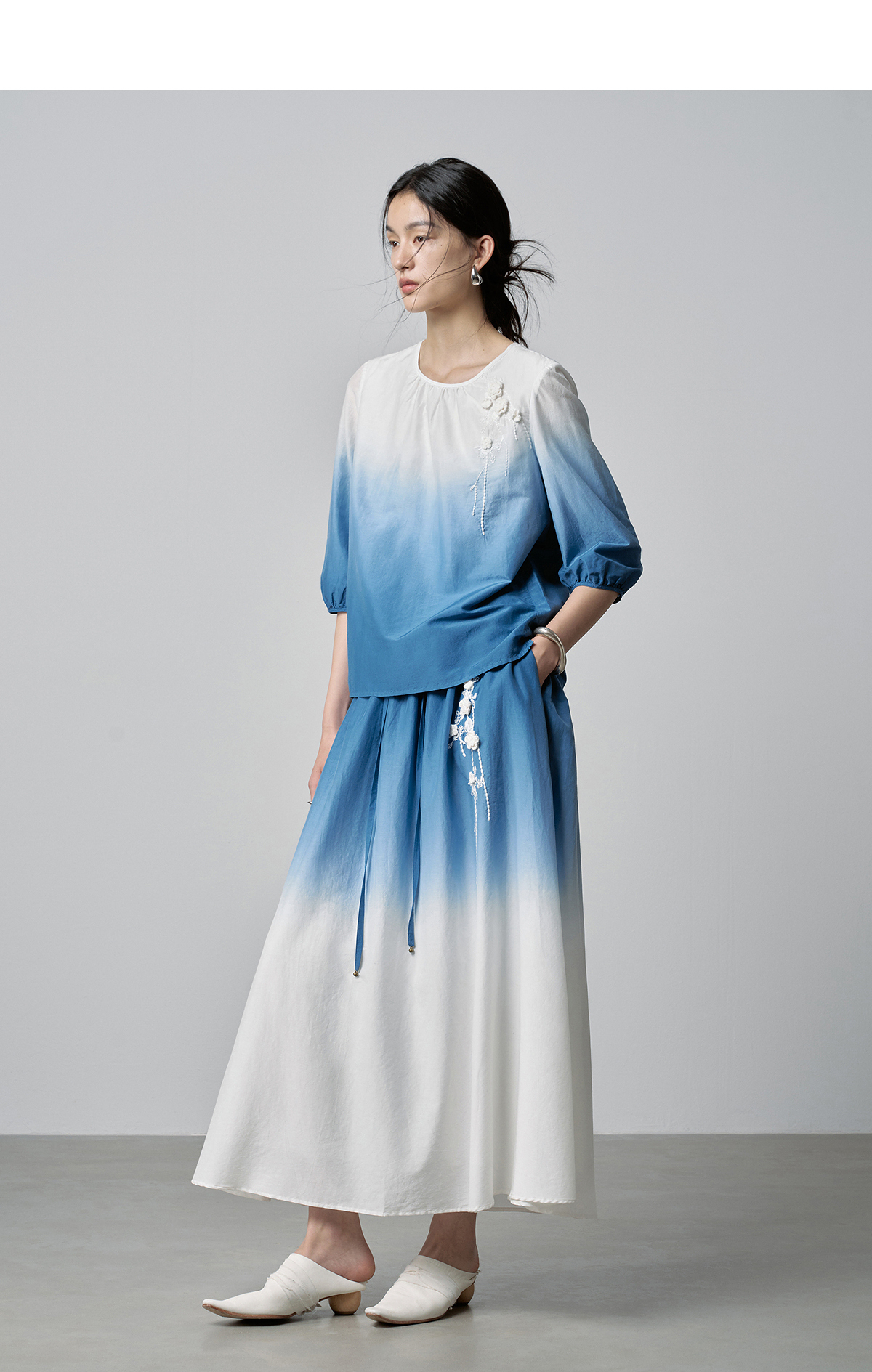 【林栖设计小店】手工钩花|丝棉蓝白渐变优雅百搭2026春新款绣花半身裙T1961278
