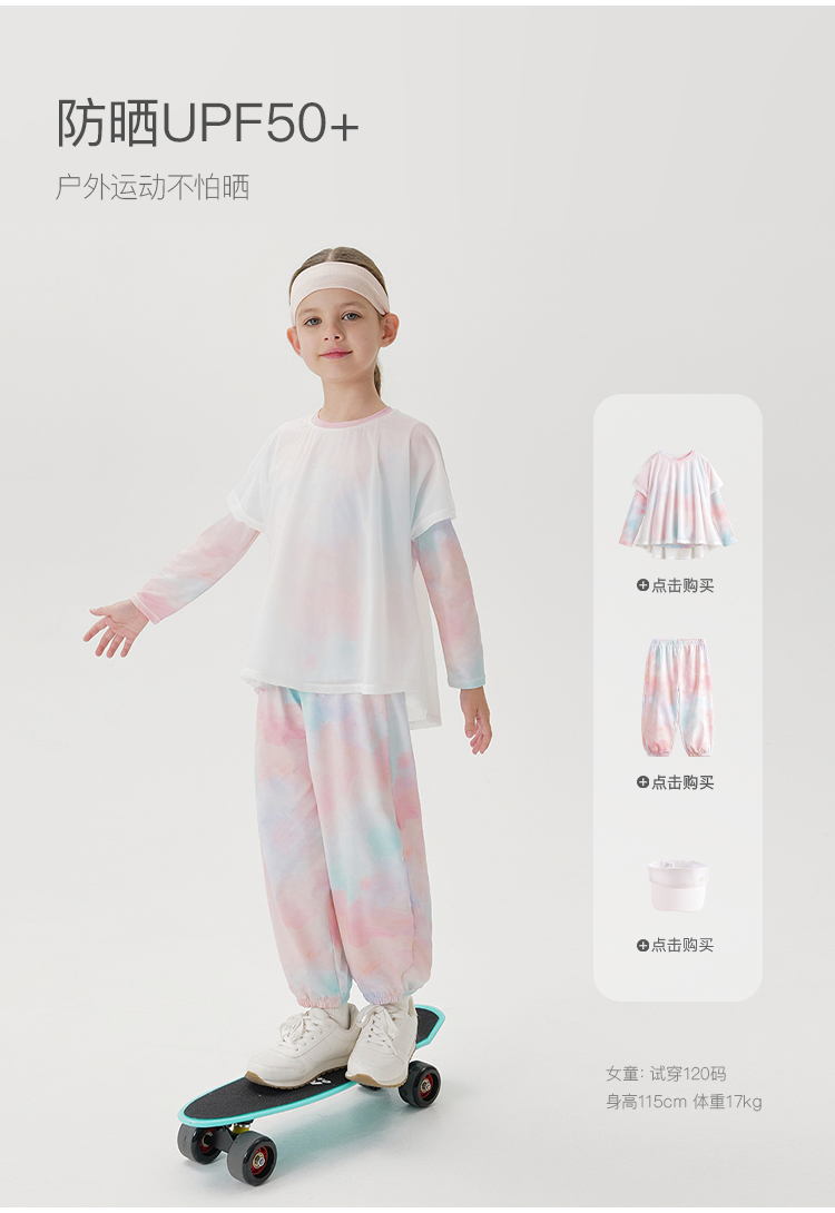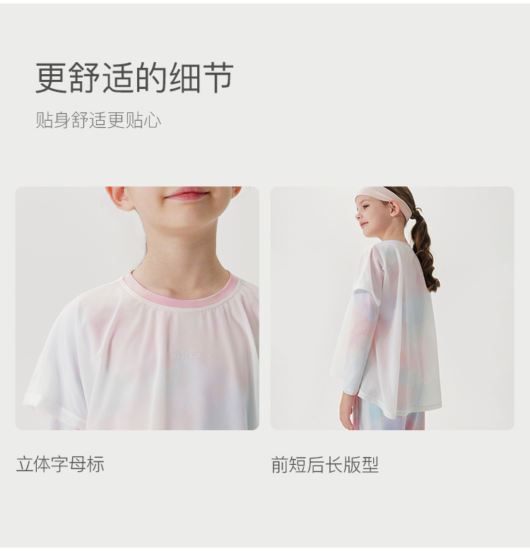 【凉感防晒】马克珍妮女童炫彩星云假两件运动仙女T恤夏装241677