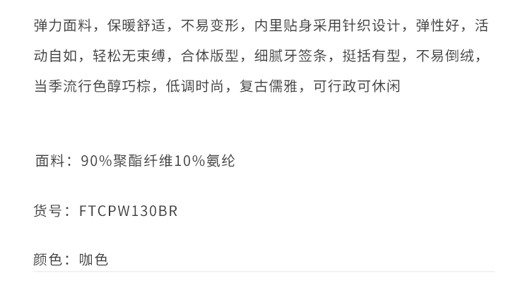 callisto咖啡色弹力面料休闲裤