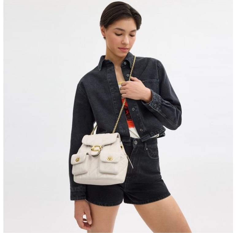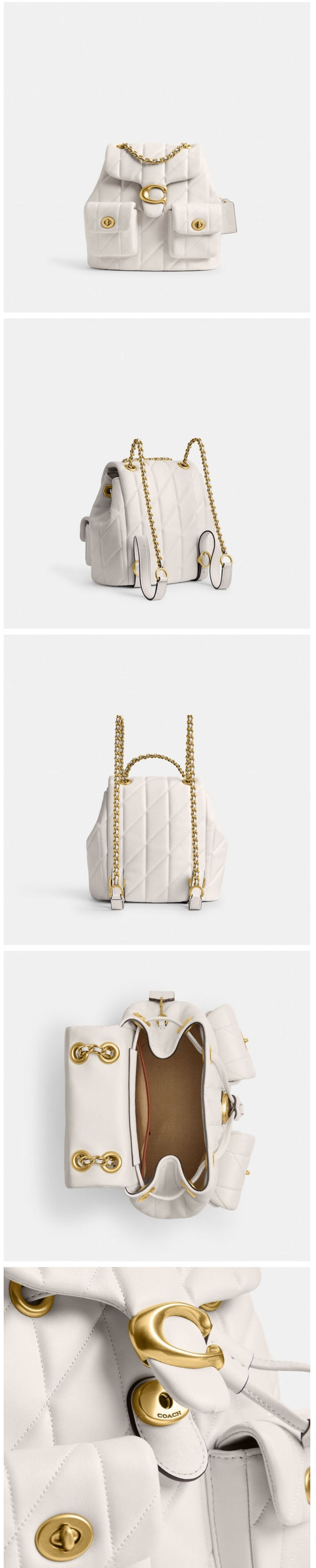 【新品特惠 香港直邮】COACH/蔻驰 女士菱格纹绗缝TABBY双肩包 白色 清关约7个工作日-w