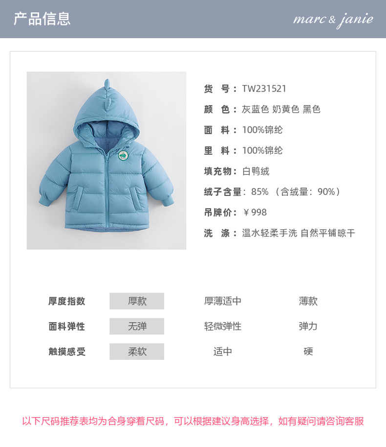 【三防】马克珍妮冬装新款男童小恐龙加厚保暖中长款羽绒服231521