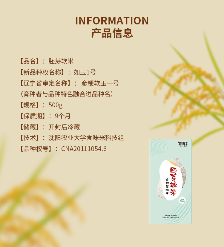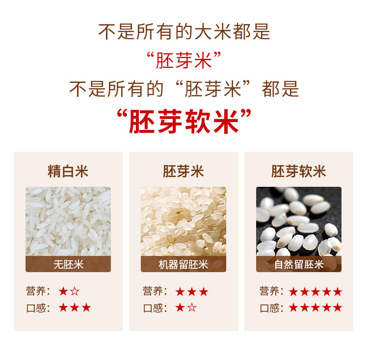 4、留胚率达到90%以上,营养比普通胚芽米高很多。