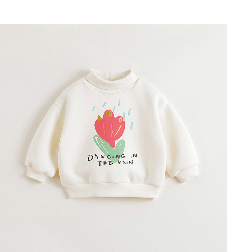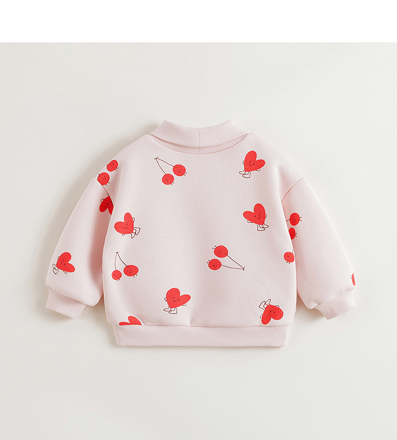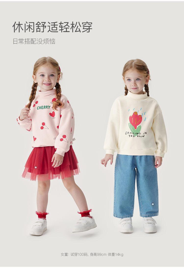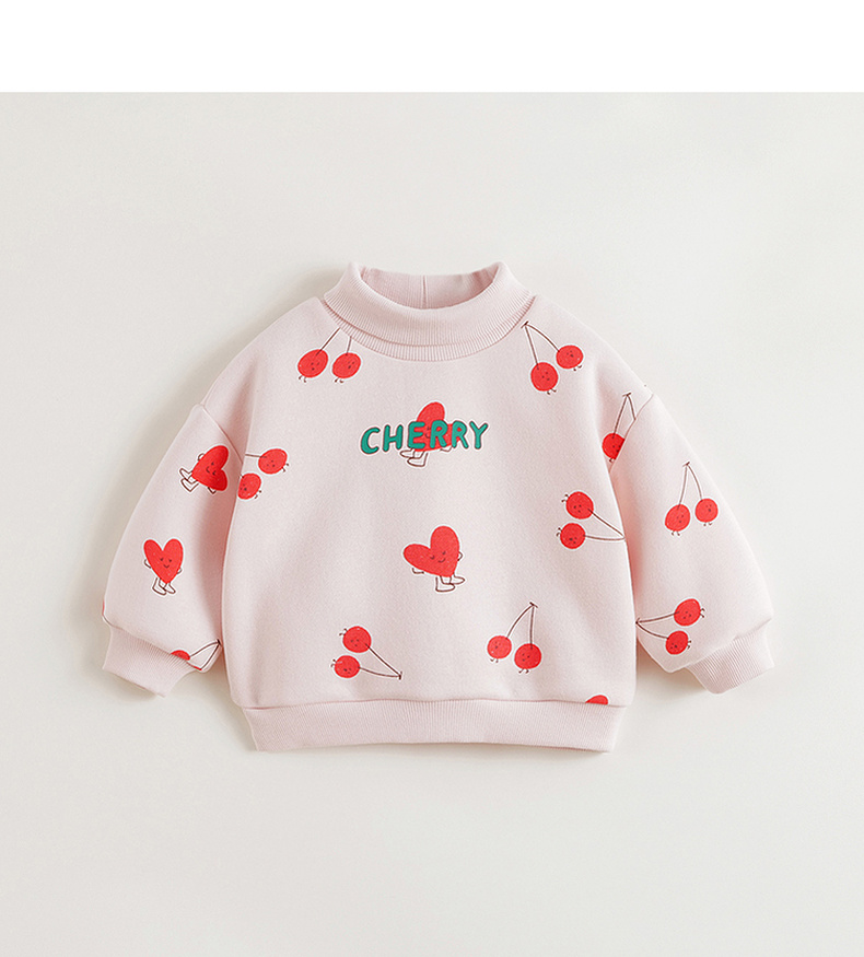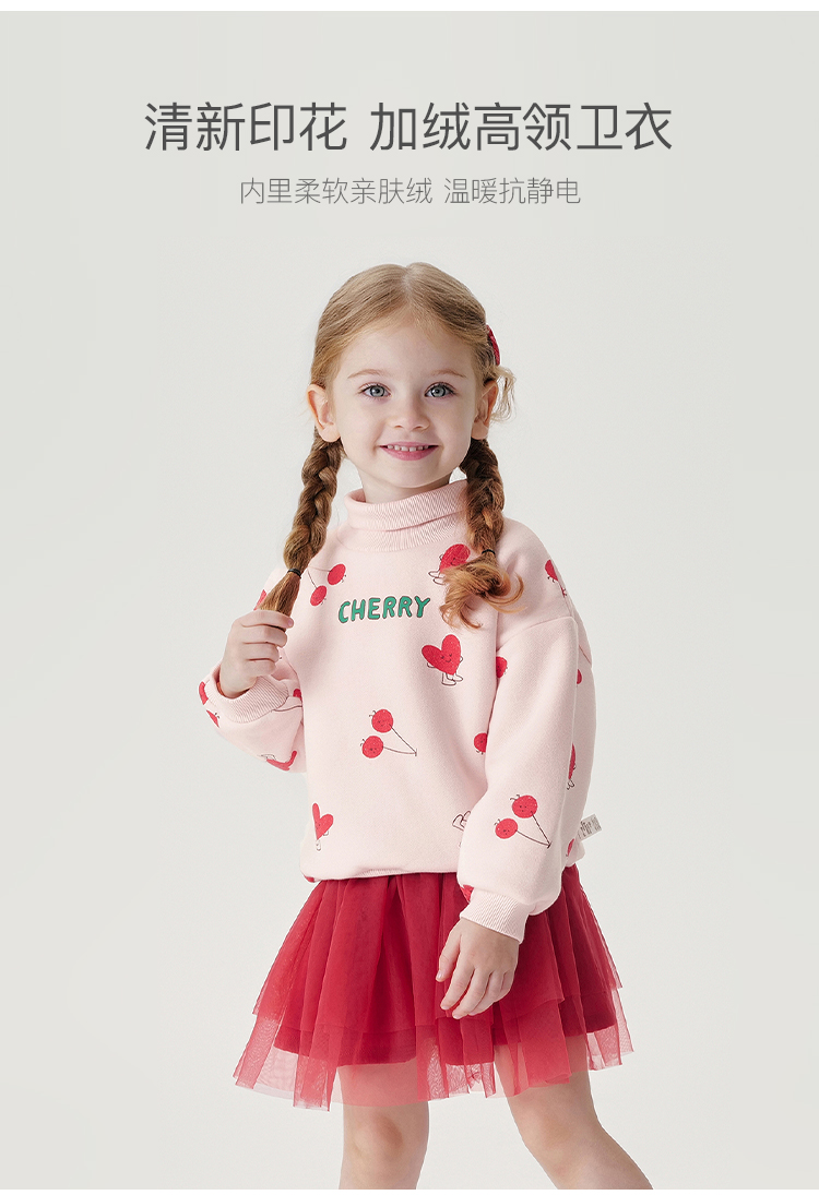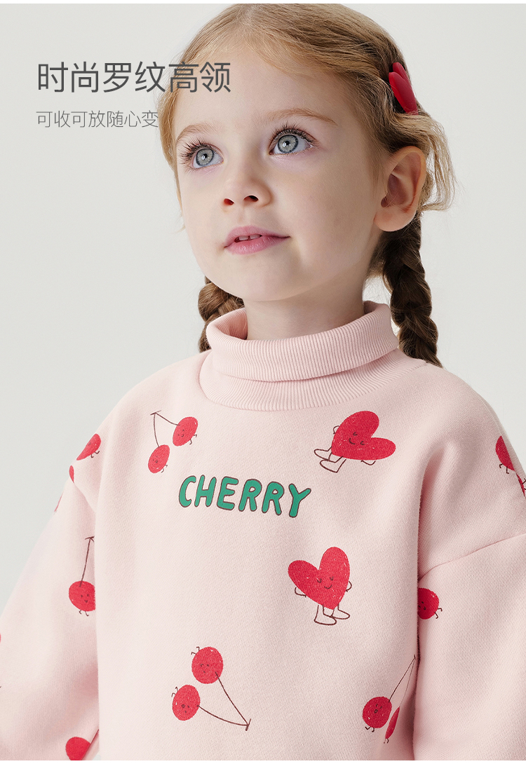 【加绒】马克珍妮女童小樱桃印花高领卫衣宝宝上衣冬装新款240975