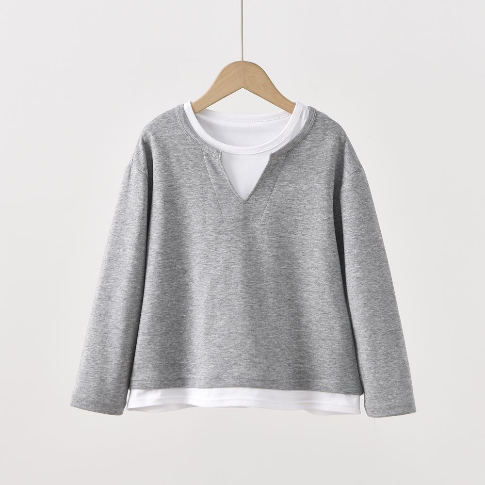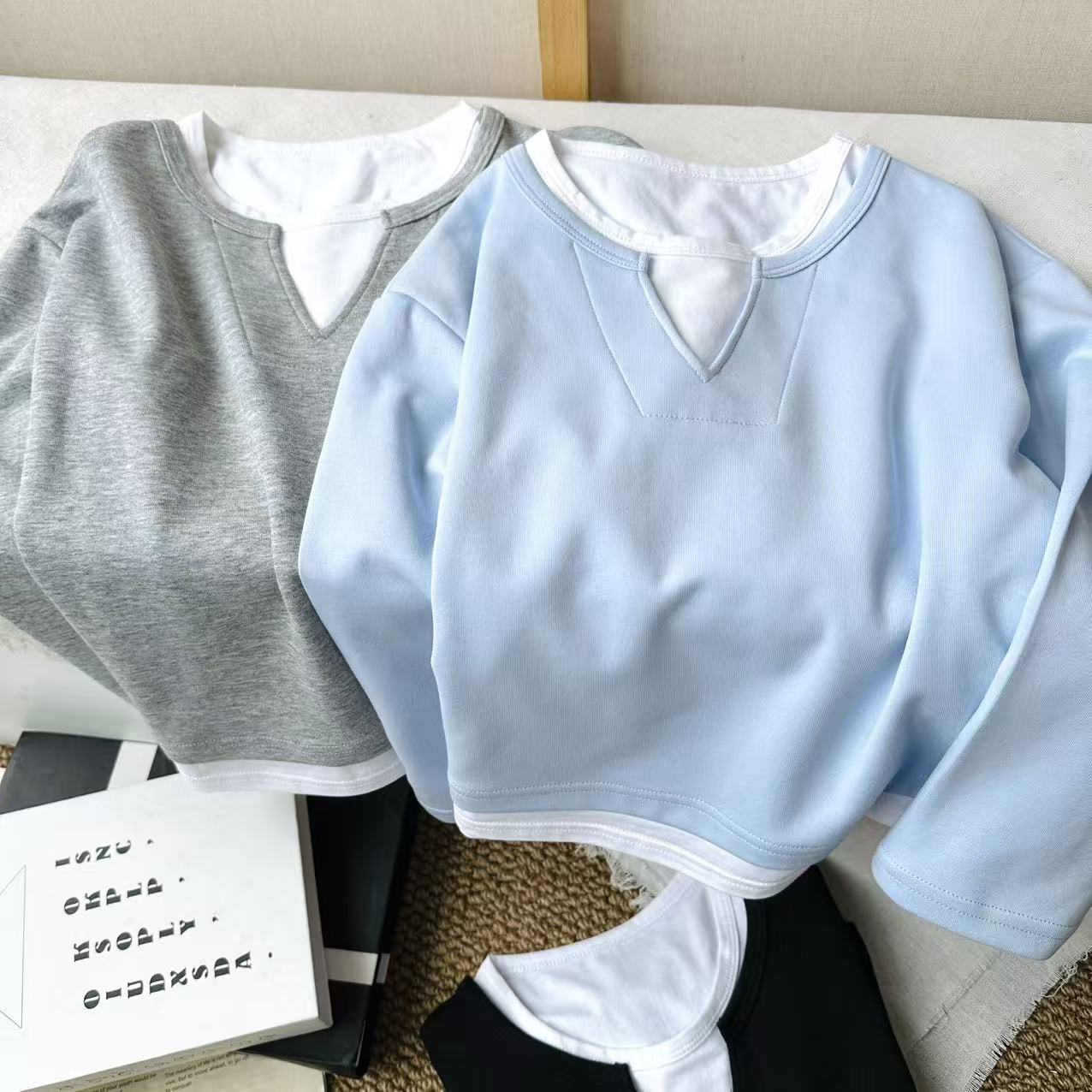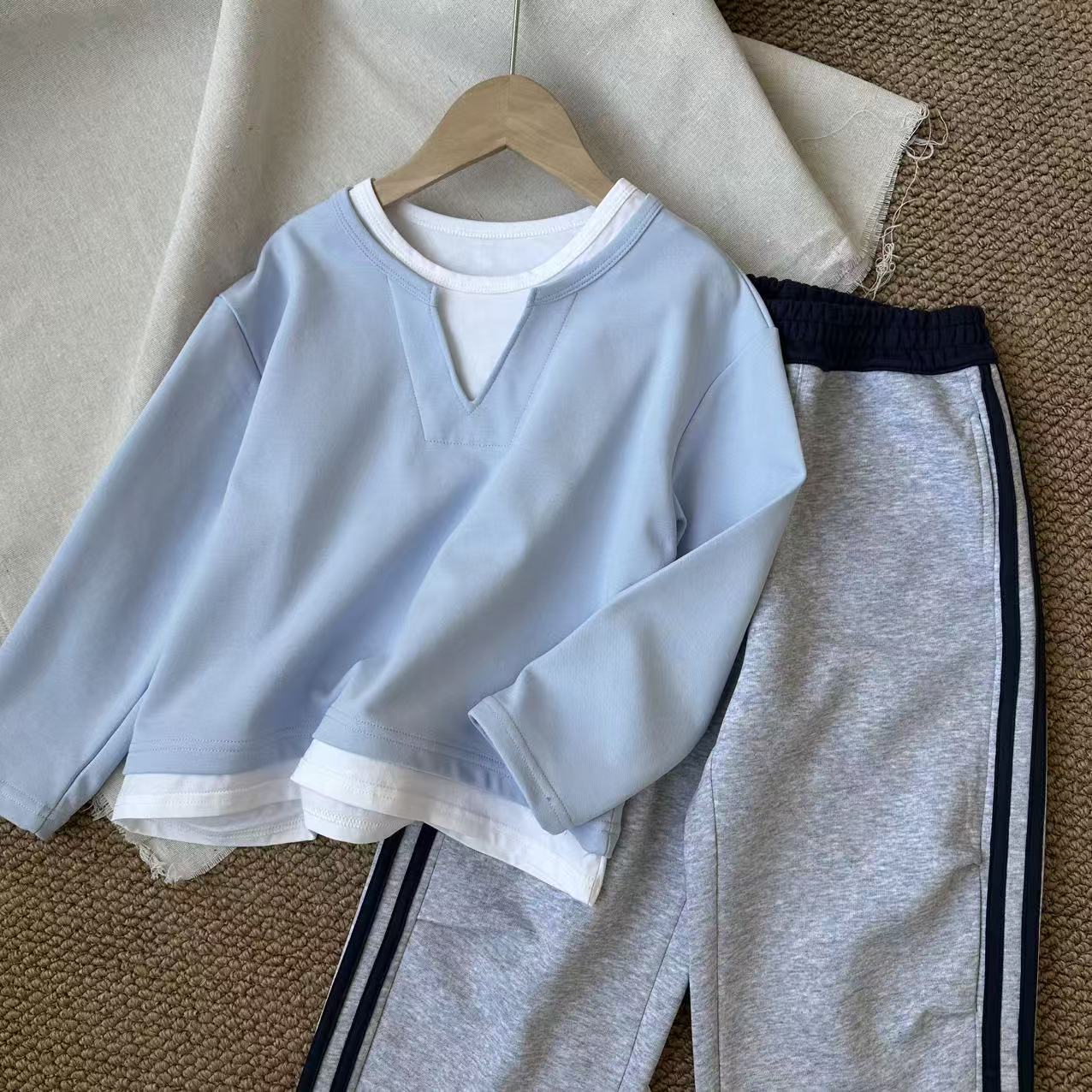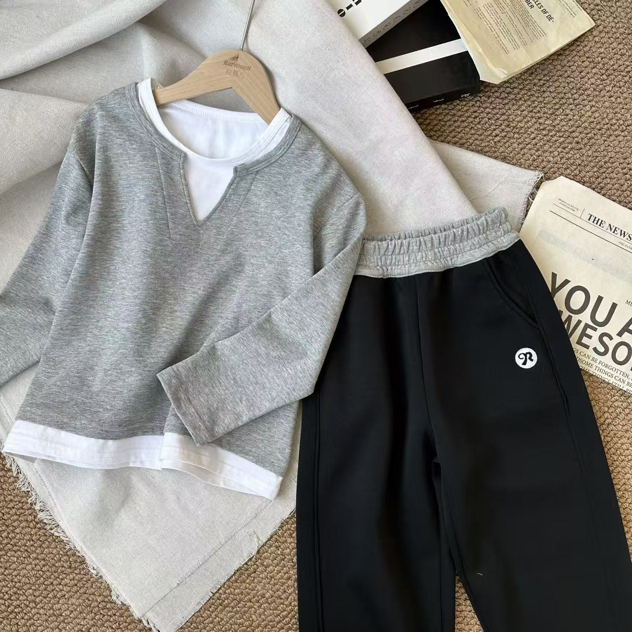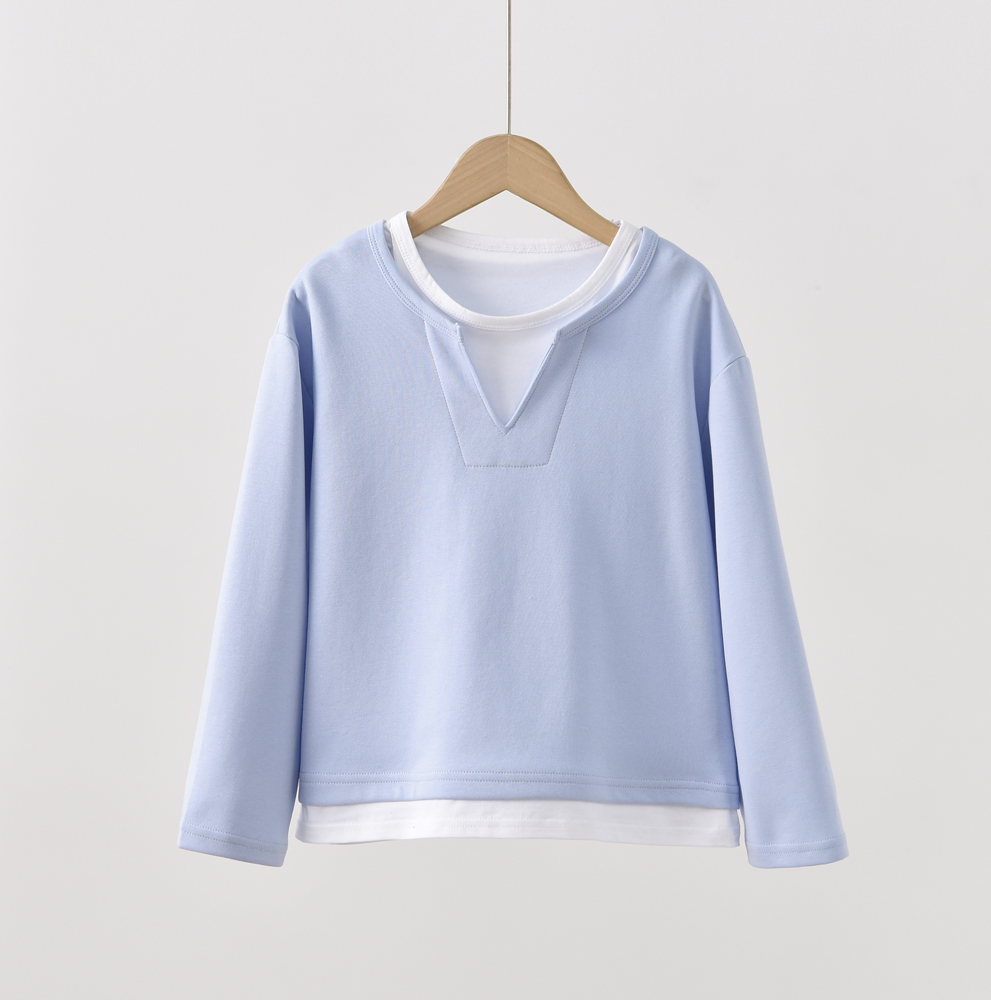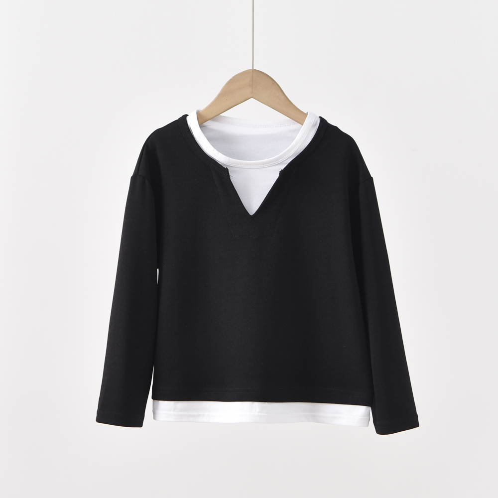 Rarmoell拉慕儿26年春款新品撞色假两件长袖T恤上衣休闲百搭儿童款时尚套头衫