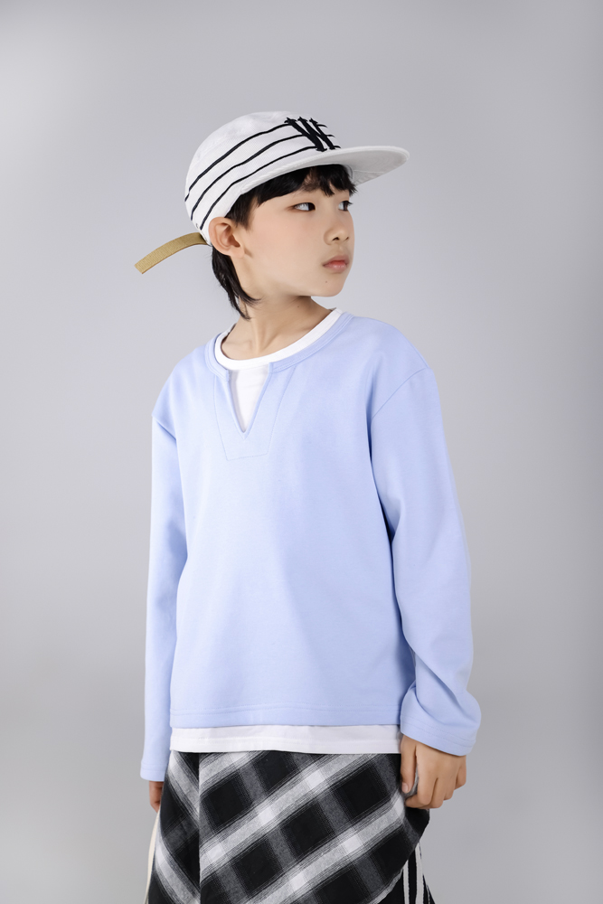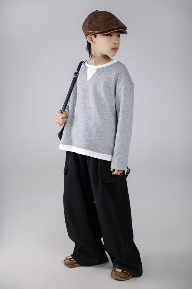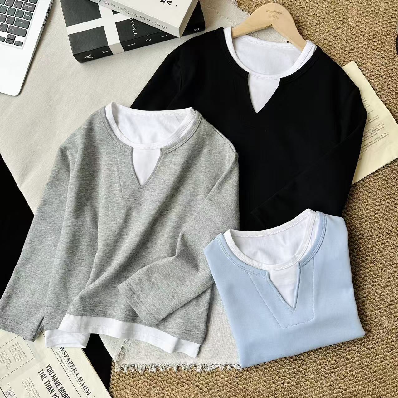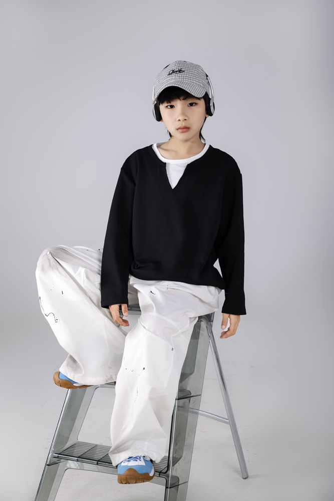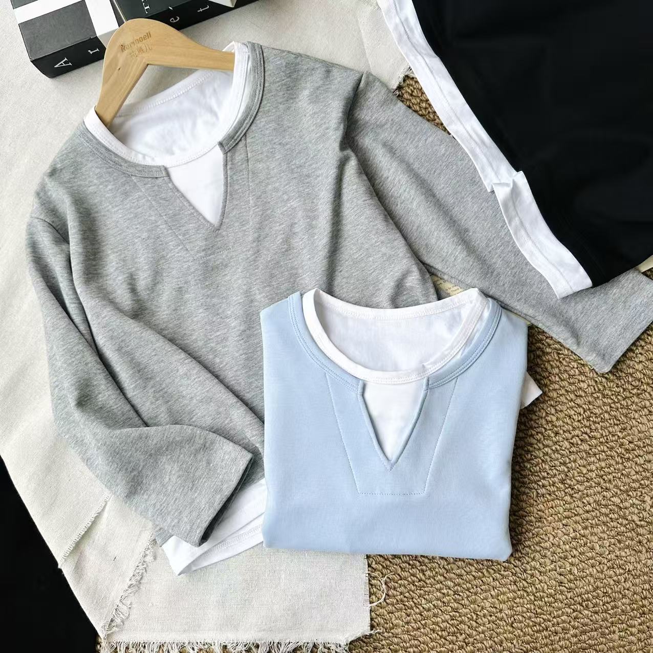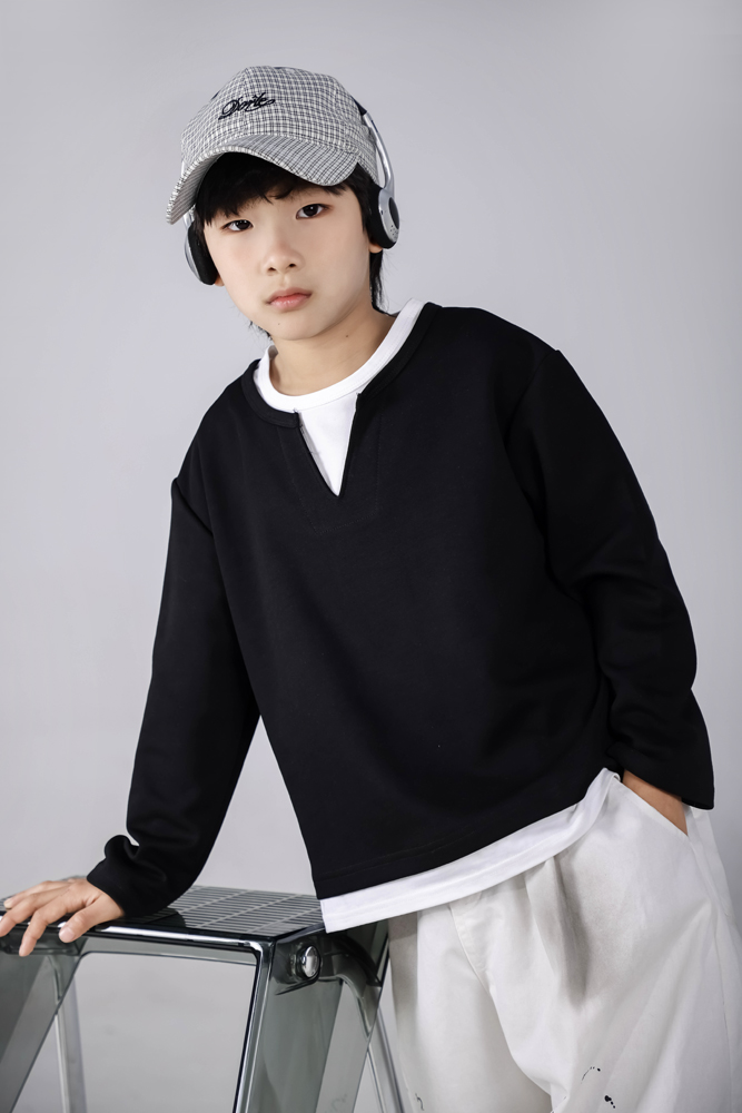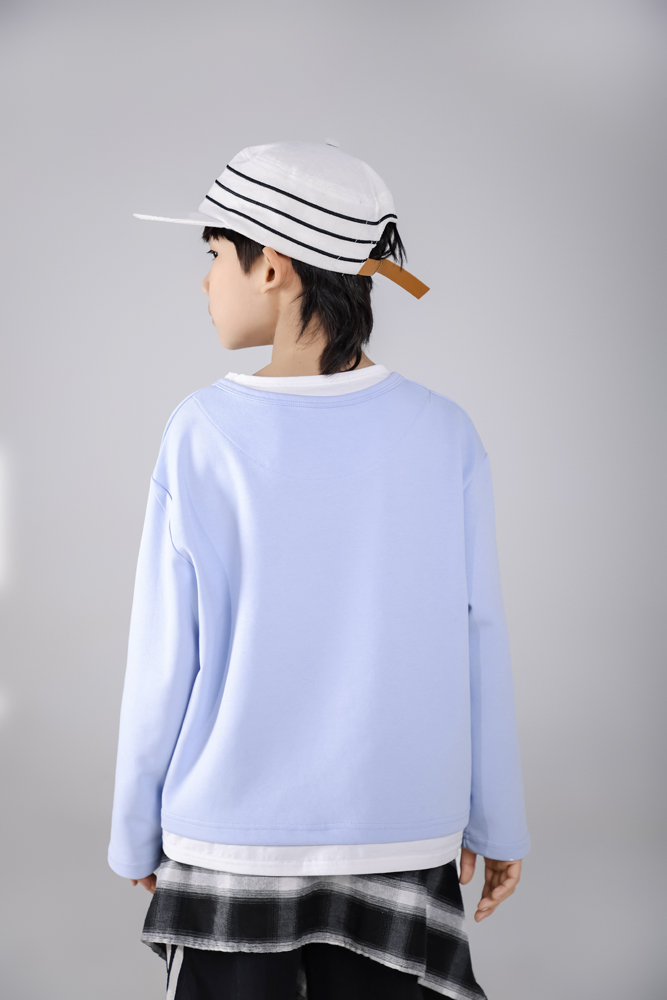 Rarmoell拉慕儿26年春款新品撞色假两件长袖T恤上衣休闲百搭儿童款时尚套头衫