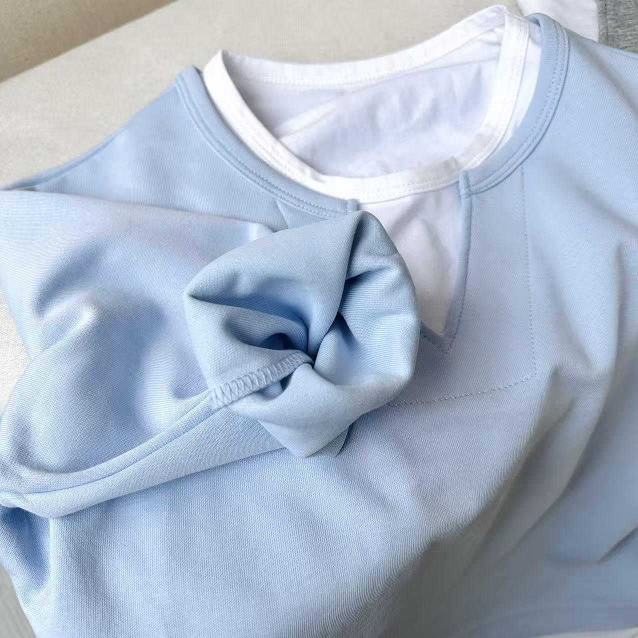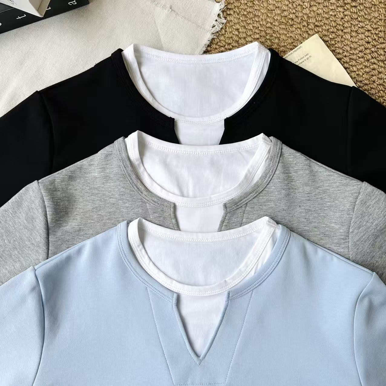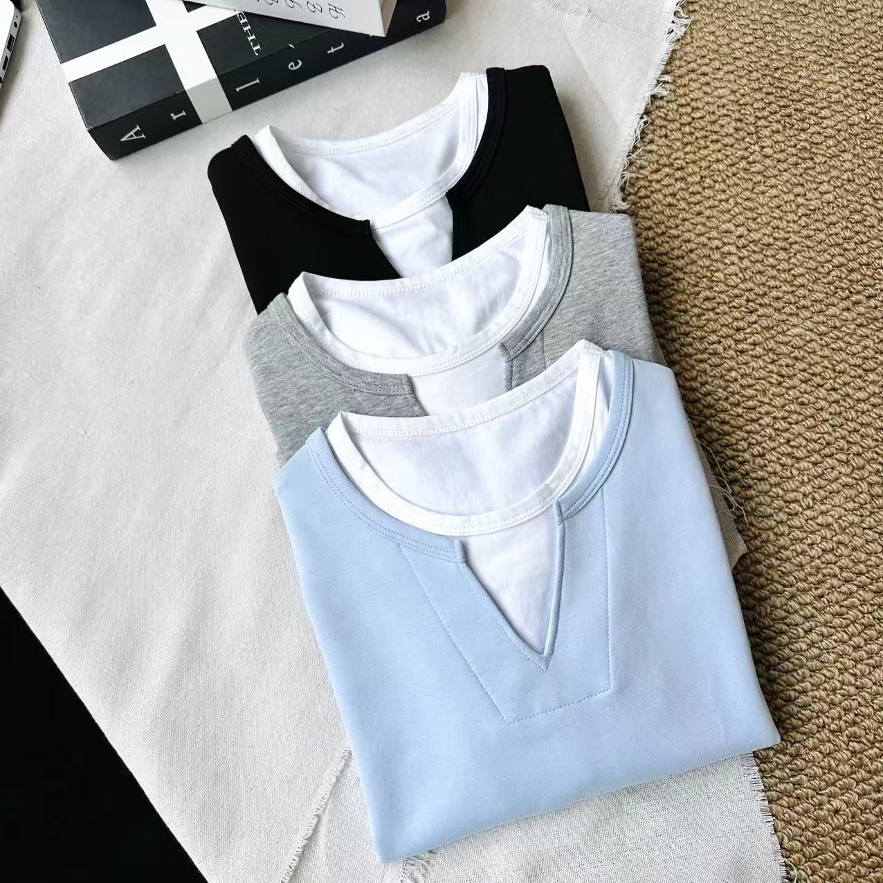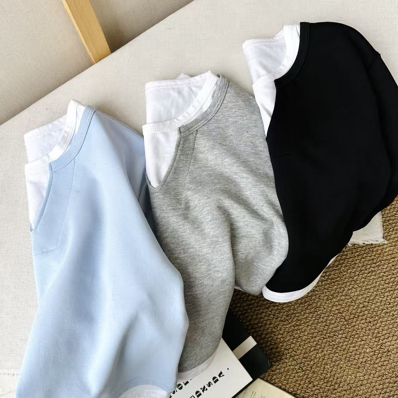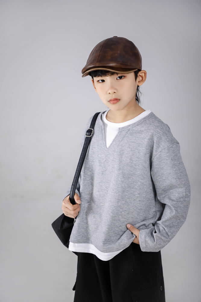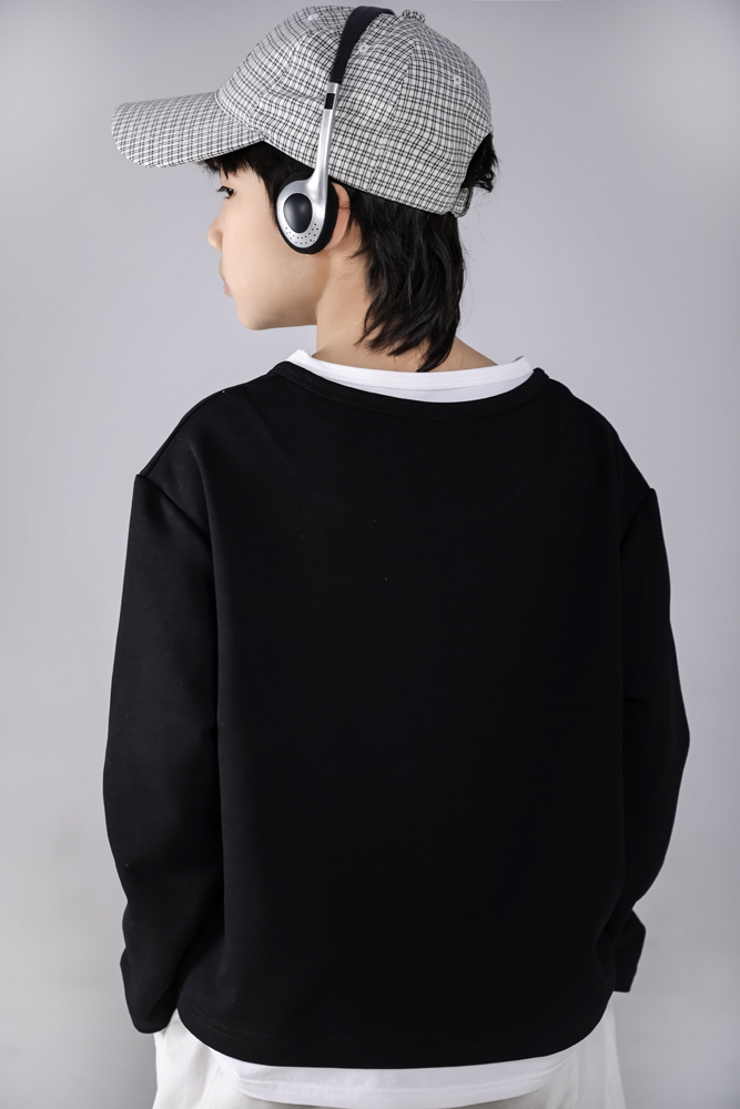 Rarmoell拉慕儿26年春款新品撞色假两件长袖T恤上衣休闲百搭儿童款时尚套头衫