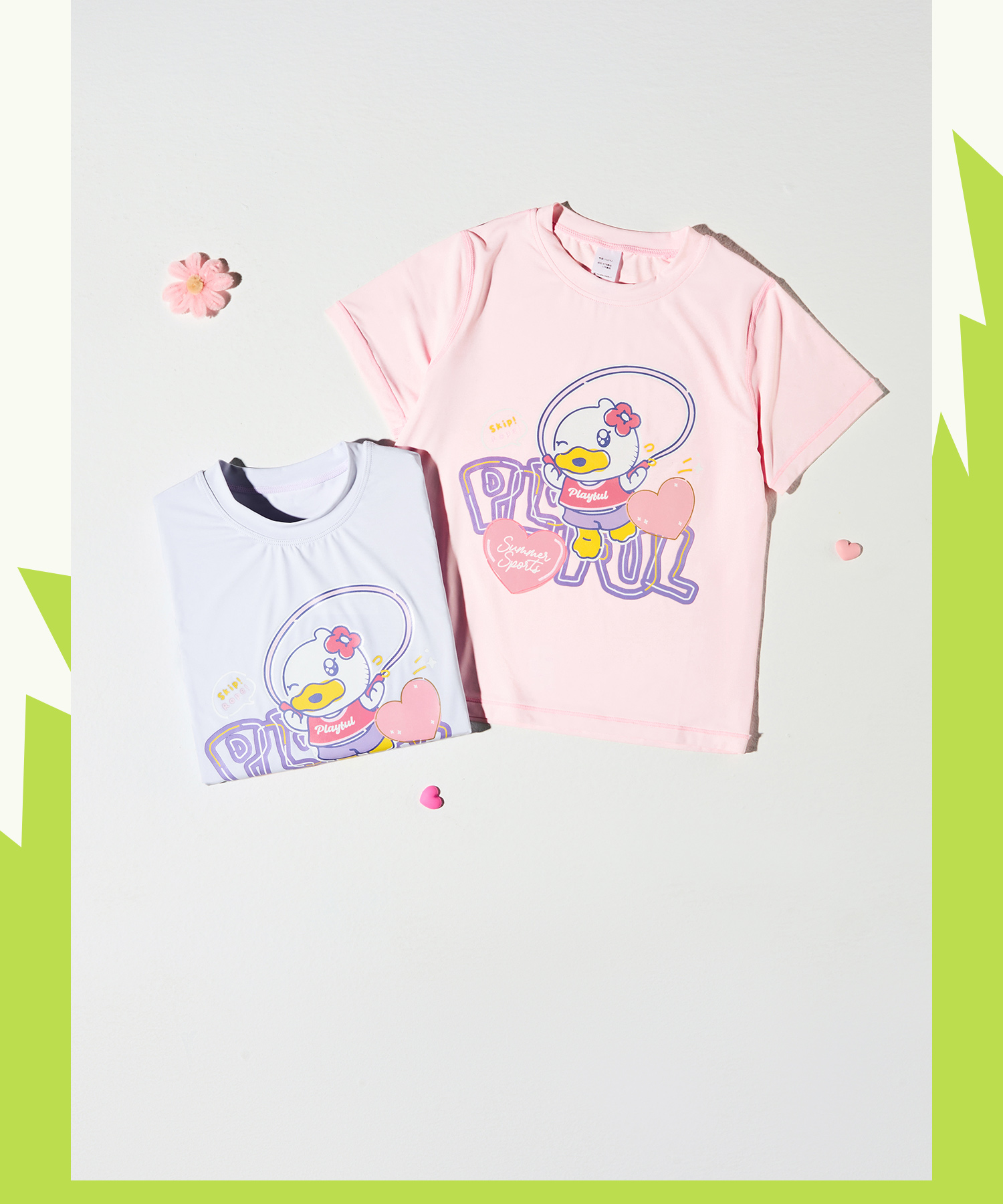 bduck小黄鸭童装夏季女童短袖T恤防晒上衣儿童半袖中小童夏装110-160 FF2601955
