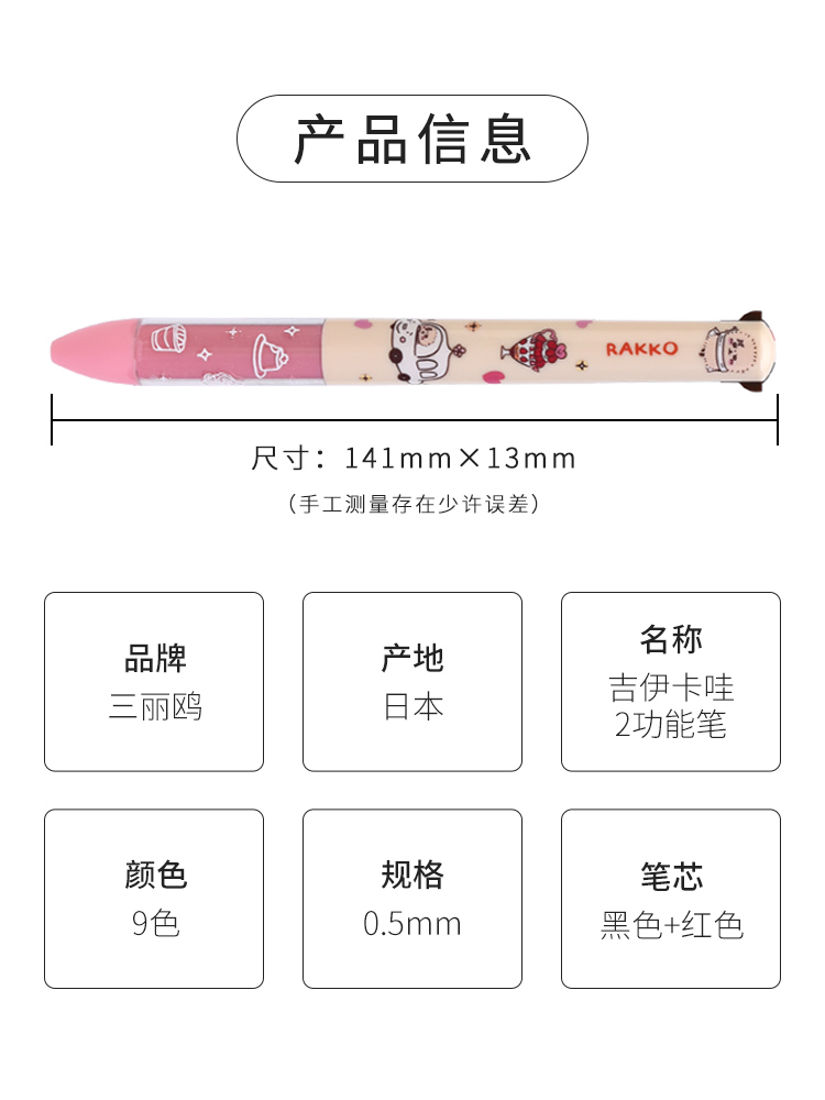 chiikawa吉伊卡哇限定迷你耳朵笔黑红双色圆珠笔