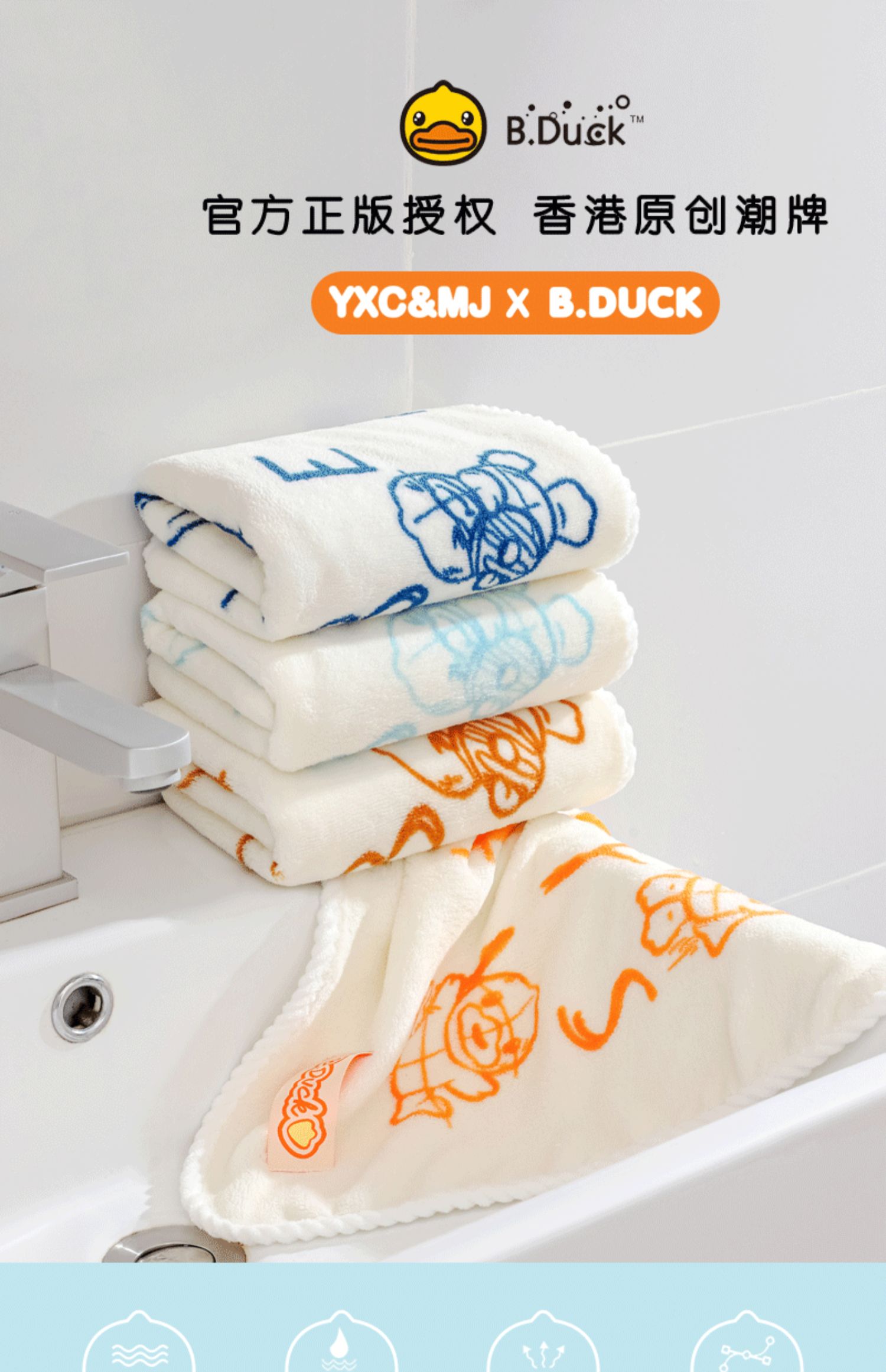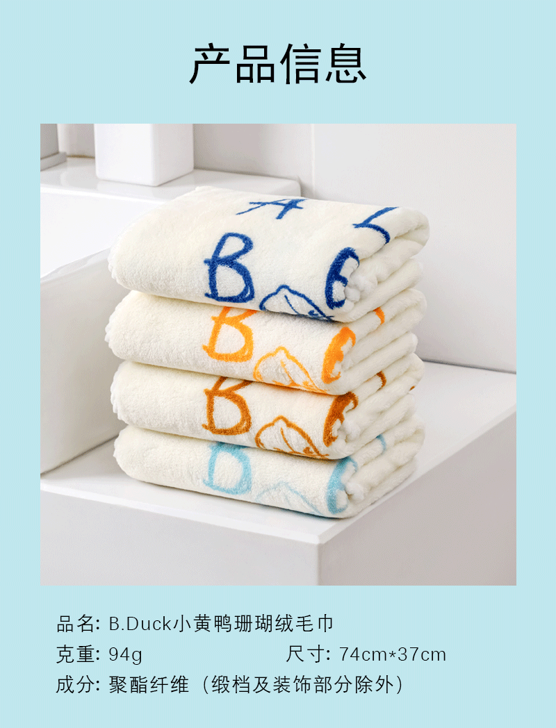 B.Duck小黄鸭珊瑚绒开心鸭毛巾74*37cm 788