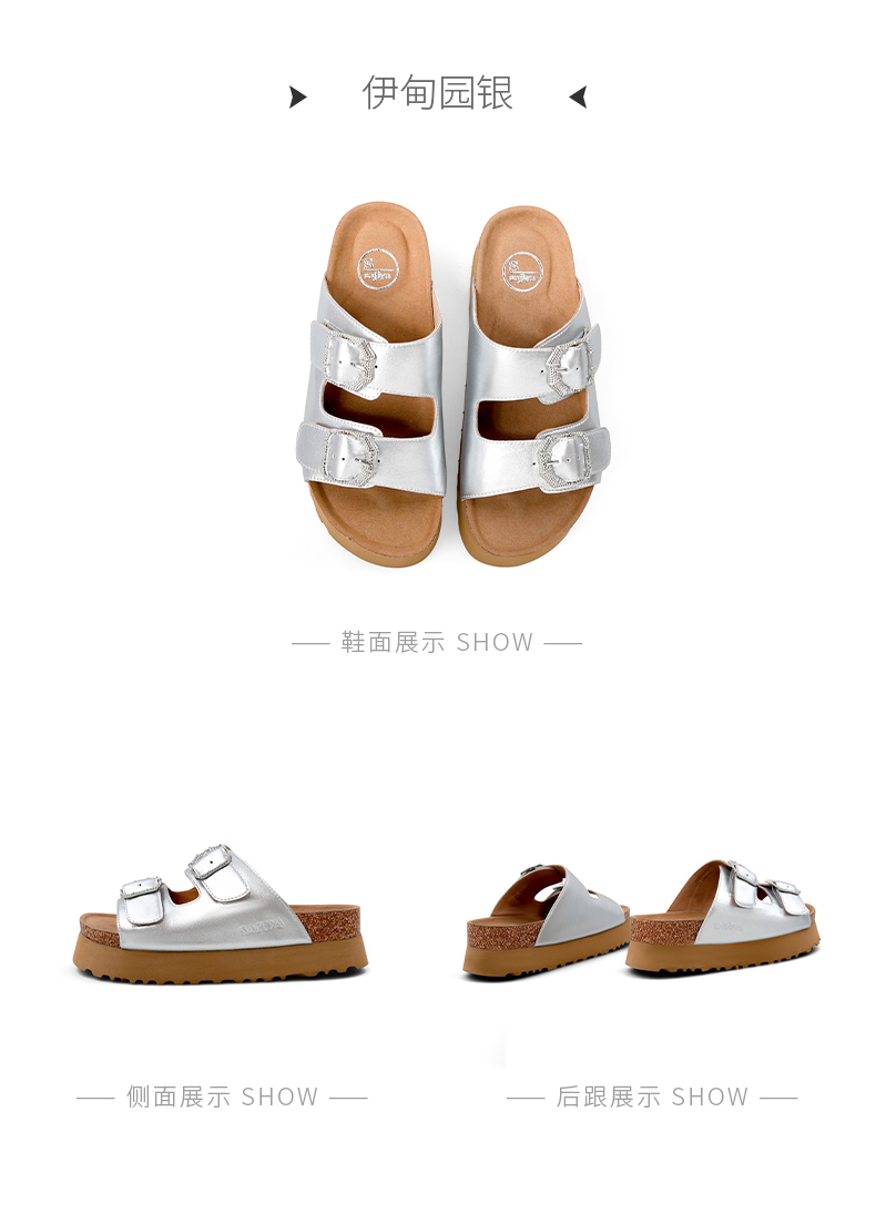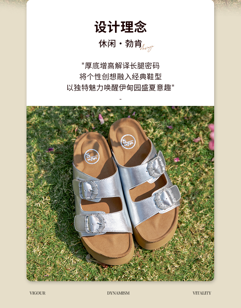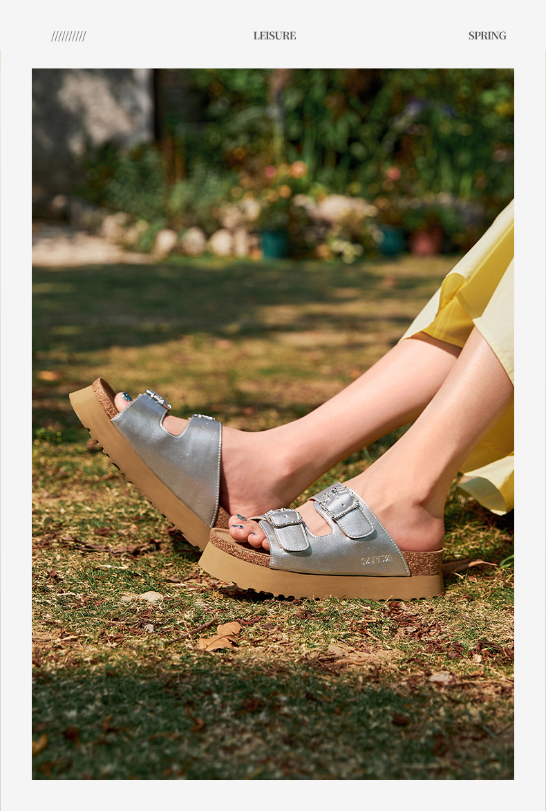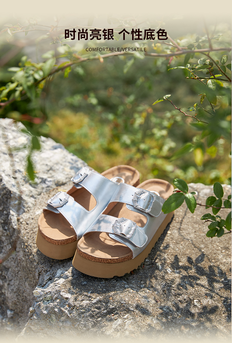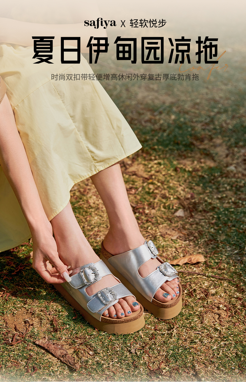 预售7天|Safiya/索菲娅2025时尚双扣带轻便增高休闲外穿复古厚底勃肯拖SFD2110158