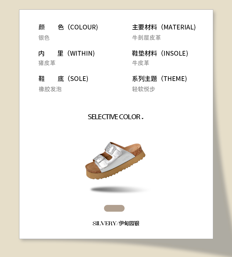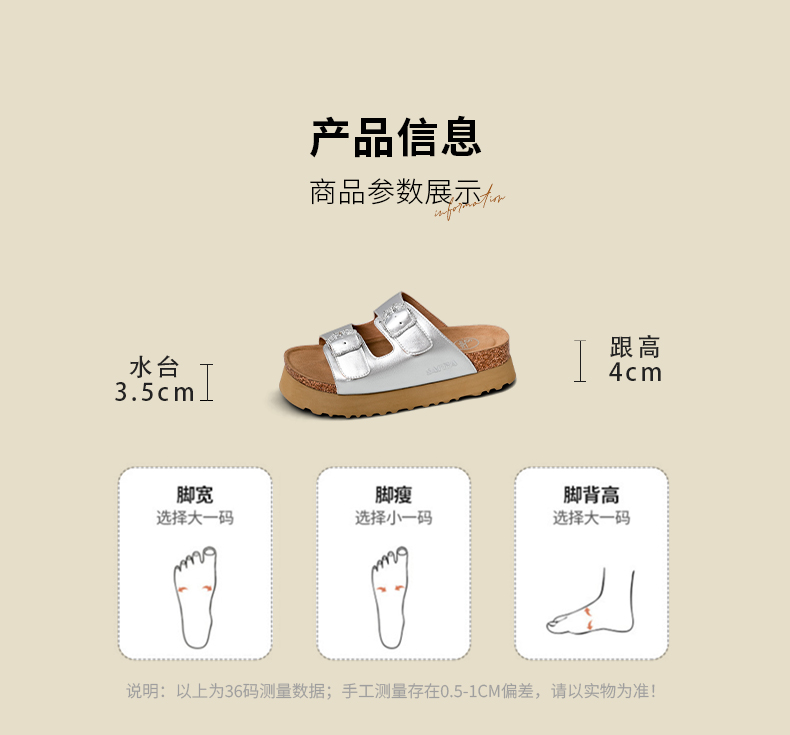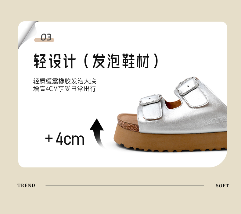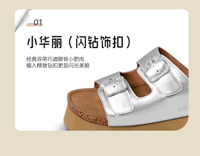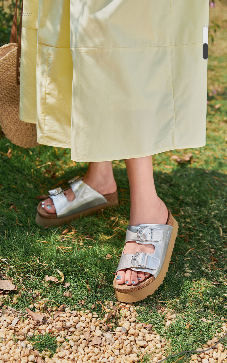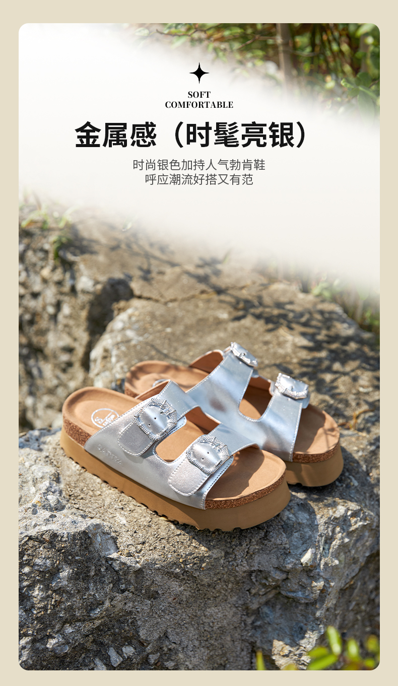 预售7天|Safiya/索菲娅2025时尚双扣带轻便增高休闲外穿复古厚底勃肯拖SFD2110158