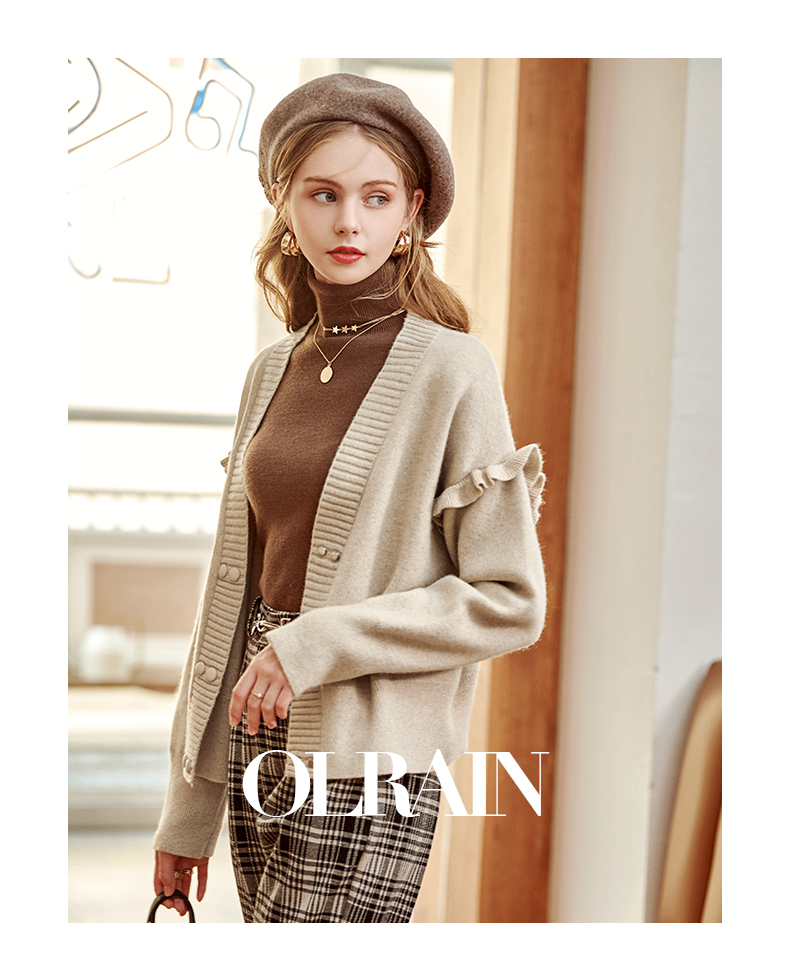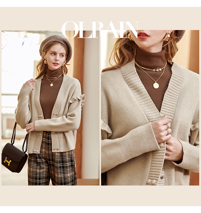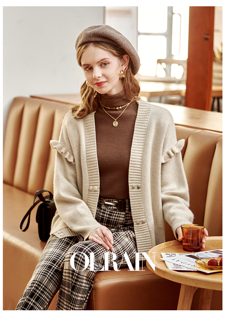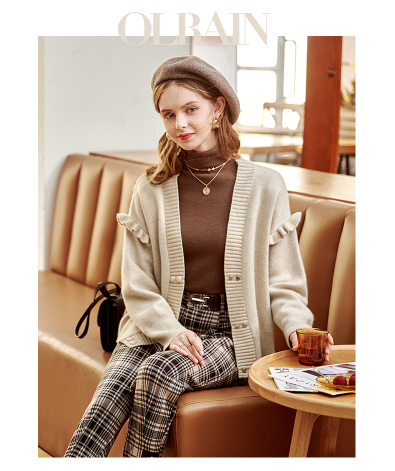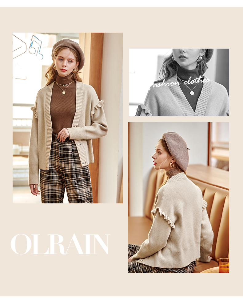 欧芮儿毛衣开衫女外套2021春季新款宽松慵懒风双排扣时尚气质ing