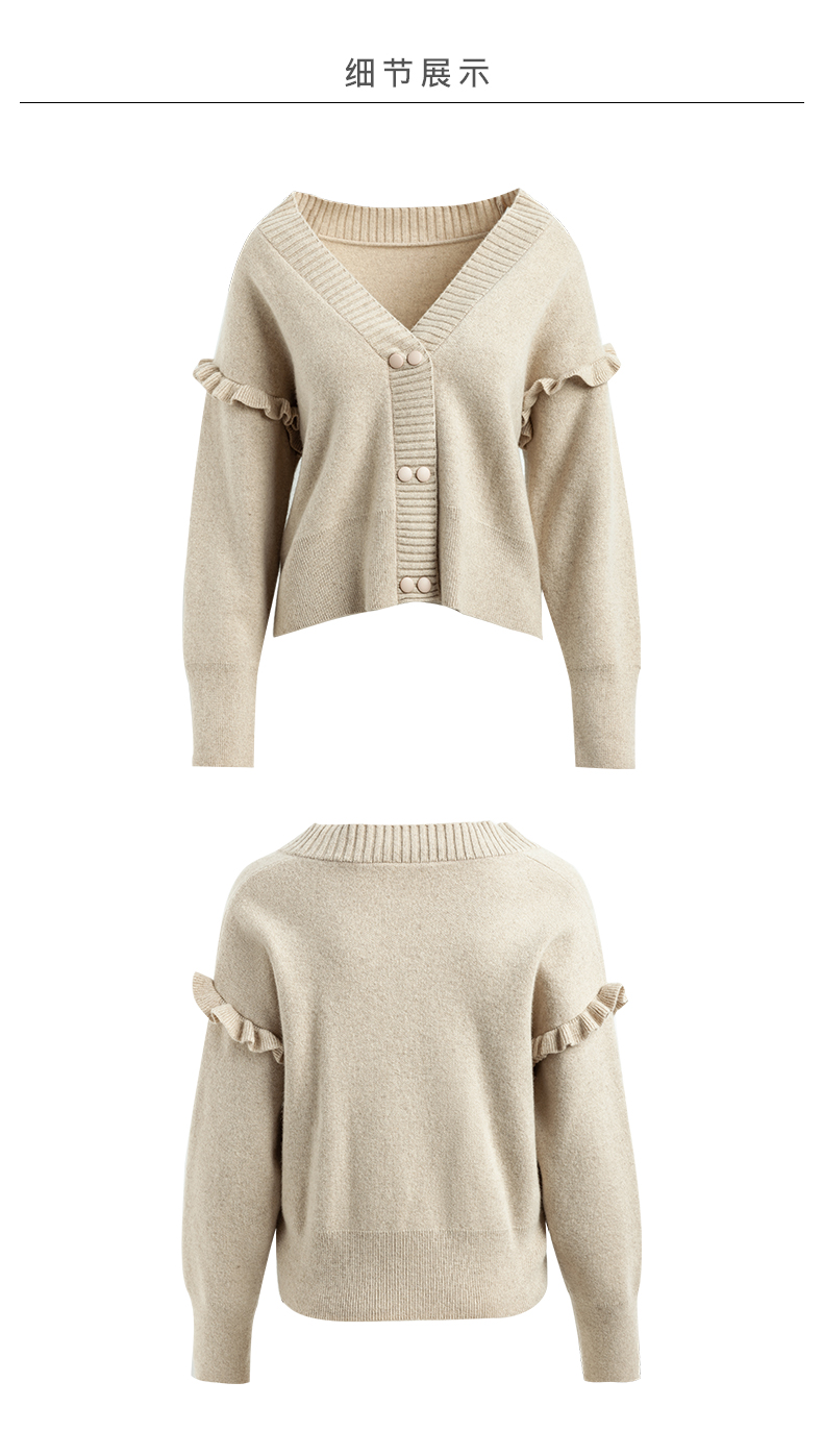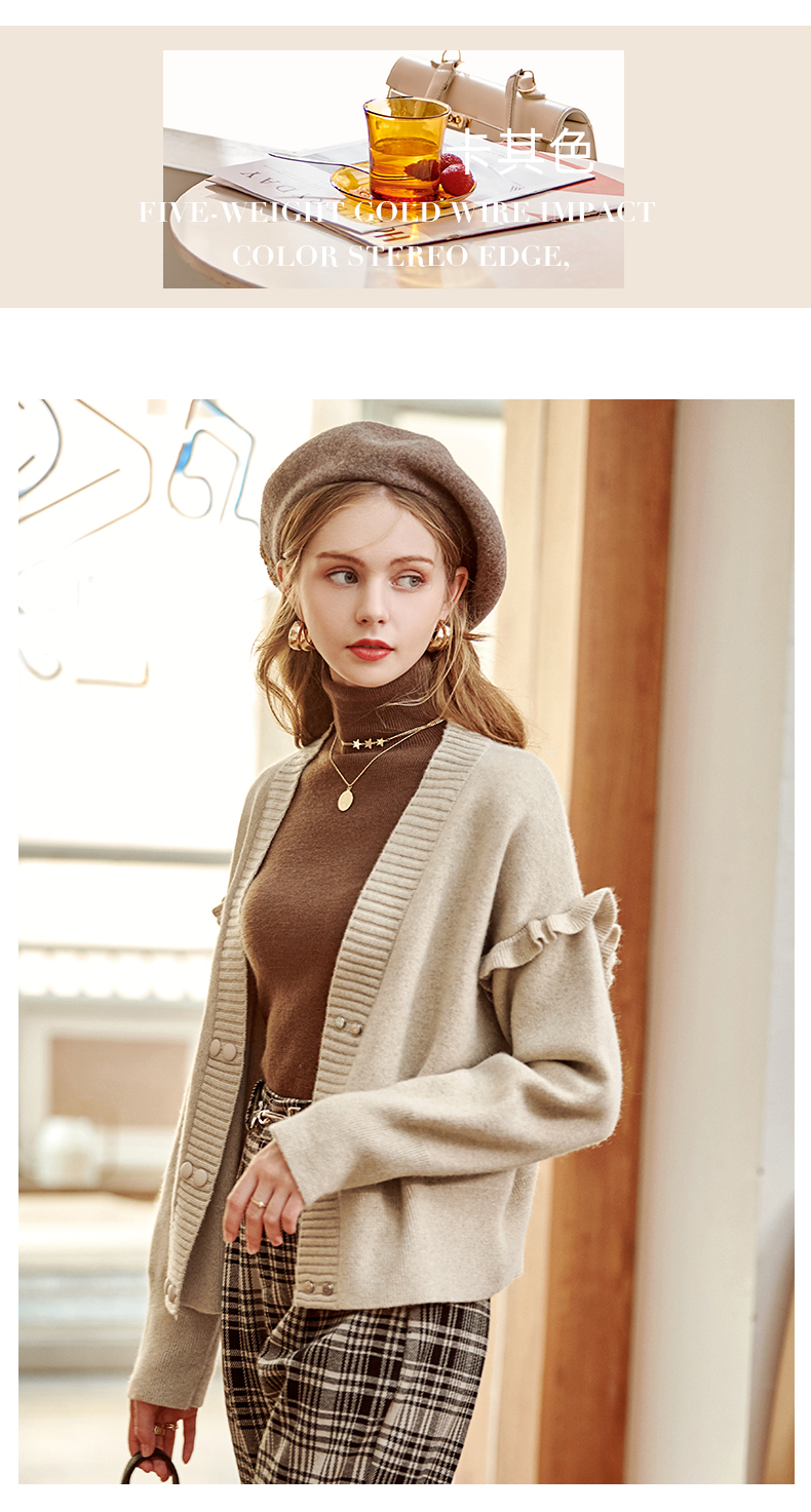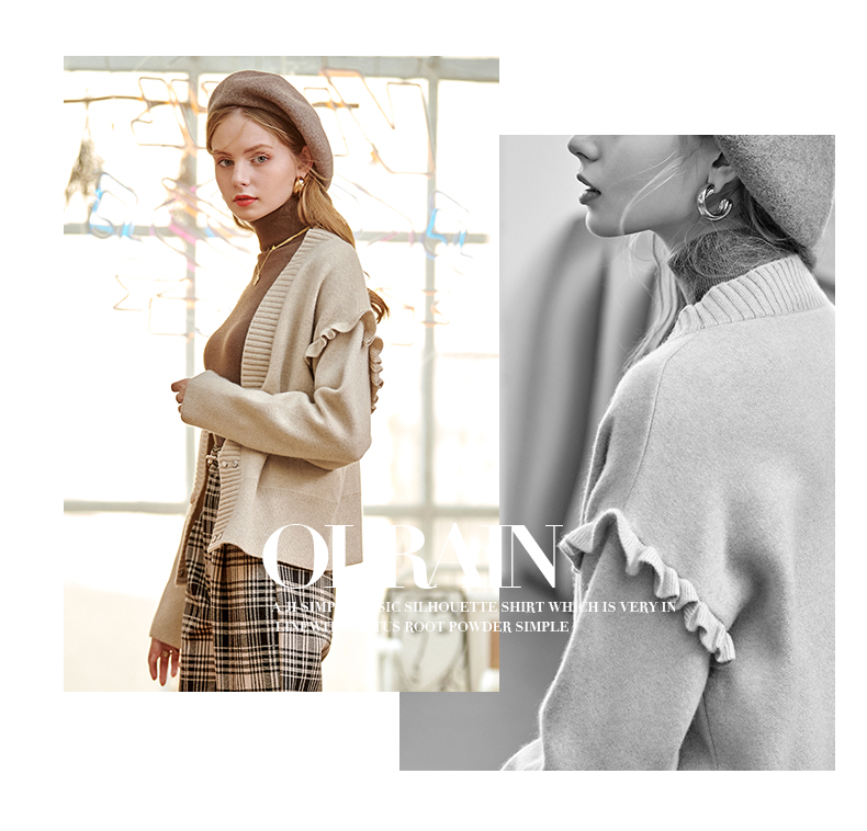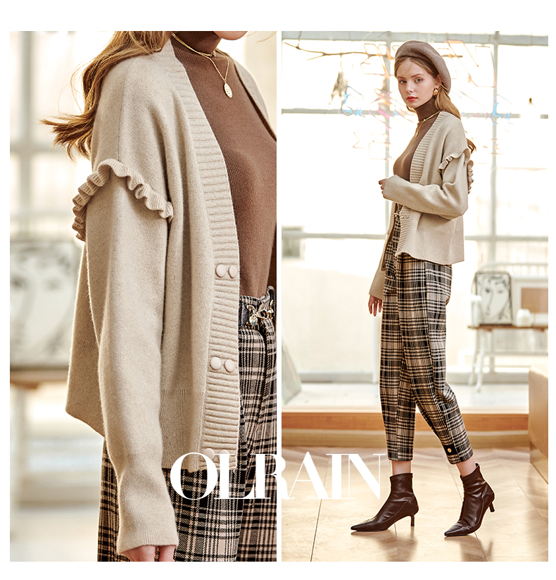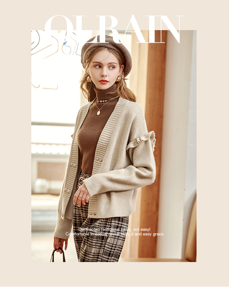 欧芮儿毛衣开衫女外套2021春季新款宽松慵懒风双排扣时尚气质ing