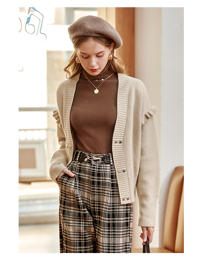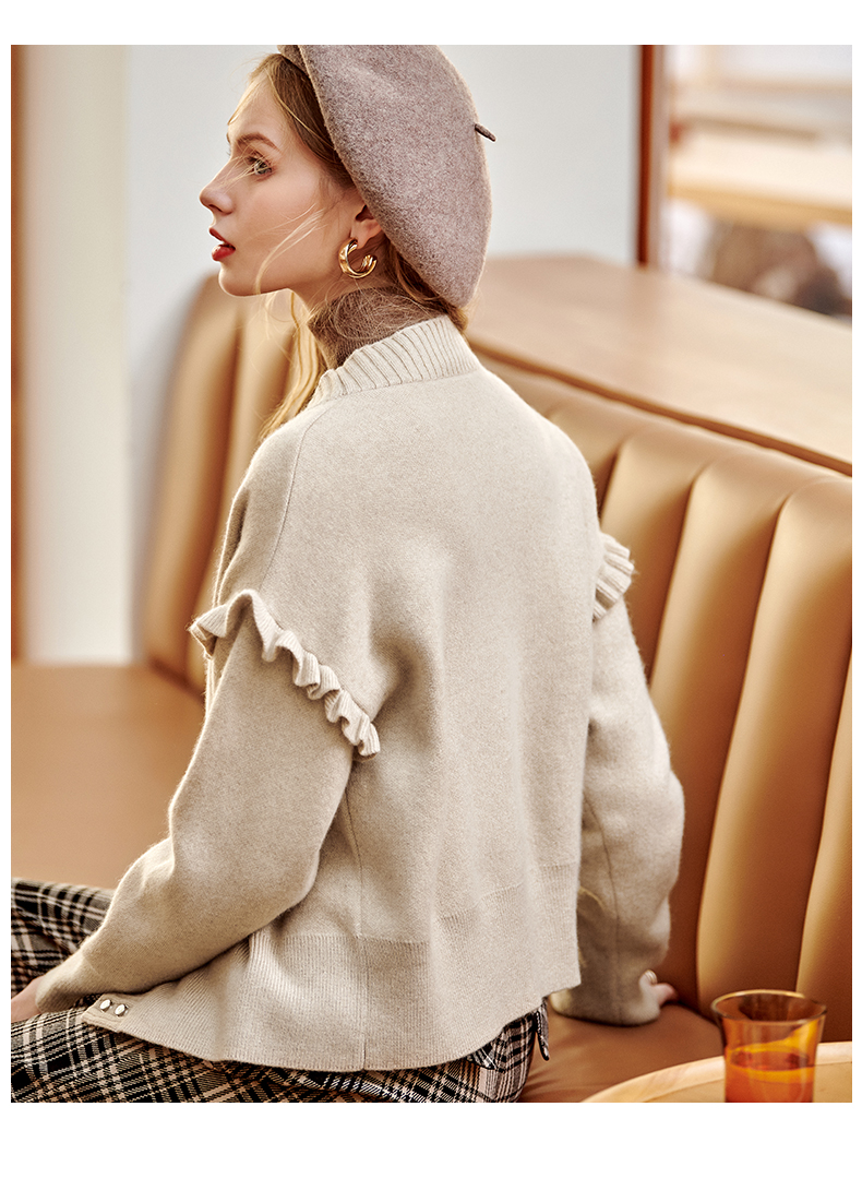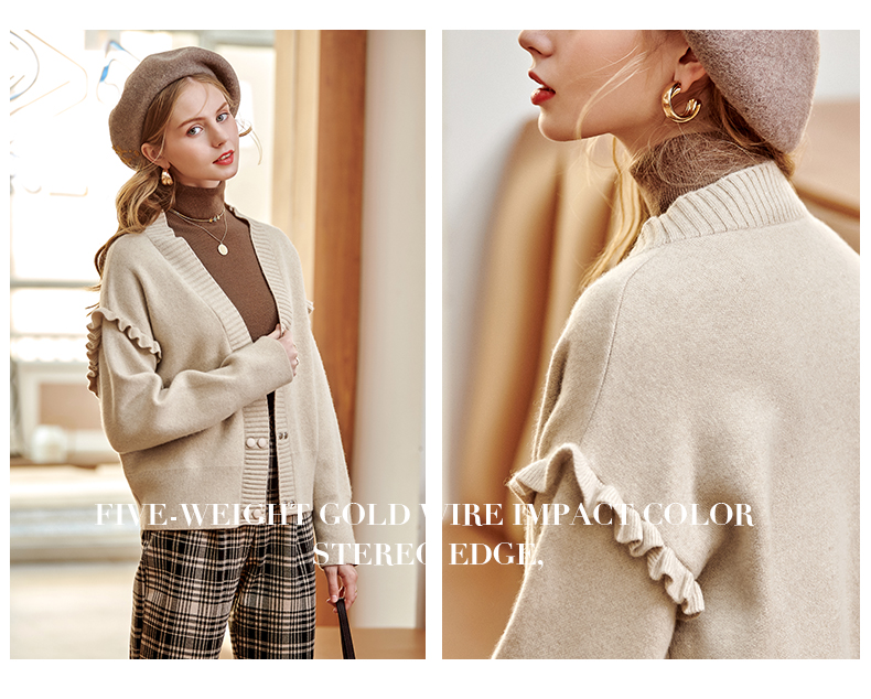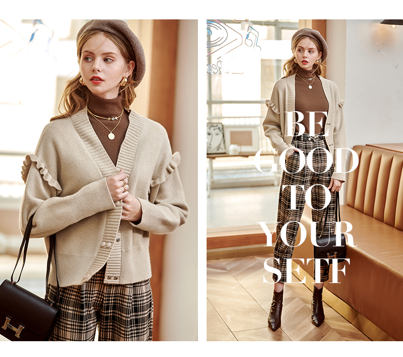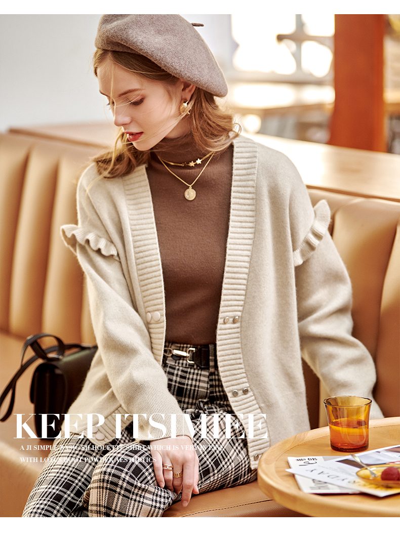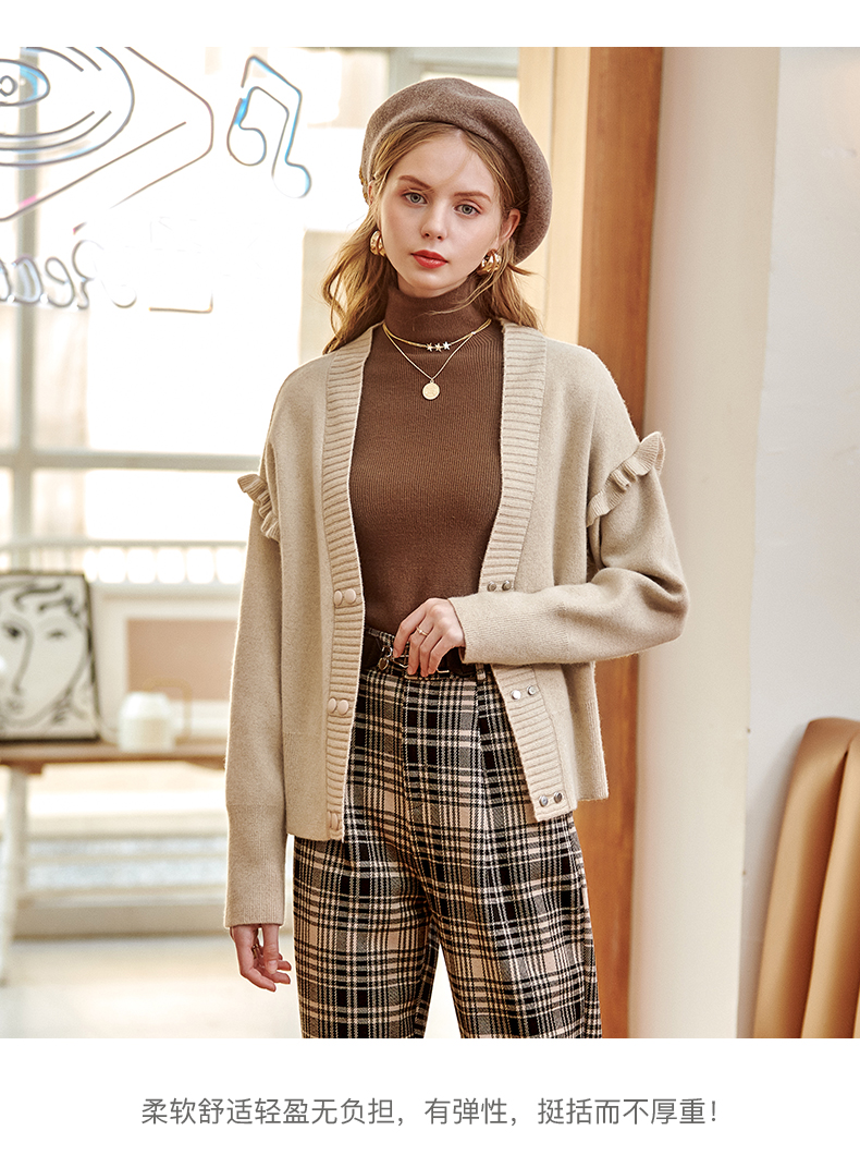 欧芮儿毛衣开衫女外套2021春季新款宽松慵懒风双排扣时尚气质ing