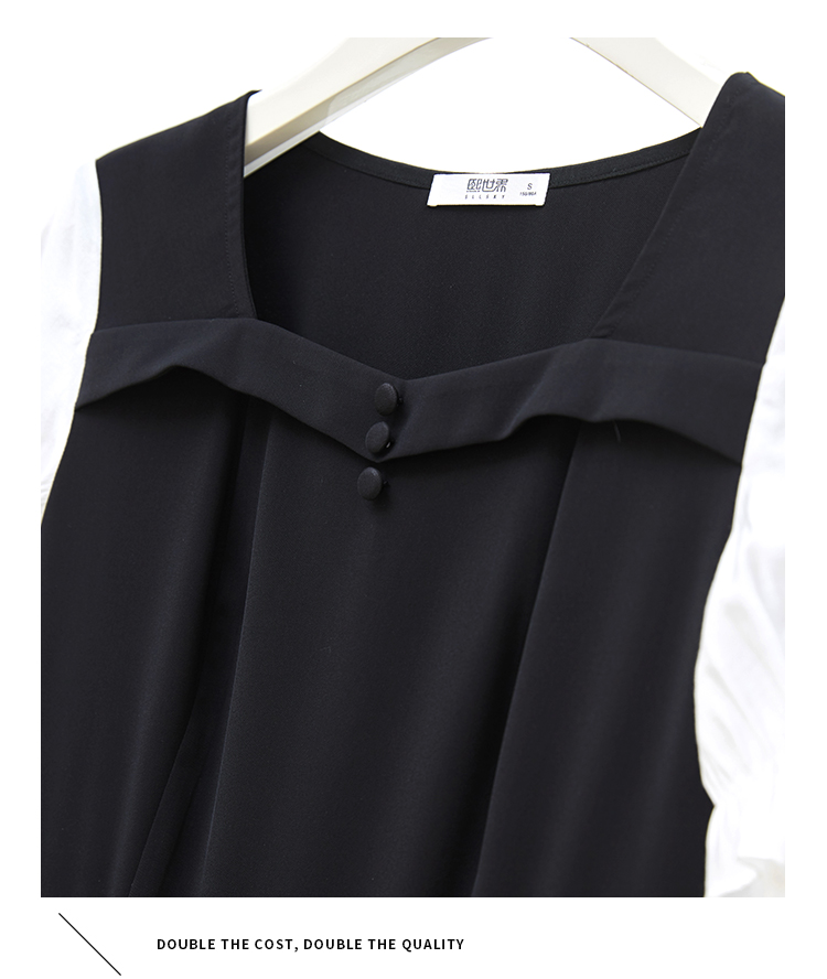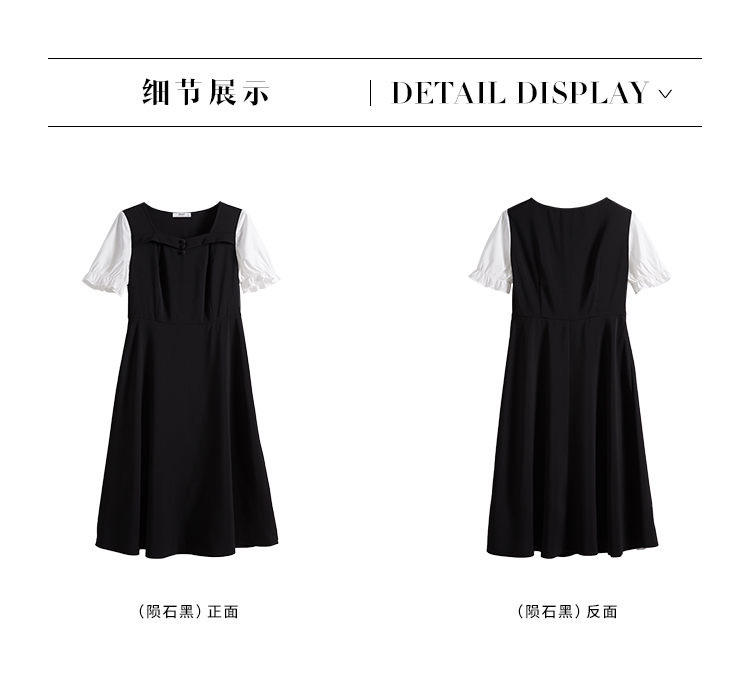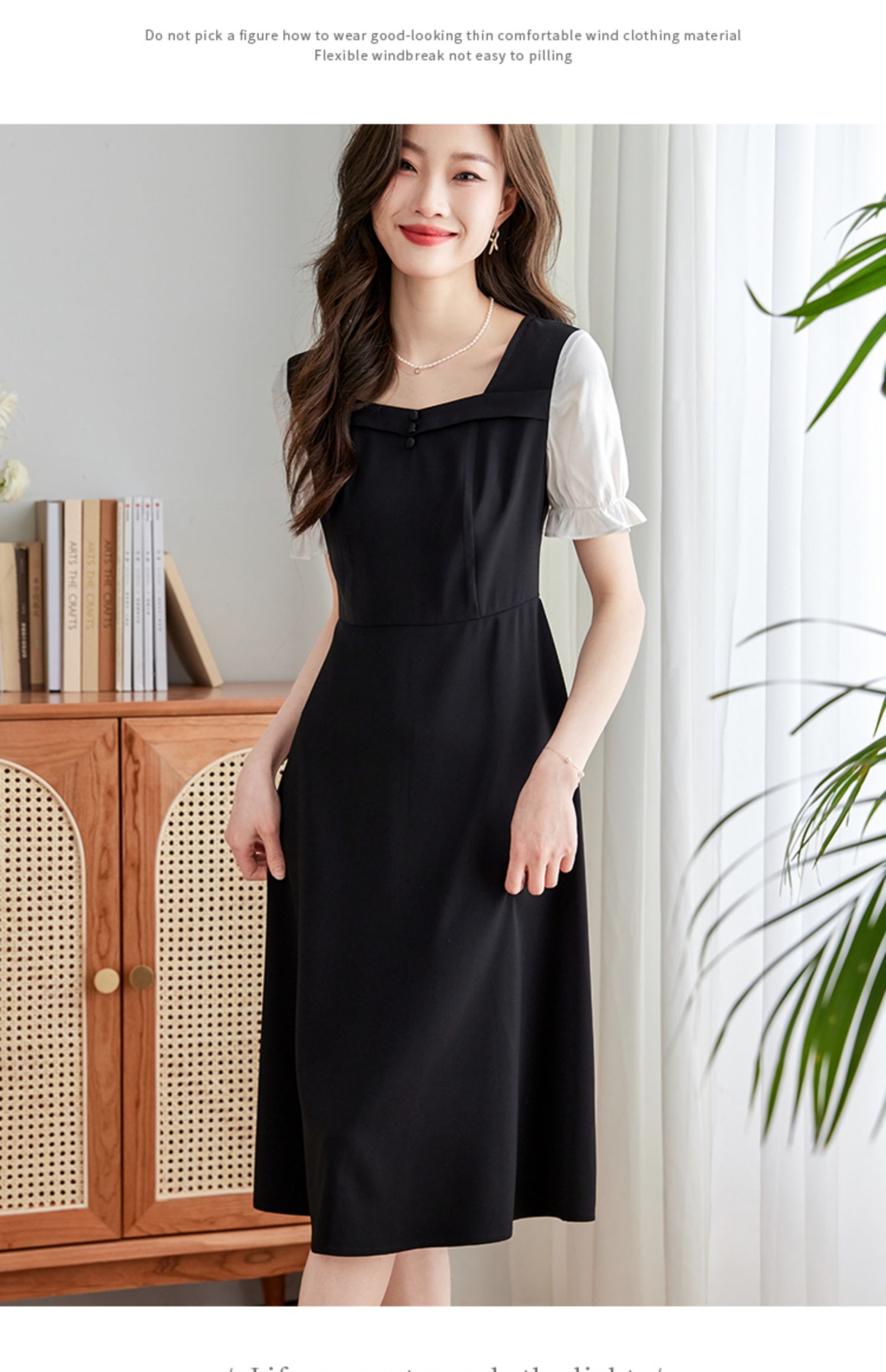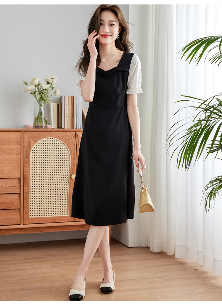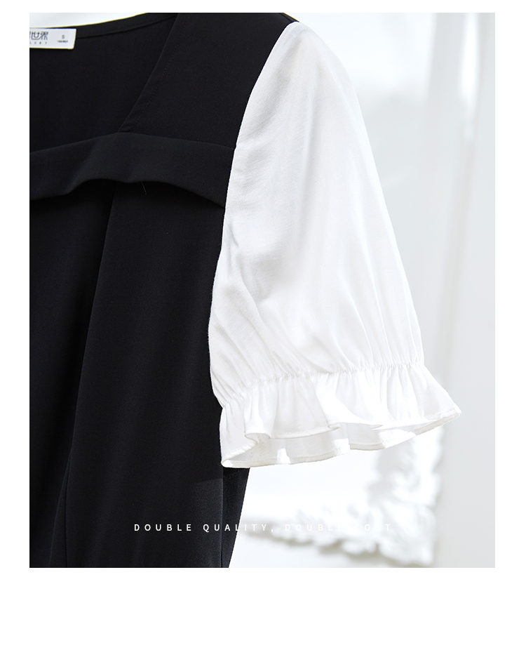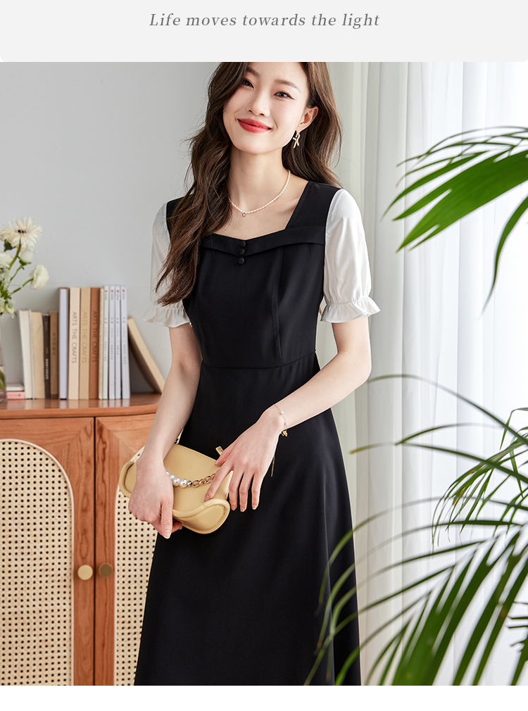【专属特价】熙世界气质赫本风连衣裙女2025夏季新款撞色泡泡袖拼接方领小黑裙