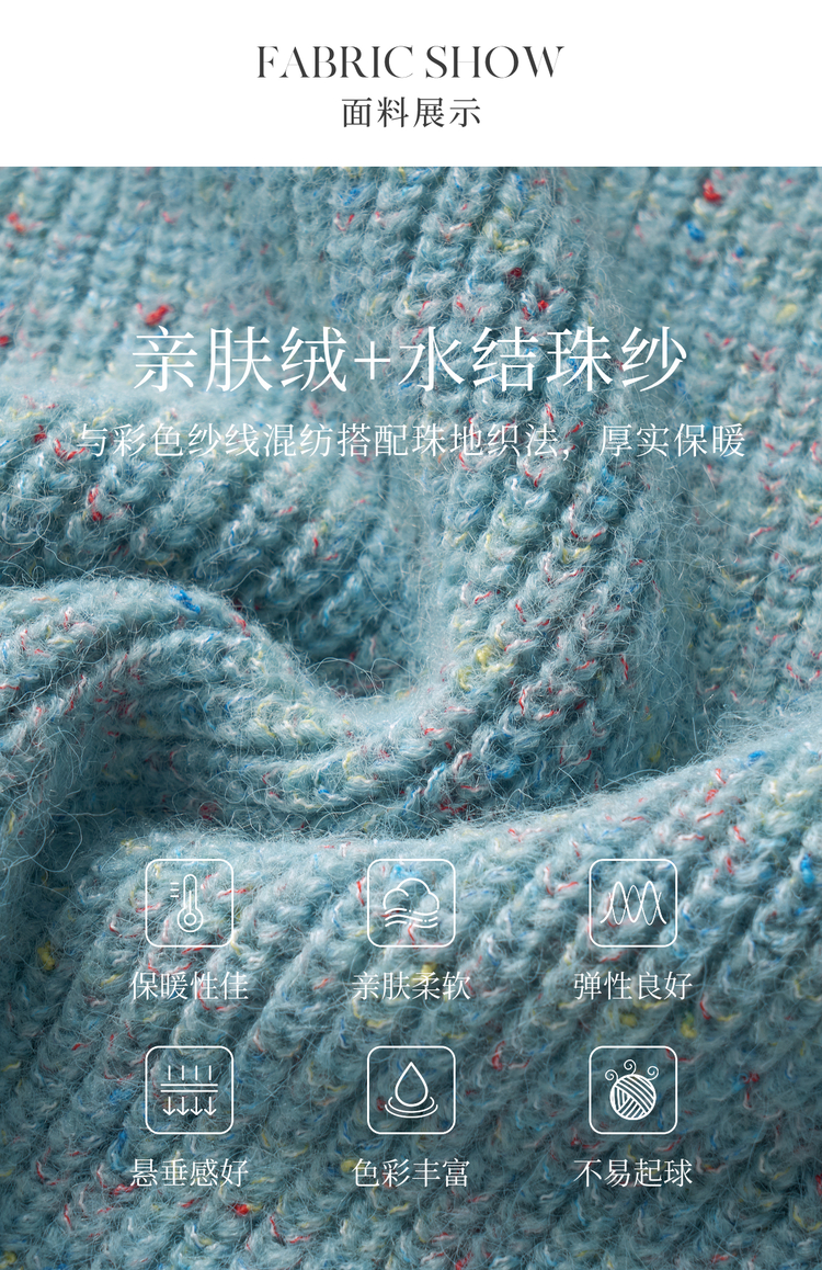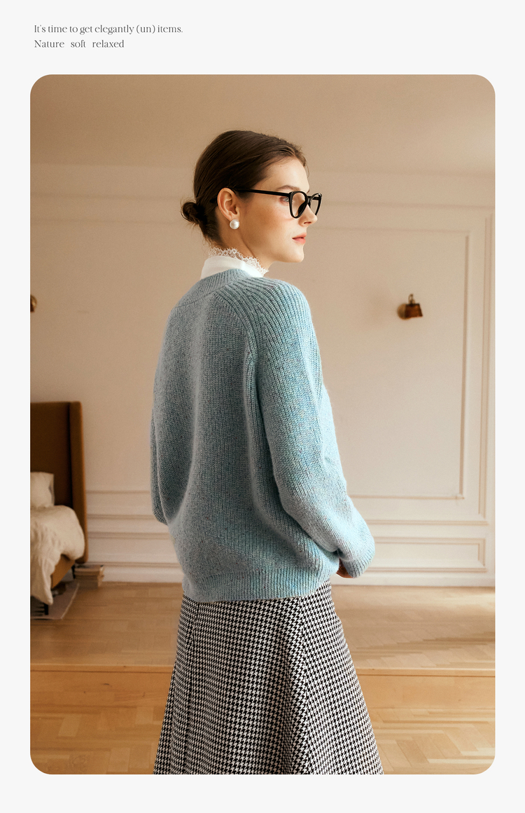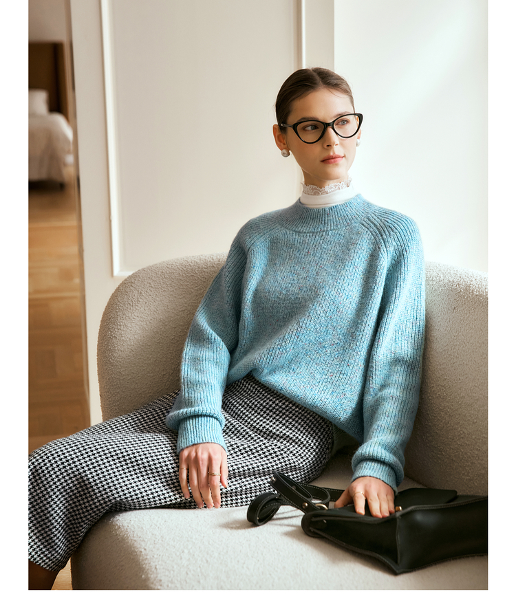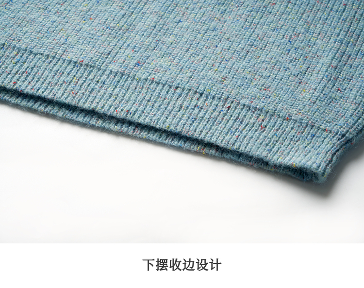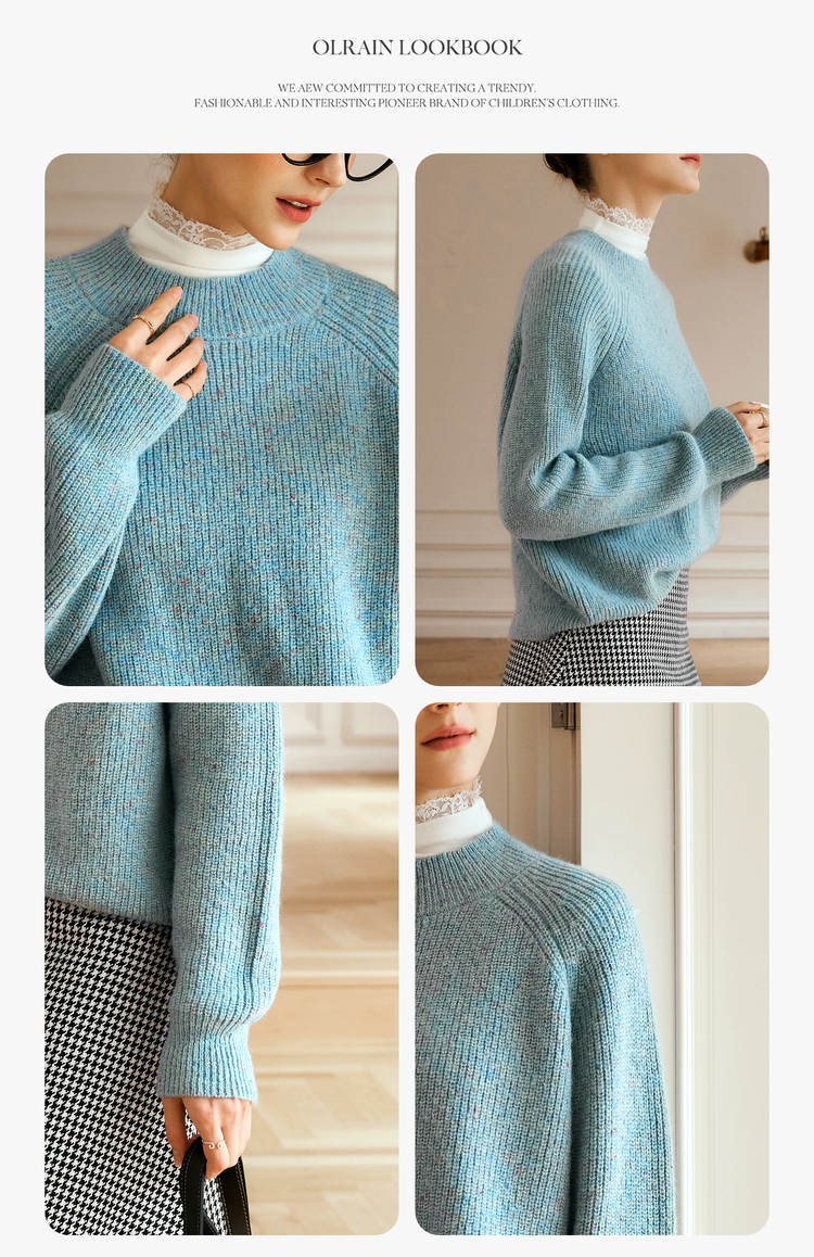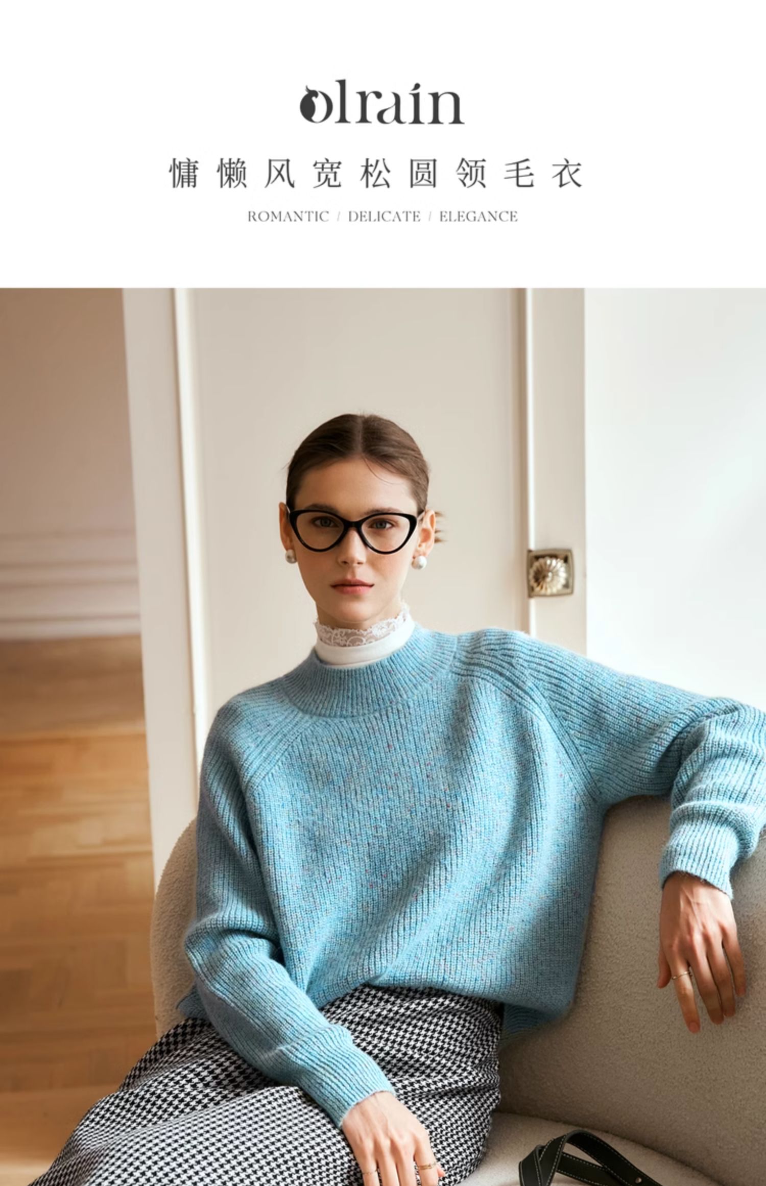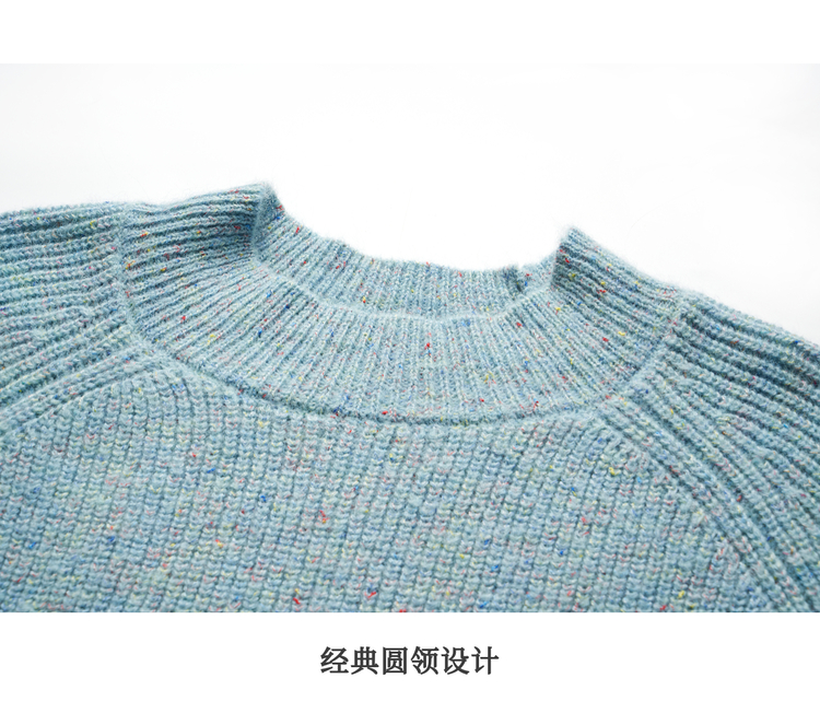 OLrain欧芮儿法式蓝色毛衣女冬季2024新款慵懒风别致圆领毛针织衫