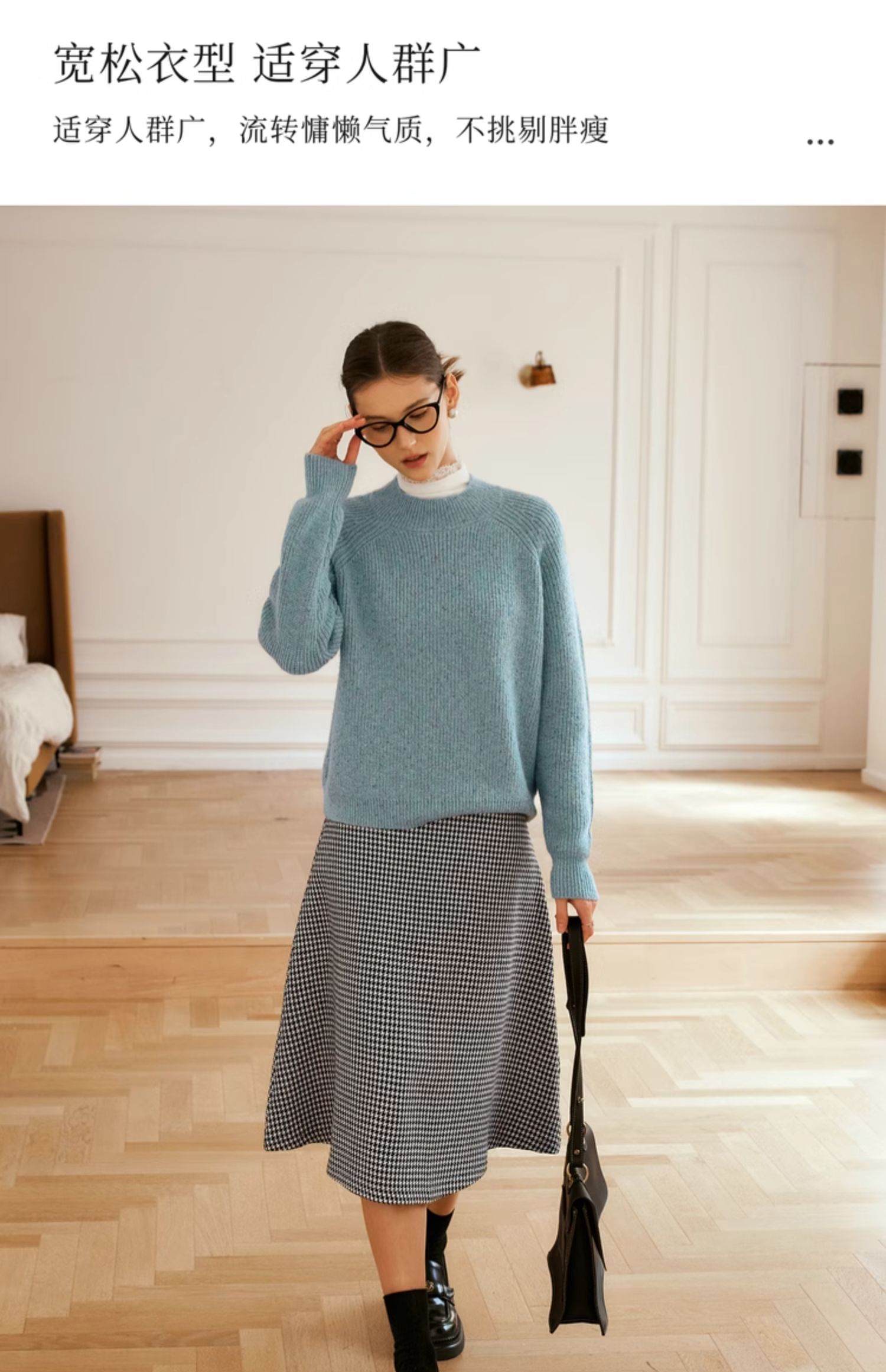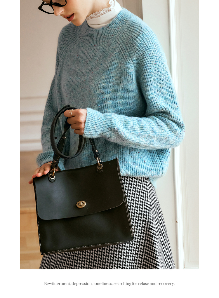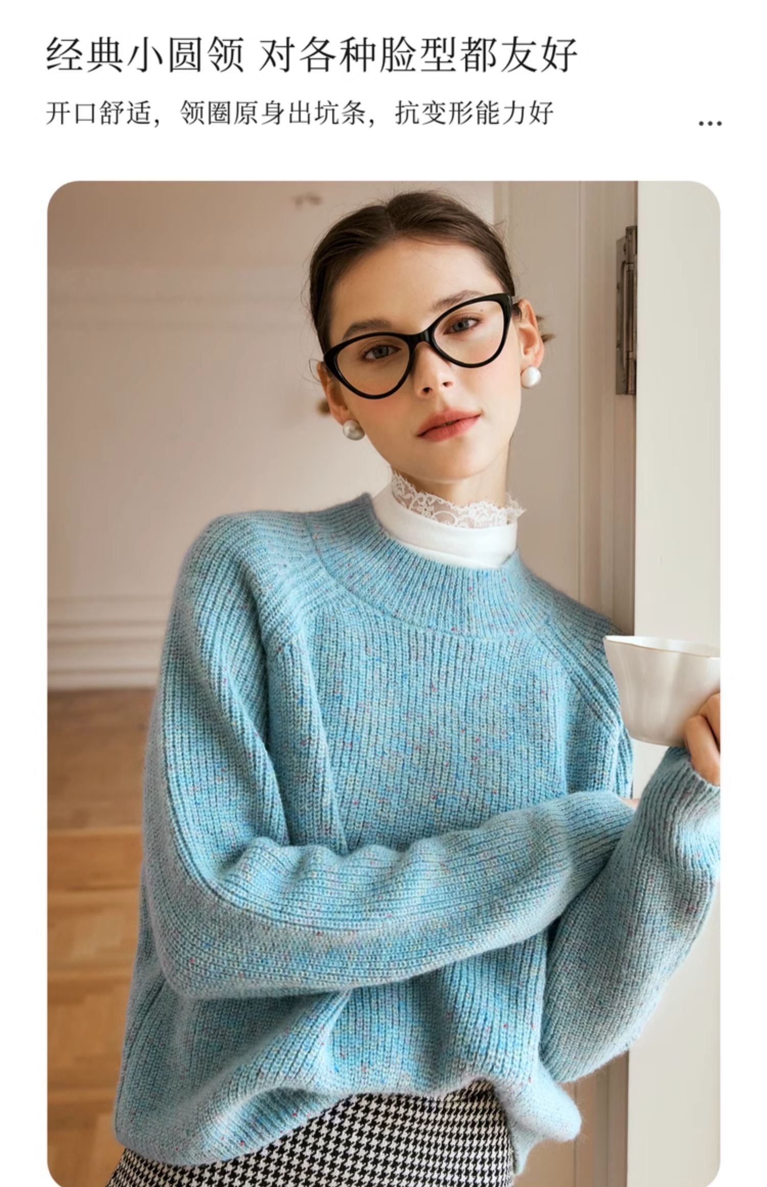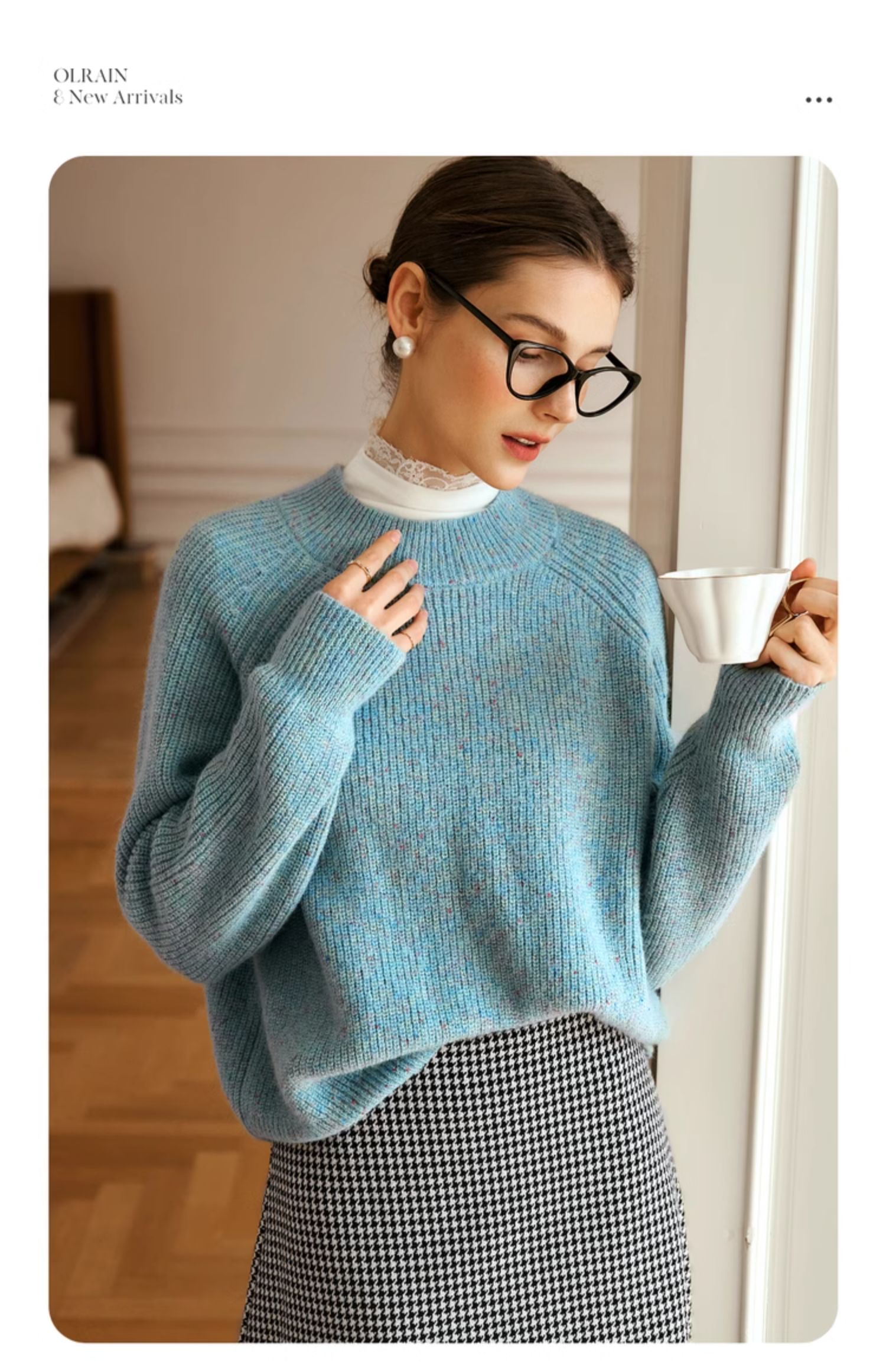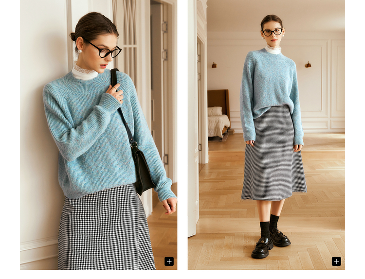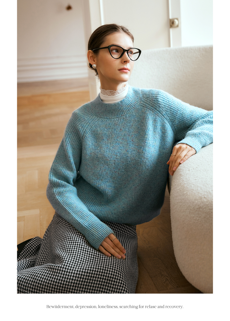 OLrain欧芮儿法式蓝色毛衣女冬季2024新款慵懒风别致圆领毛针织衫