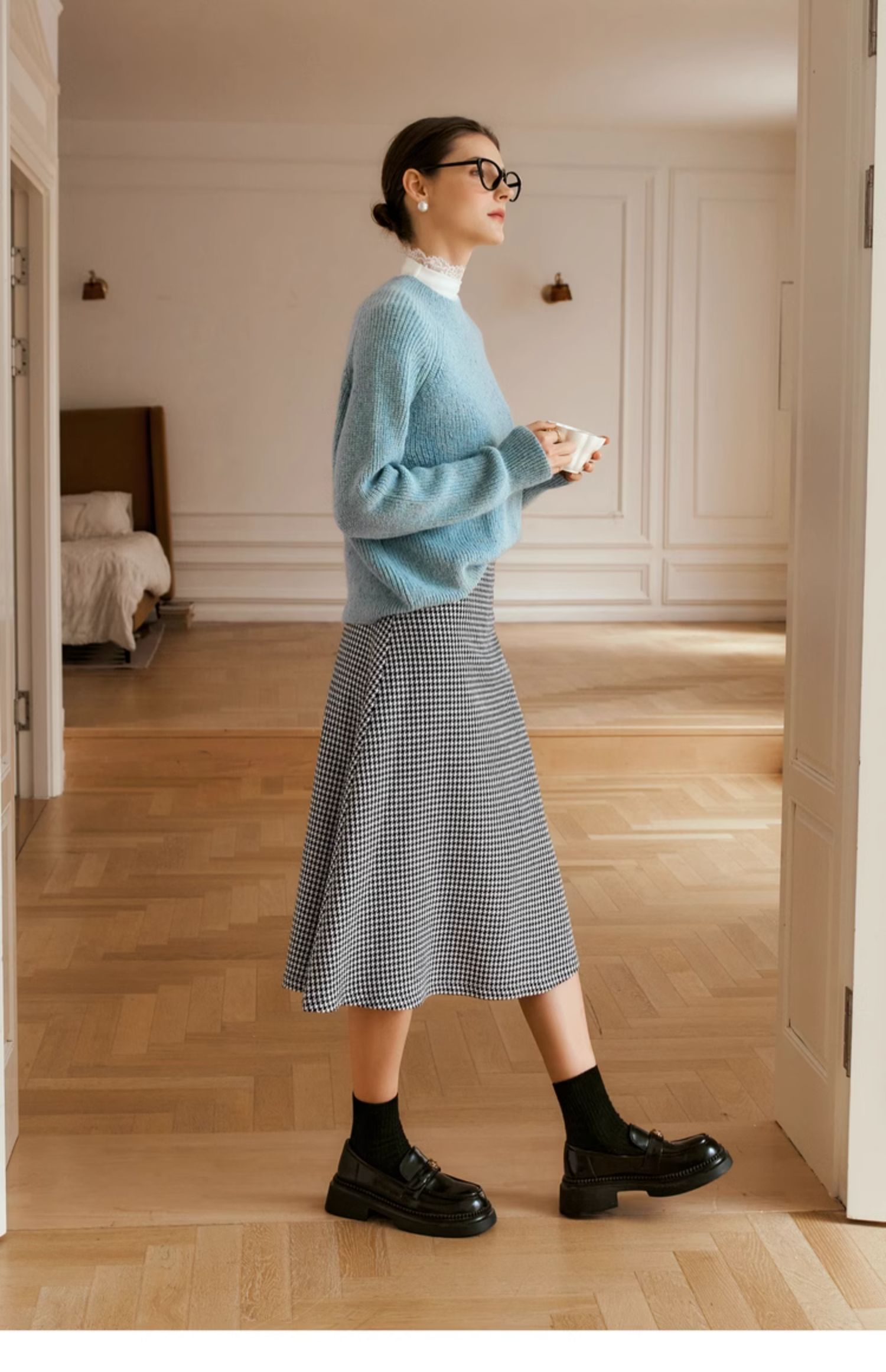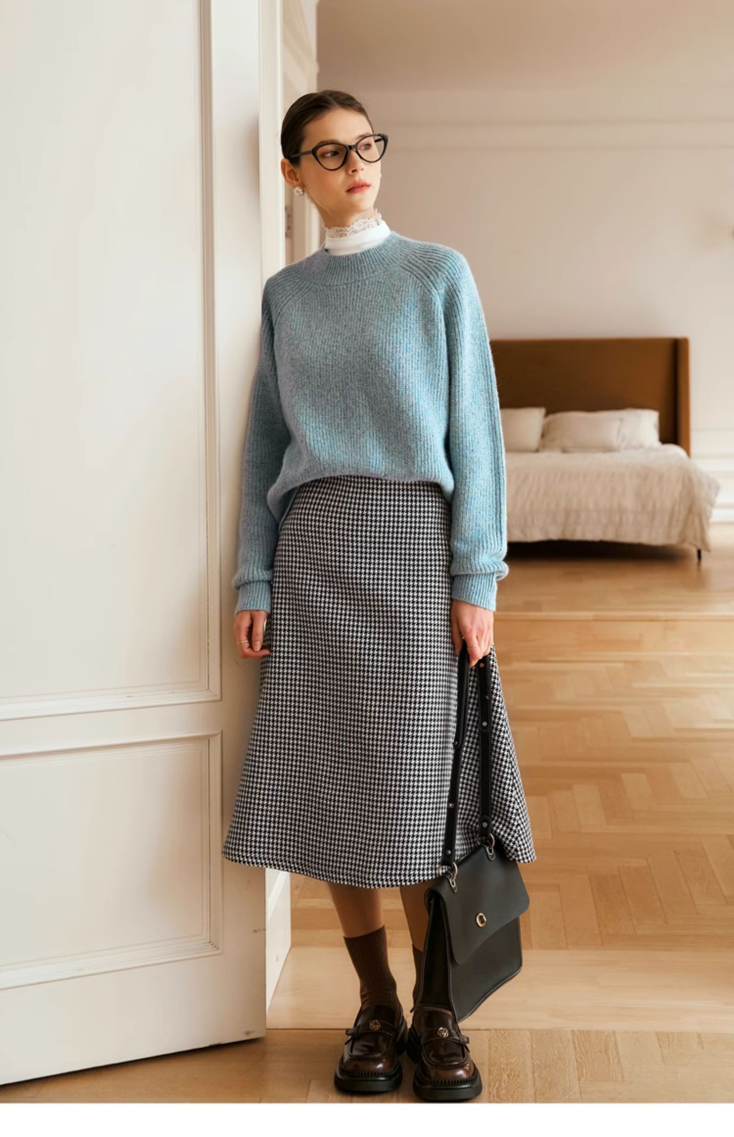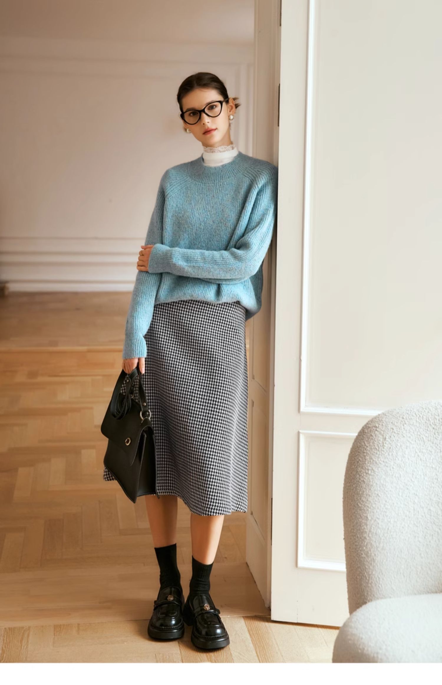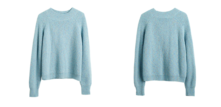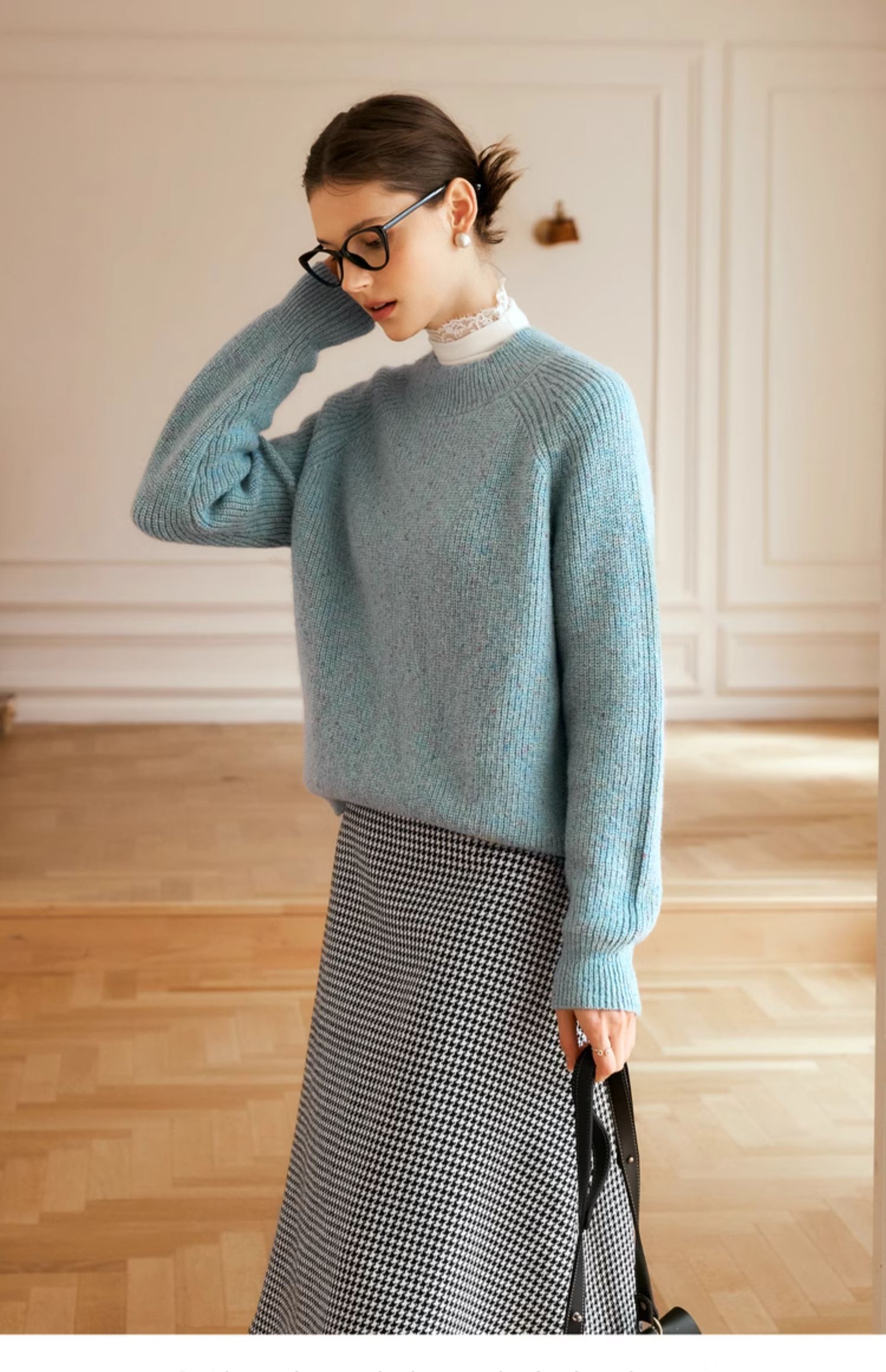 OLrain欧芮儿法式蓝色毛衣女冬季2024新款慵懒风别致圆领毛针织衫