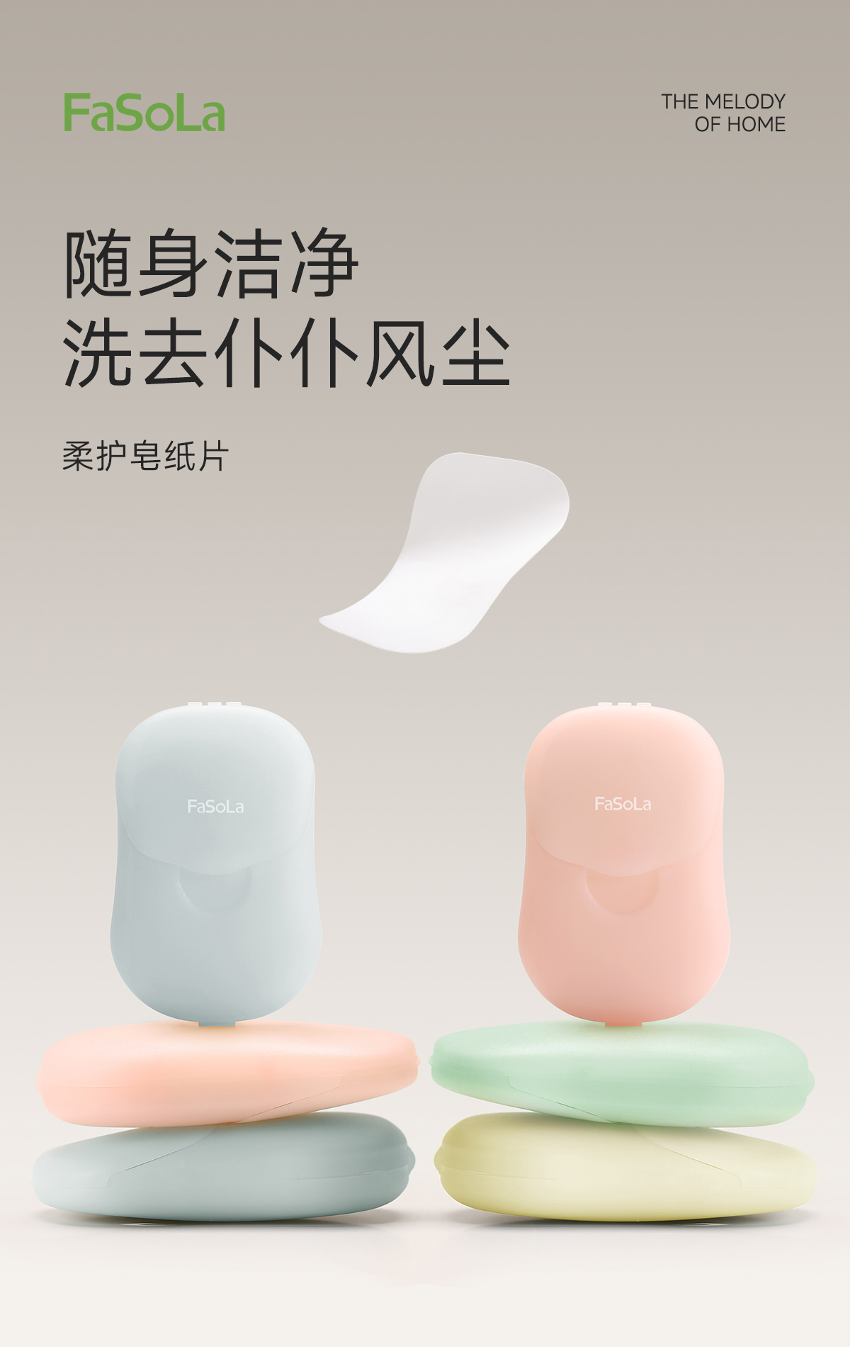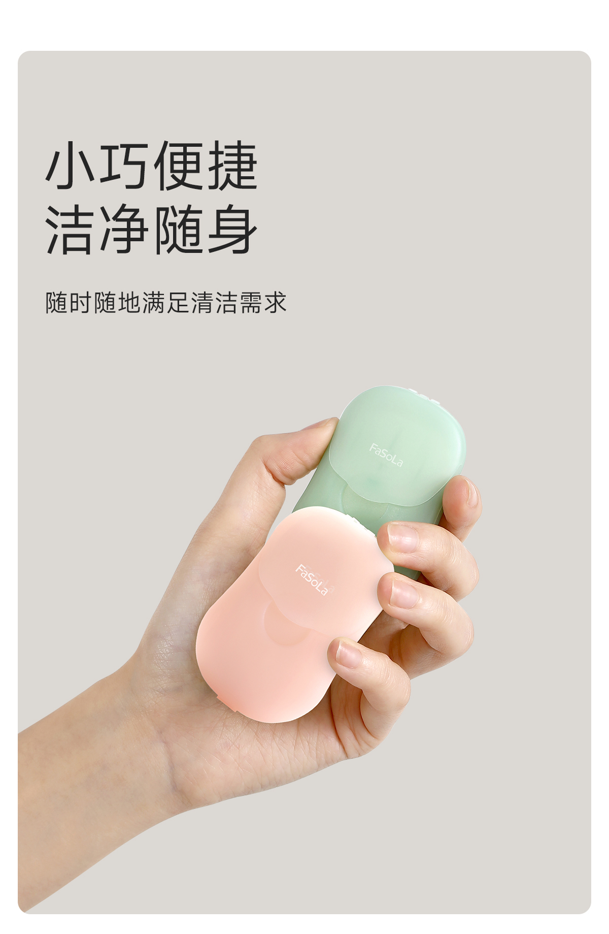 FaSoLa一次性迷你除菌便携香皂片户外旅行学生儿童消毒洗手肥皂纸