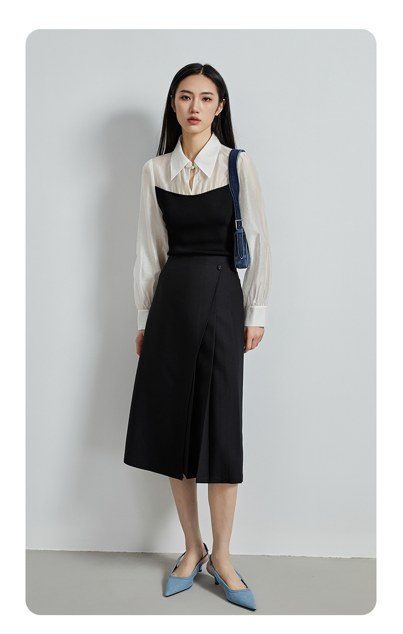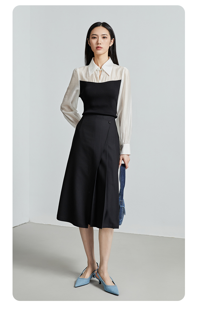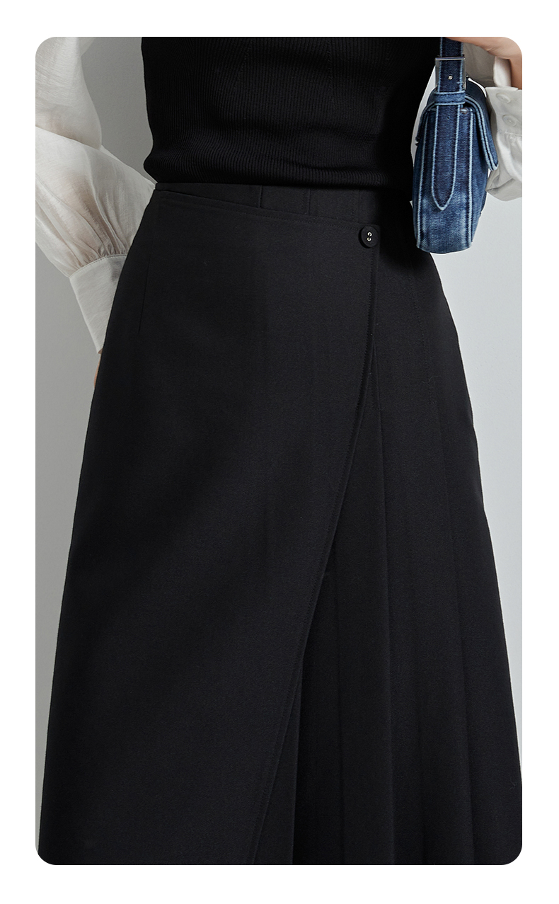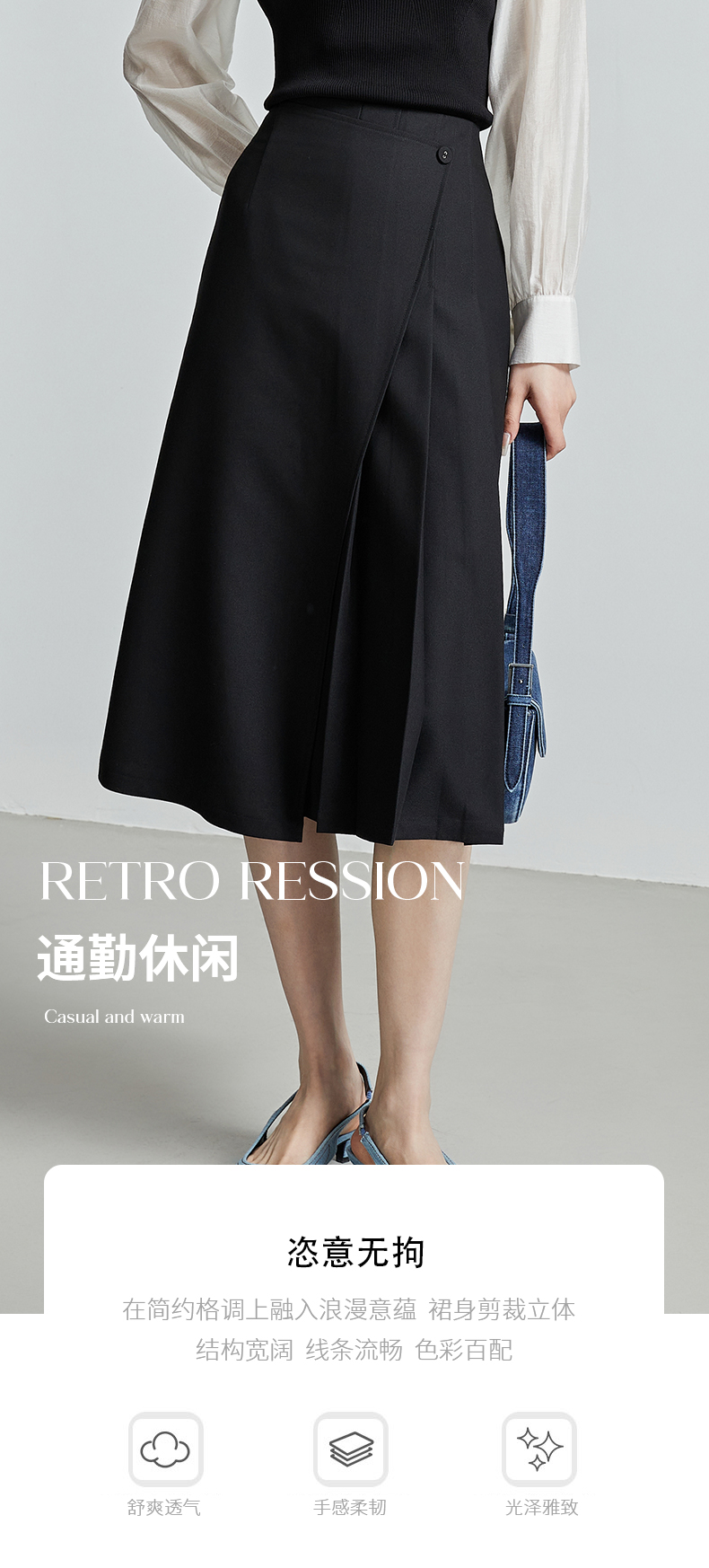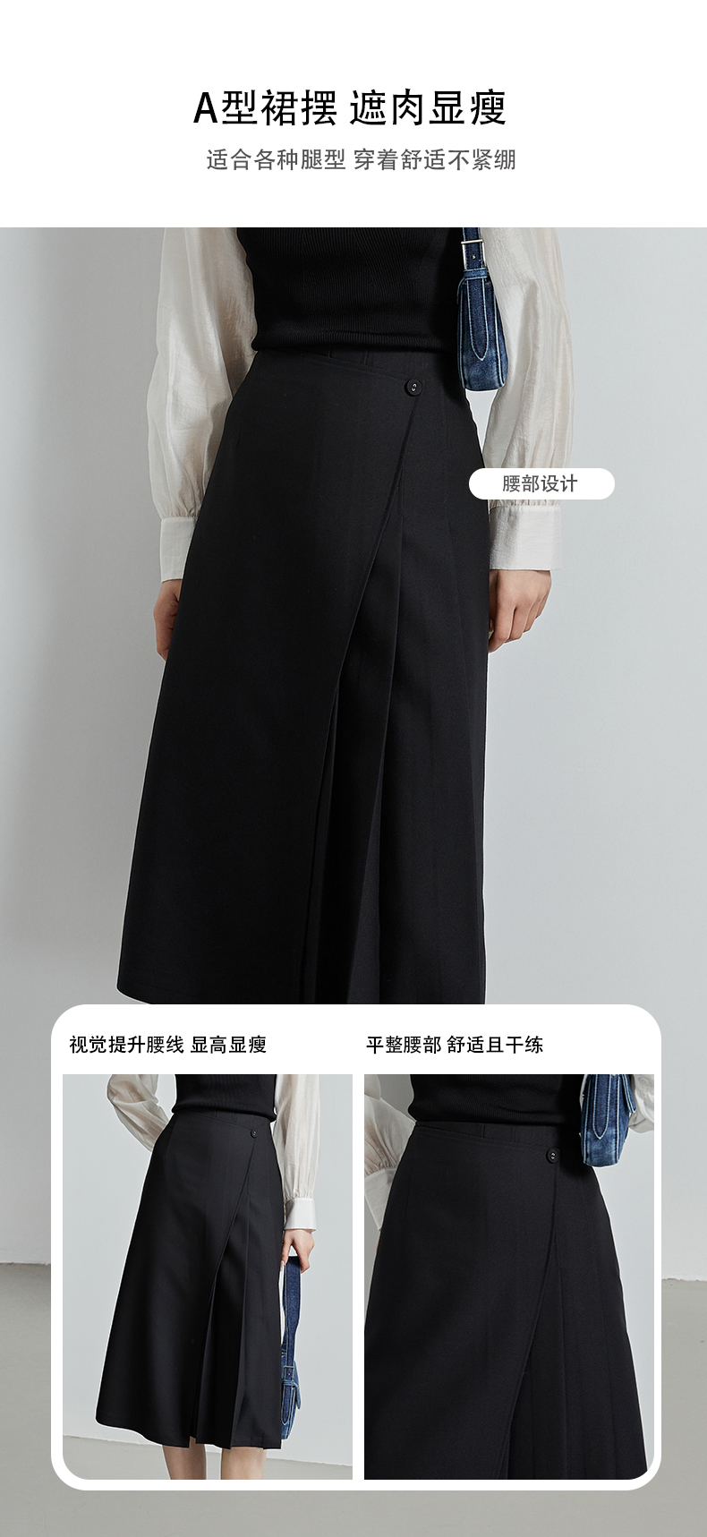 oldcolour春秋季新款时尚A字半身裙不规则设计感中长裙女P330601A1