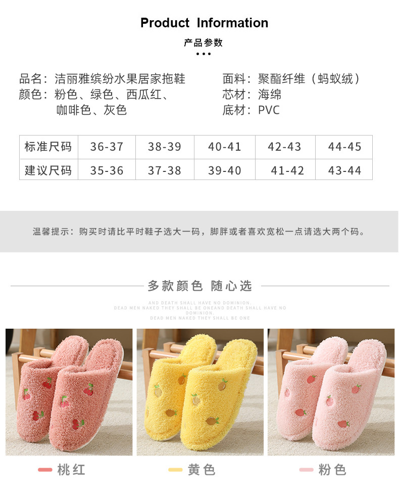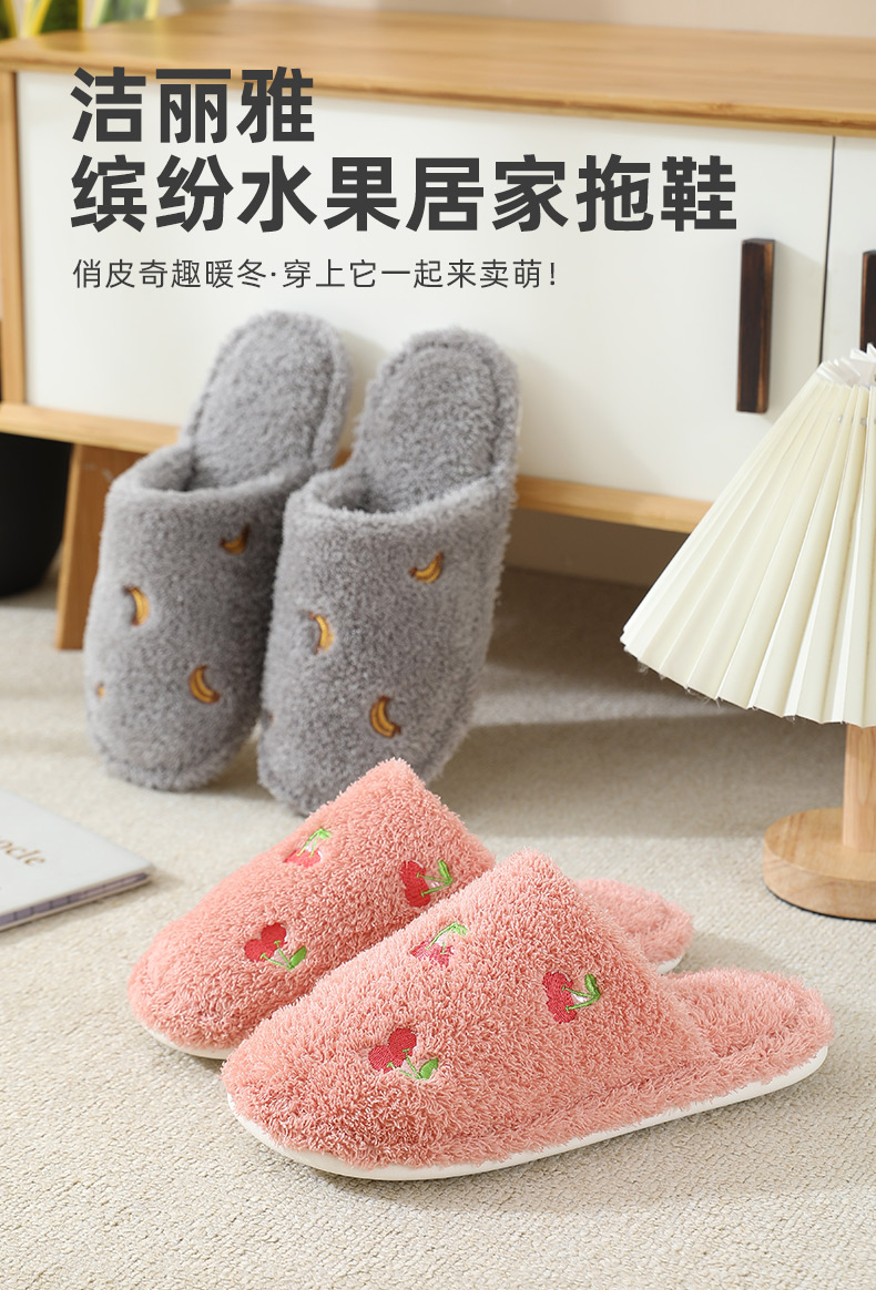 【缤纷水果居家拖鞋】 情侣家用防滑室内毛绒保暖棉拖鞋男女冬季
