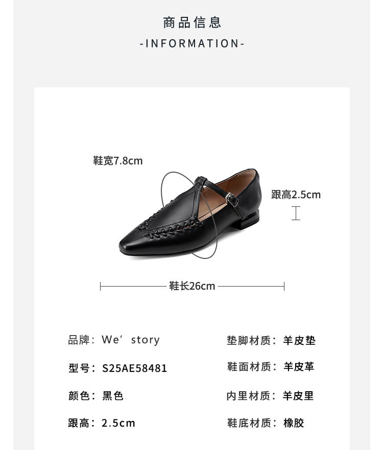 Westory2025年春季平跟尖头玛丽珍通勤休闲浅口单鞋S25AE58481