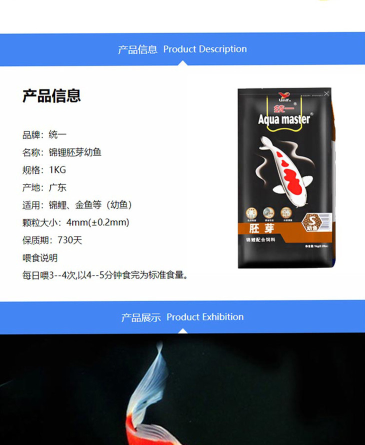 统一锦鲤鱼饲料鱼食黑金鱼增体正品鱼粮育成专用增色不易浑水