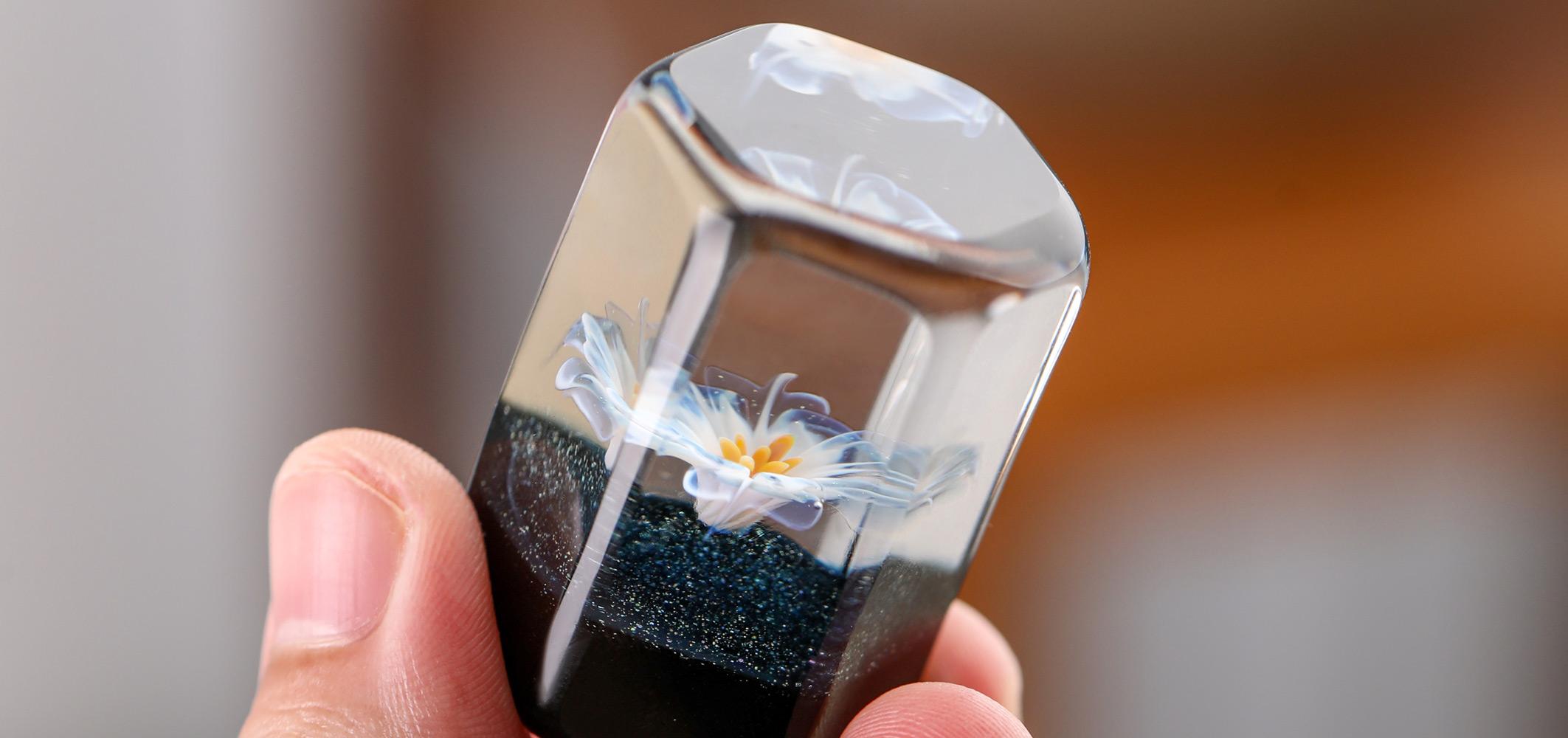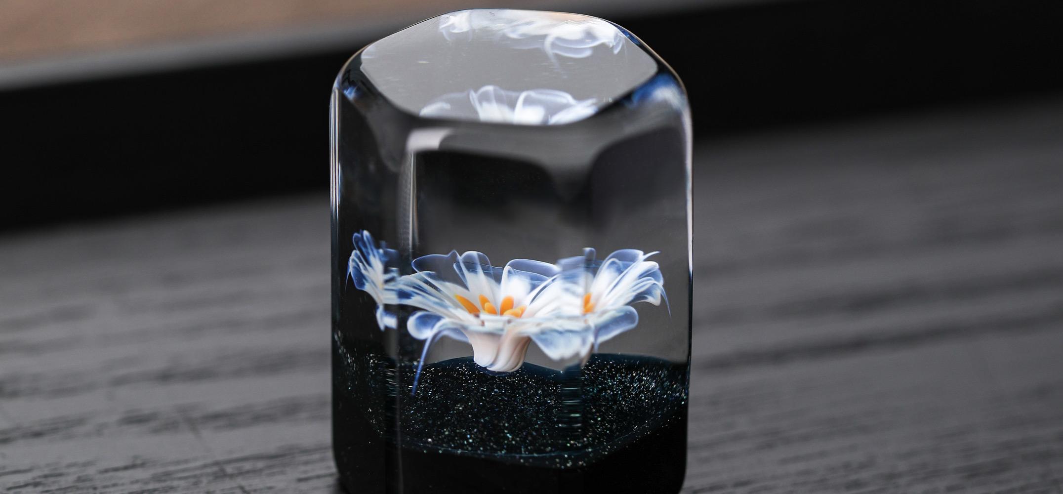 禾器花语·星悦盖置 手工花朵 盖托 玻璃创意摆件 茶道零配件