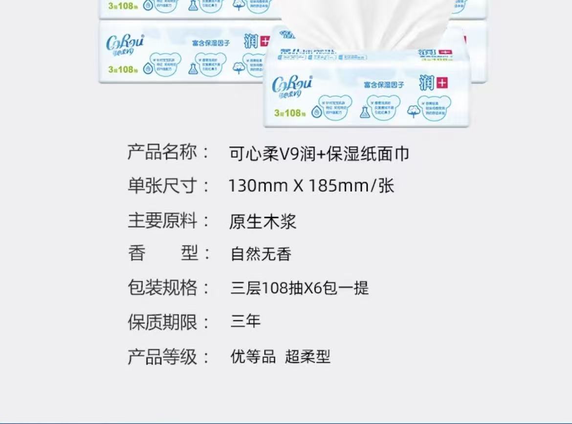 【云优选】可心柔V9婴儿柔纸巾新生儿宝宝专用保湿乳霜纸云柔巾抽纸108抽 72小时内发货(发出非质量问题 不退不换,介意慎拍)
