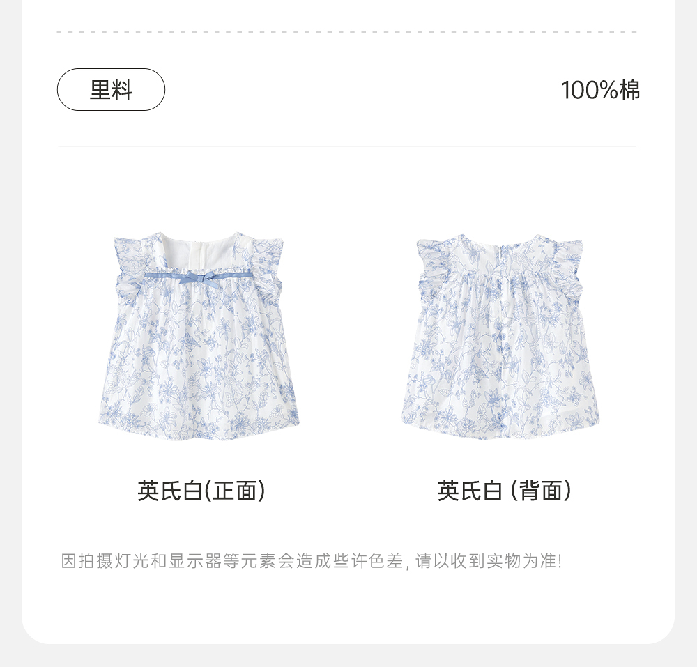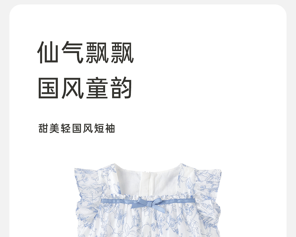 英氏女童短袖T恤夏季透气背心国风2025新款宝宝上衣YRTCJ2R053A