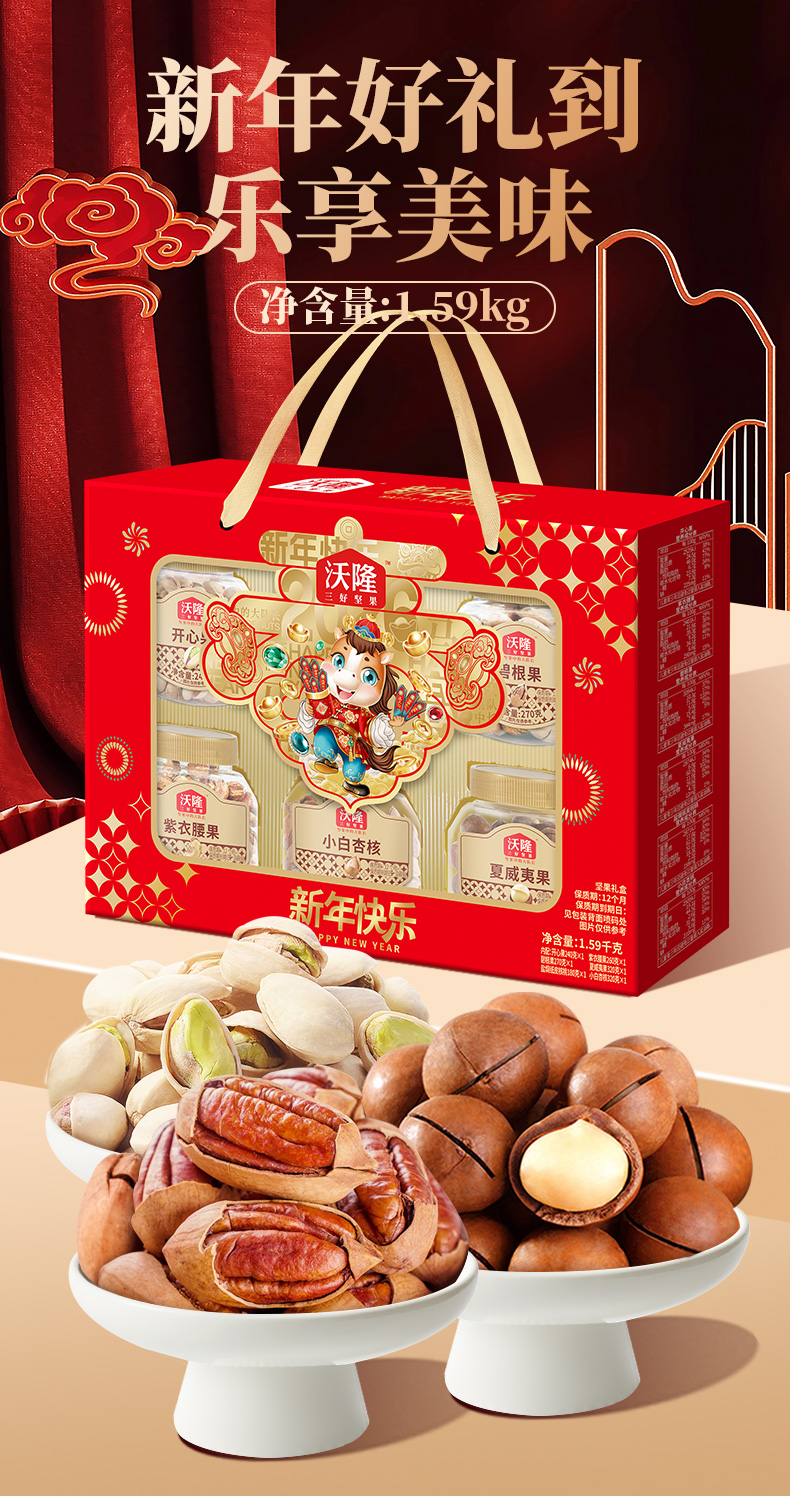 沃隆新年快乐坚果礼盒1.59kg-YGF