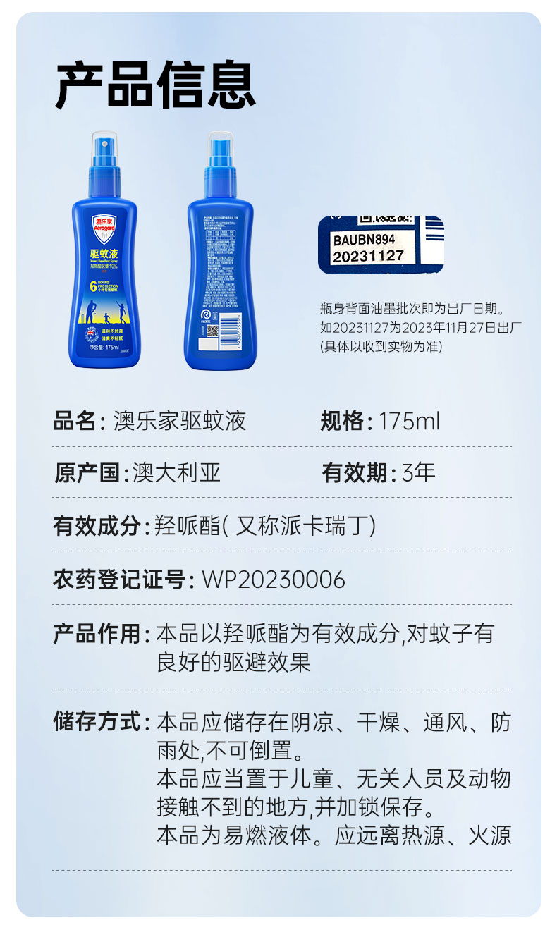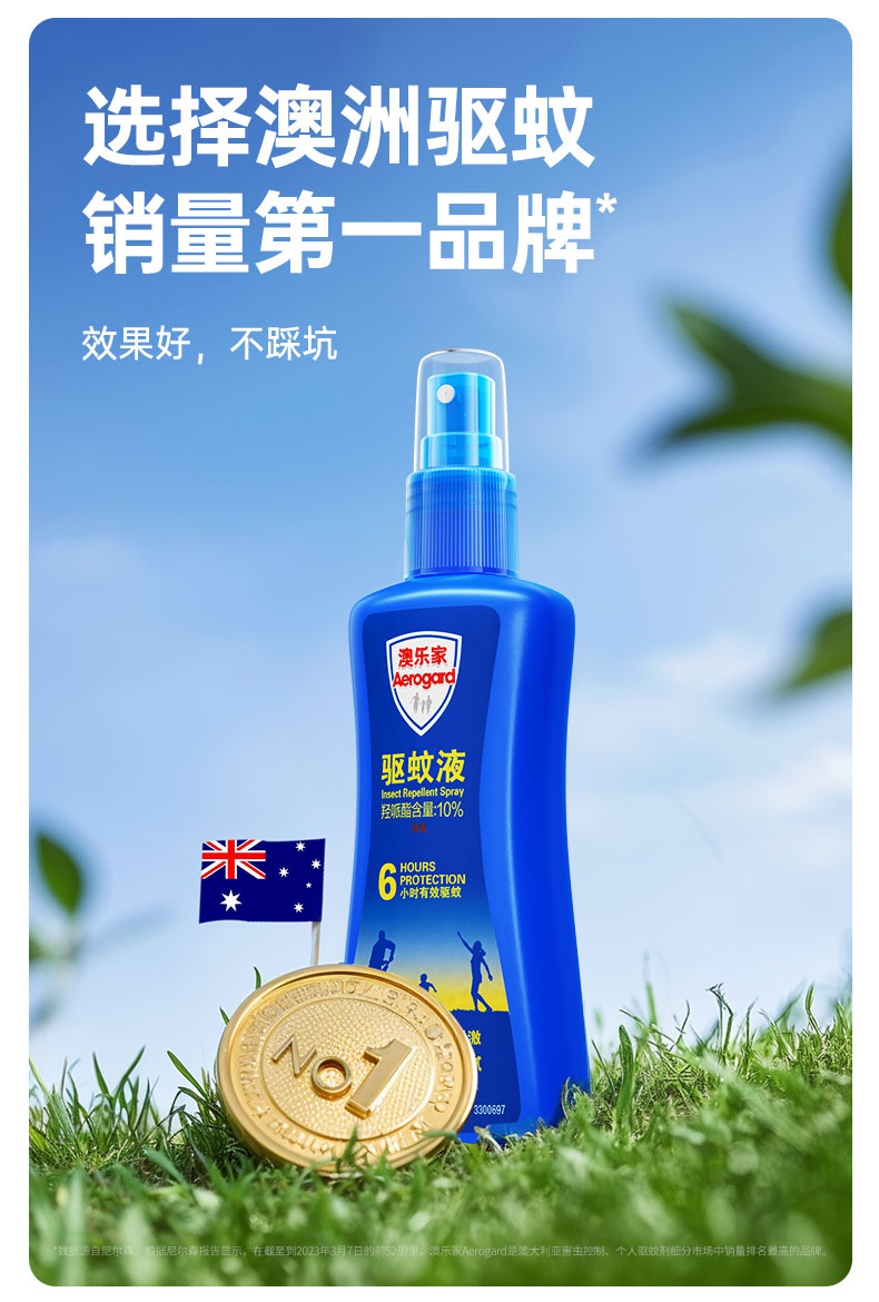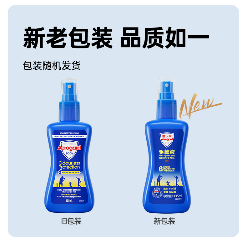 四月【老阳杂货铺专属】澳洲进口 Aerogard澳乐家驱蚊液喷雾和驱蚊走珠 家用户外防蚊水 无味 低刺激 有效成分派卡瑞丁