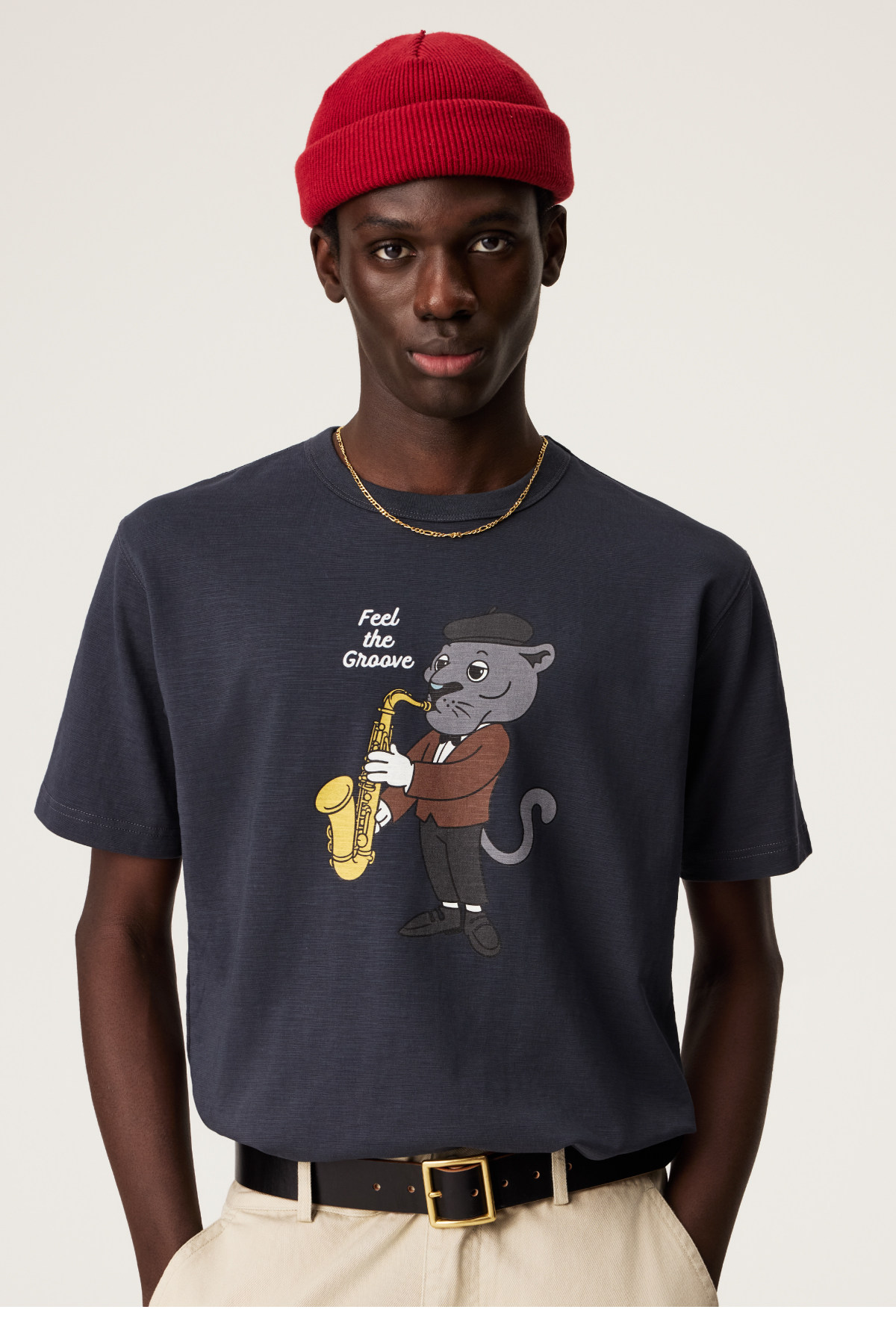 SUPERTOFU(SPTF)/ACDT-SS26-T003/爵士黑豹 竹节棉 柔软舒适 数码印花 短袖T恤