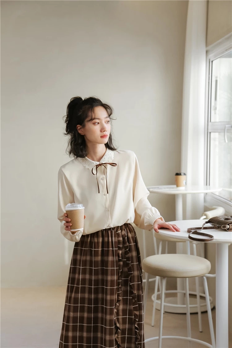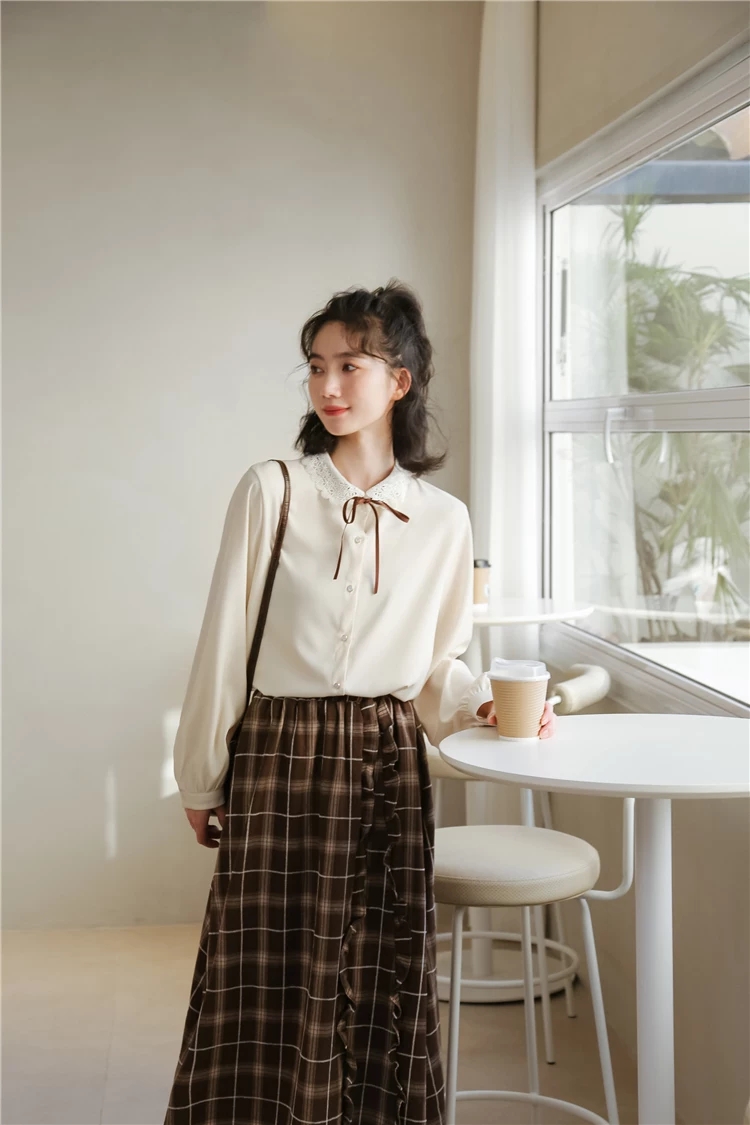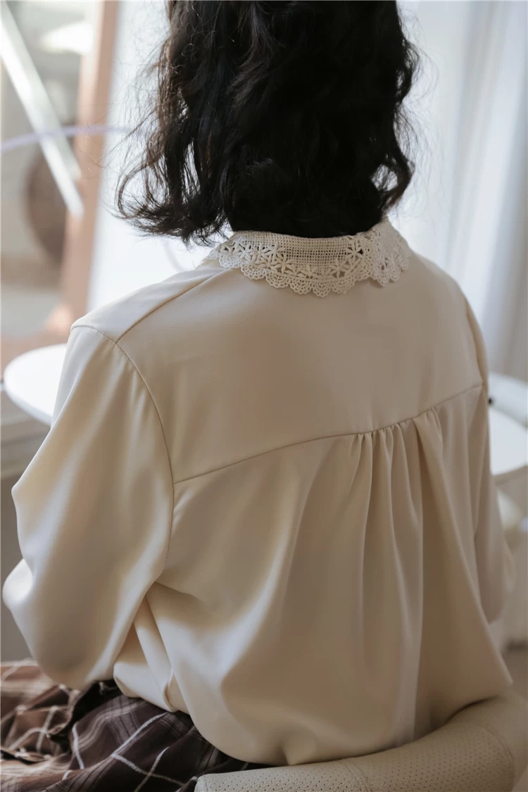 395# 蕾丝领上衣 颜色:米杏 尺码:均码