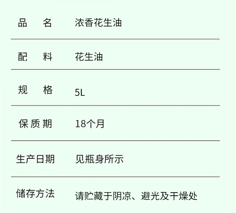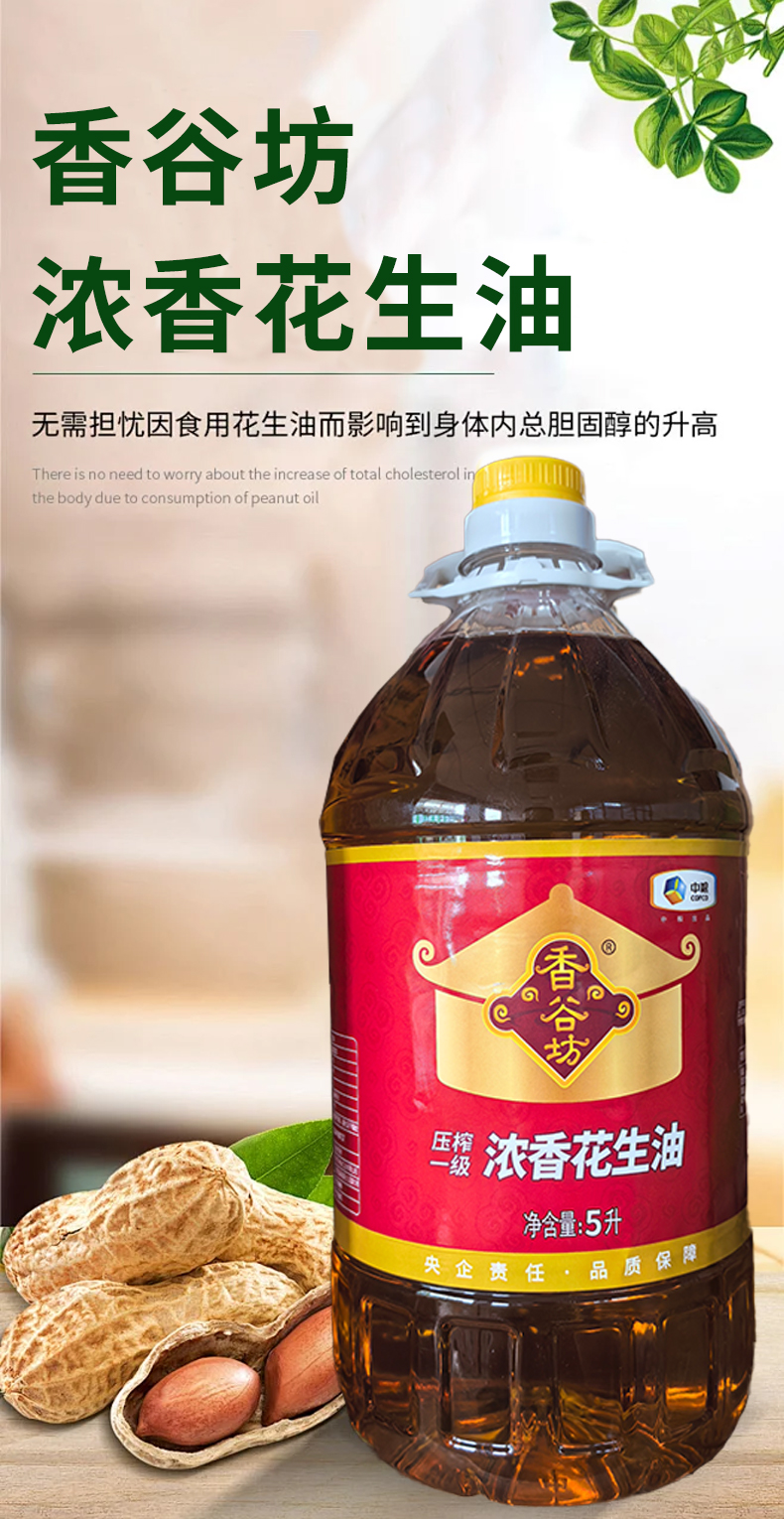 中粮香谷坊压榨一级浓香花生油(5L/桶)生产日期: 1月