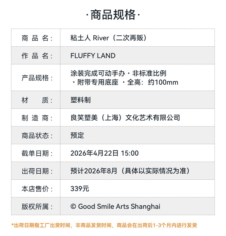 【GSC预售定金】粘土人 River(二次再贩)FLUFFY LAND 附官方特典