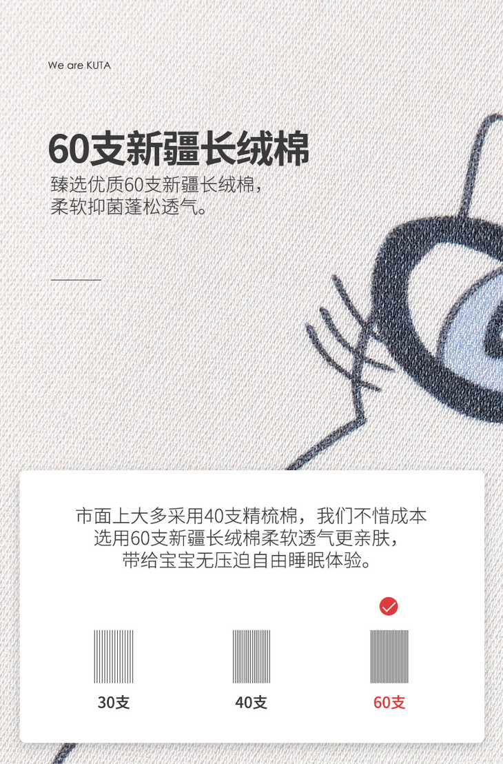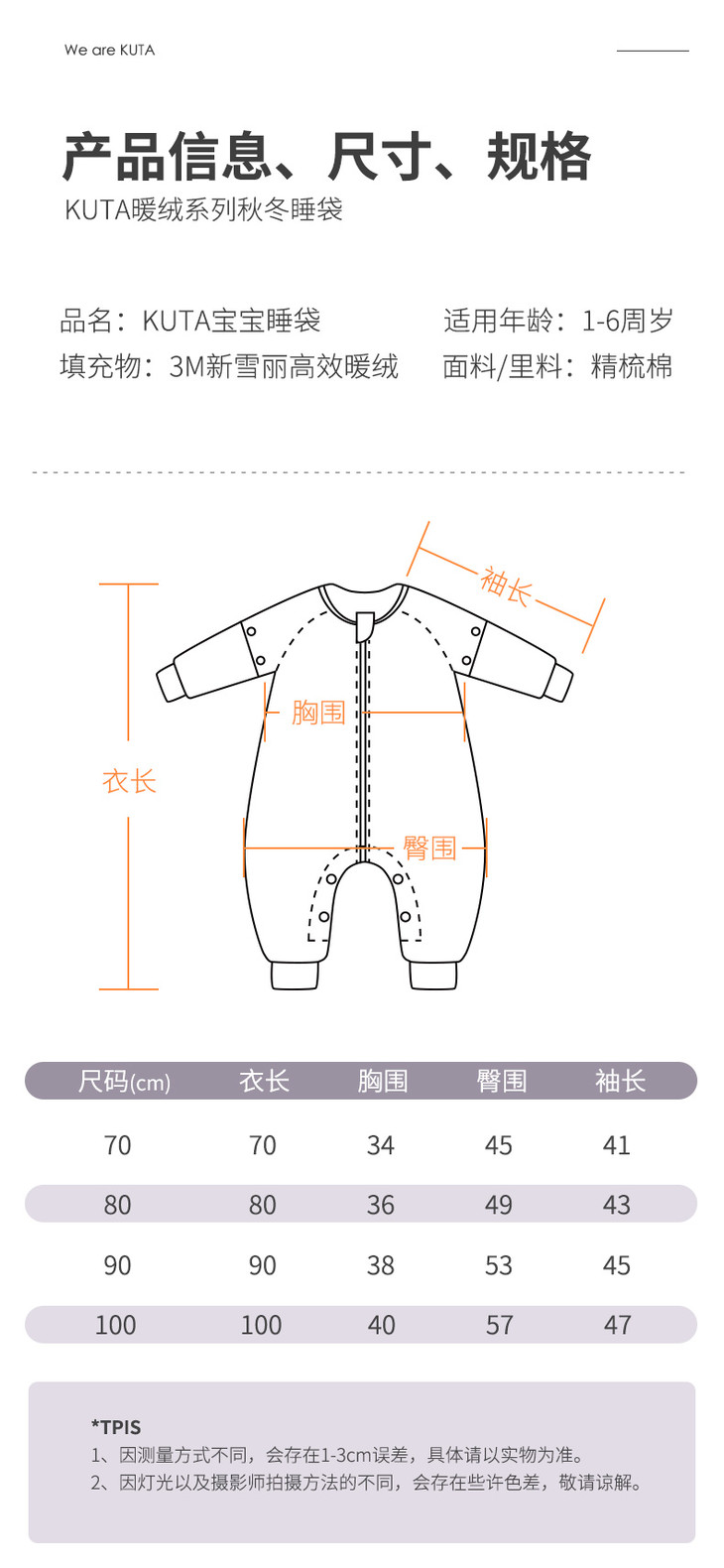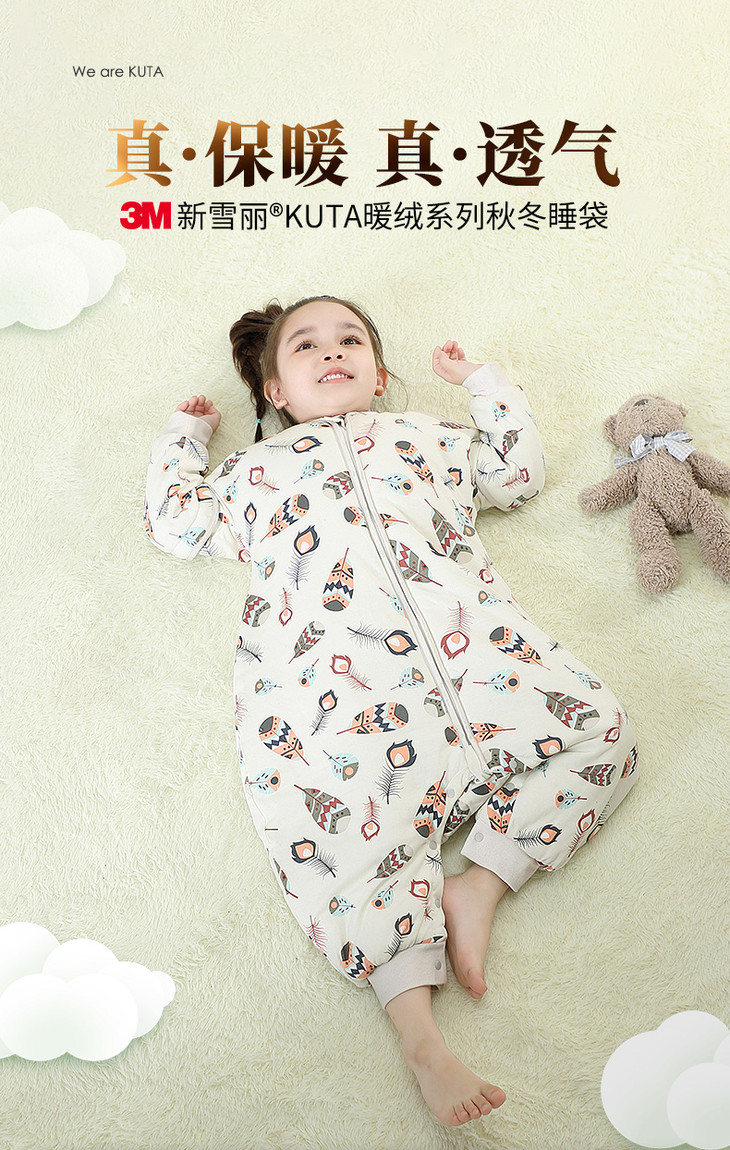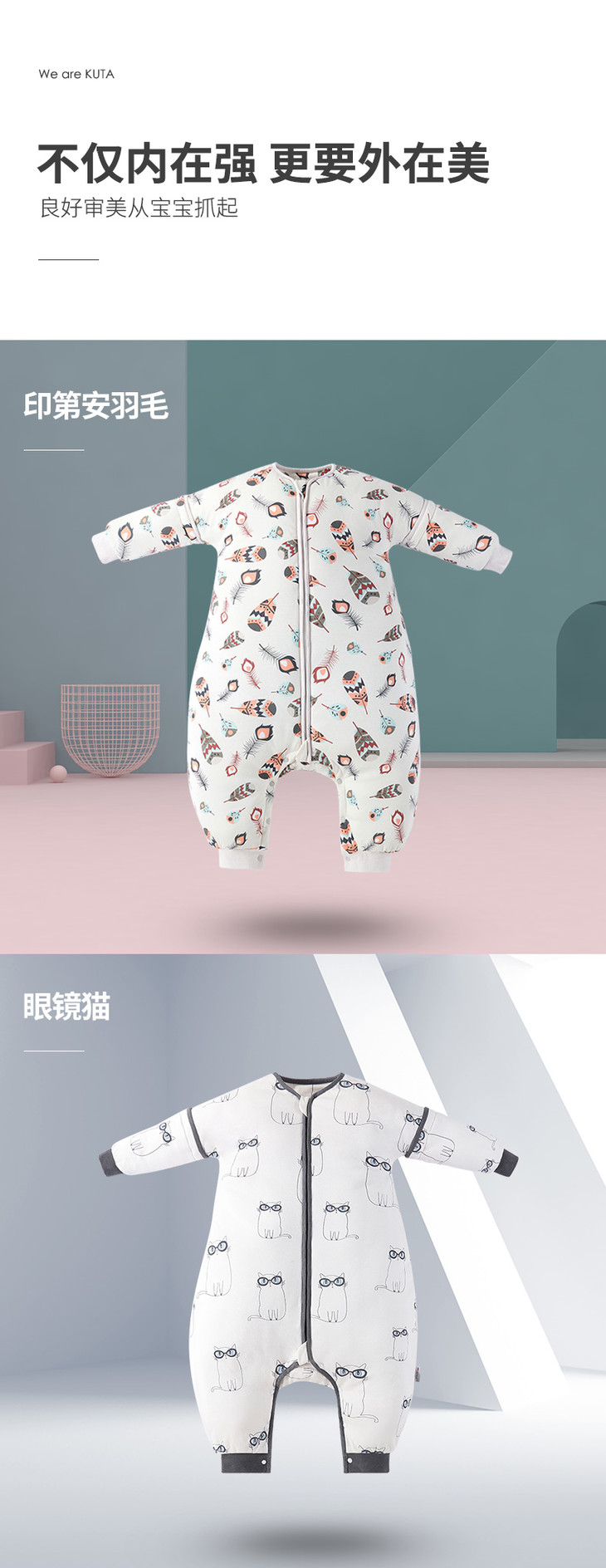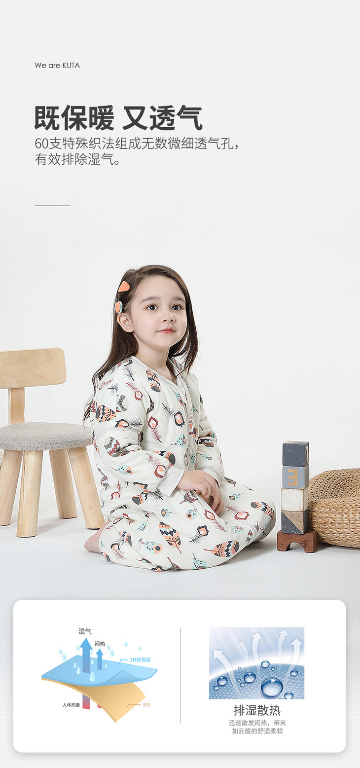 KUTA睡袋婴儿秋冬季防踢被宝宝四季通用款儿童睡袋春秋冬季纯棉分腿