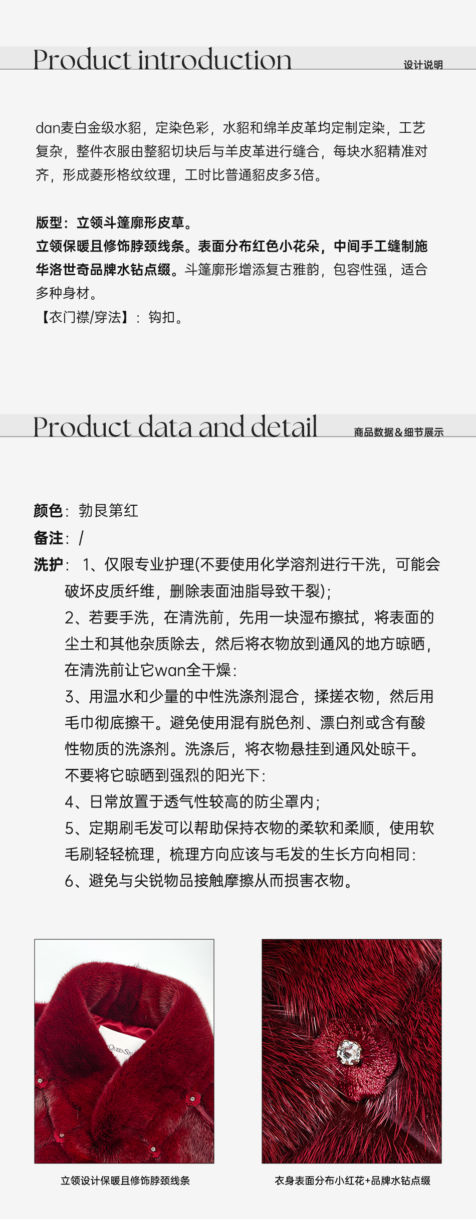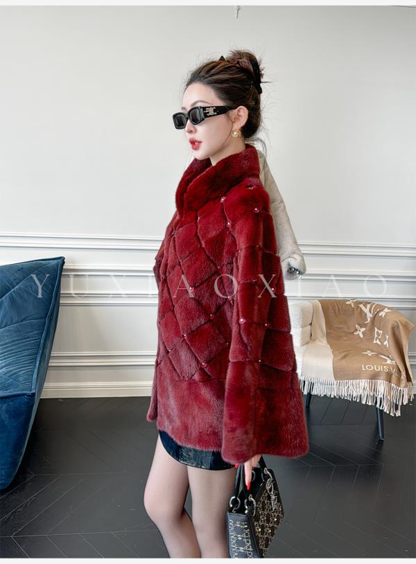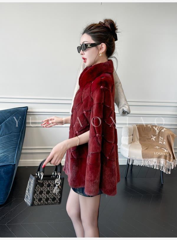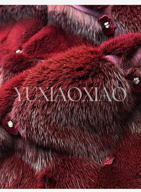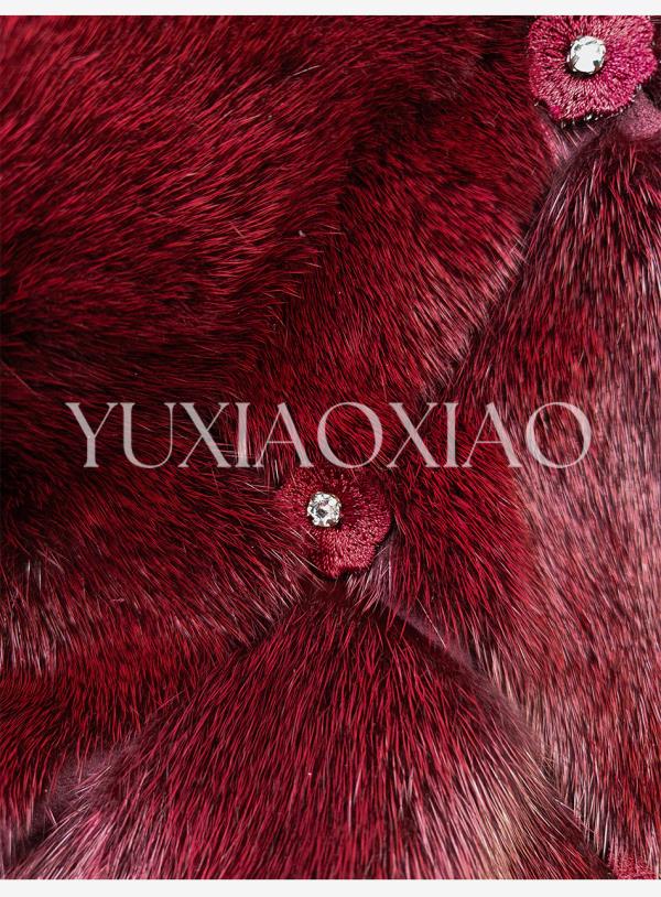 余潇潇【勃艮第贵妇】丹麦水貂定染菱形格纹斗篷廓形立领钩扣皮草