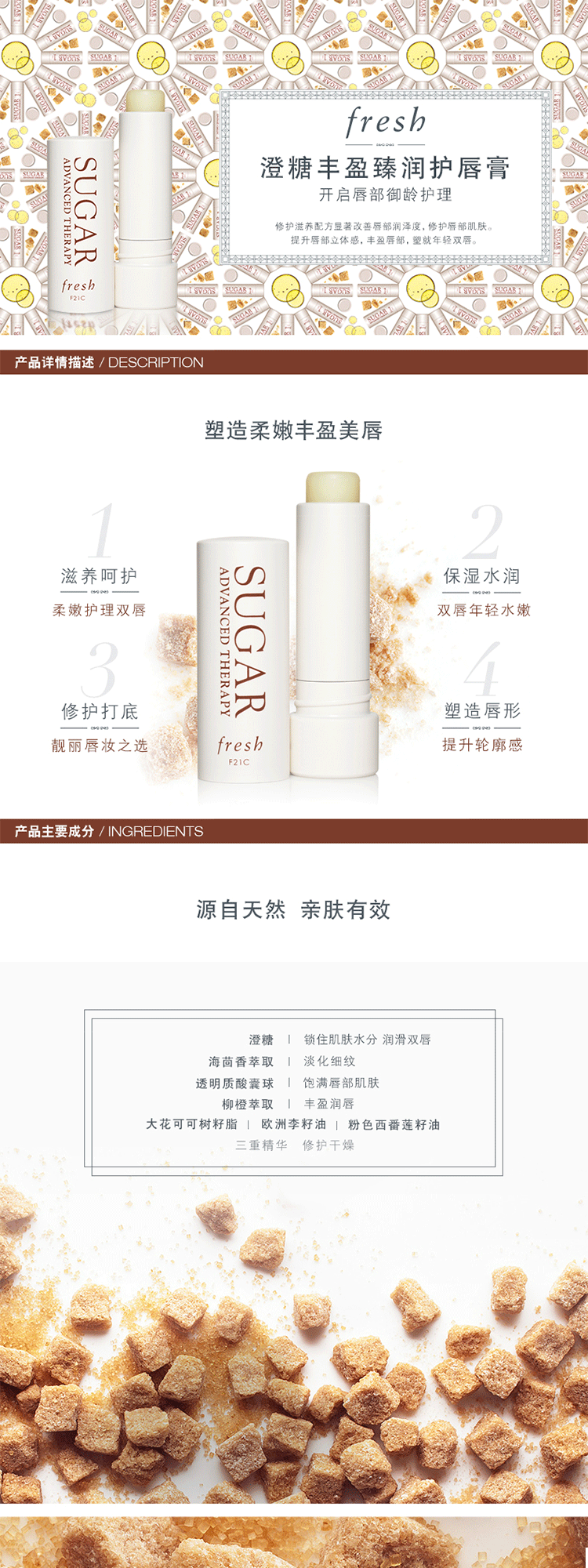 大陆 Fresh/馥蕾诗澄糖丰盈臻润护唇膏4.3g