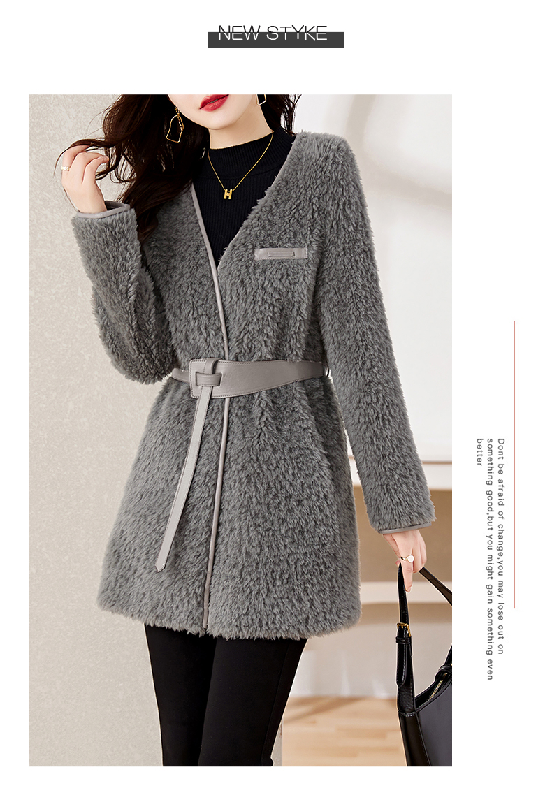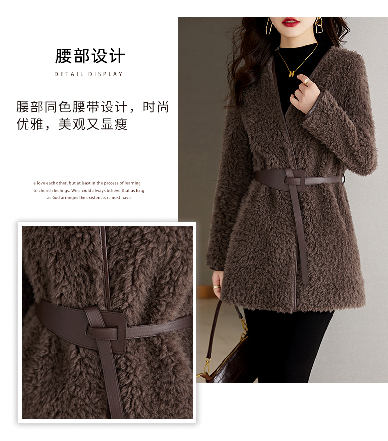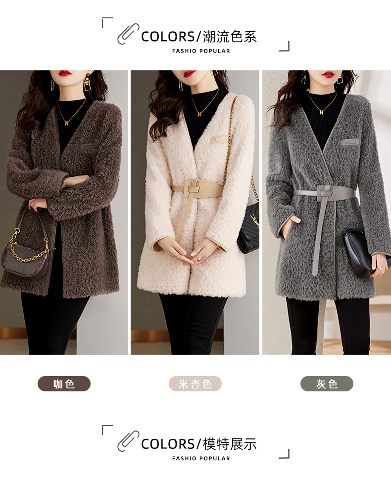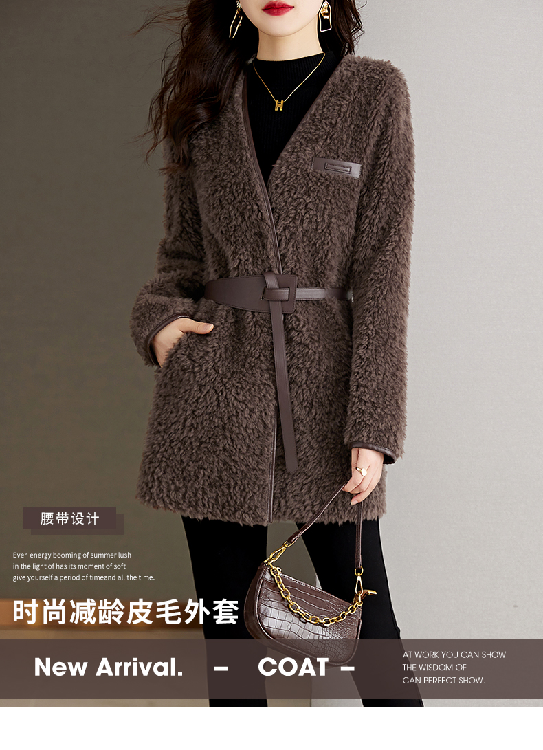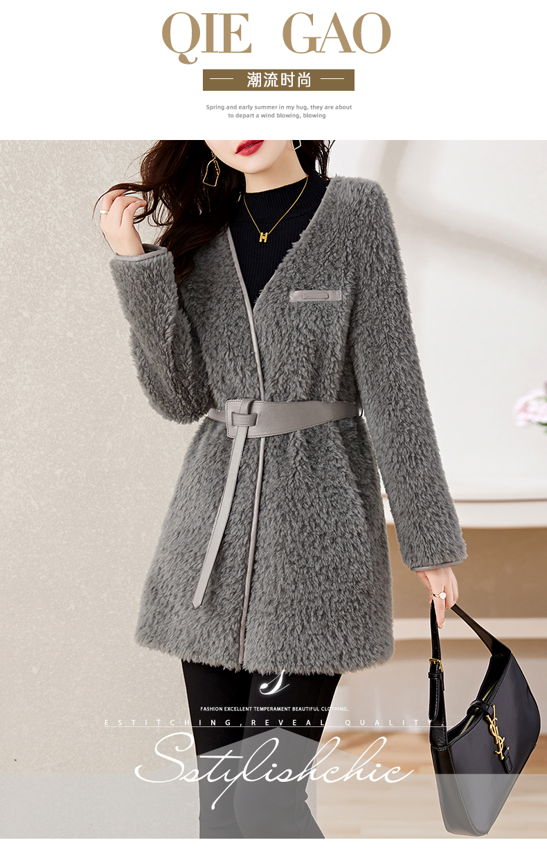 时尚气质保暖皮毛一体外套配腰带HR-GJC7231