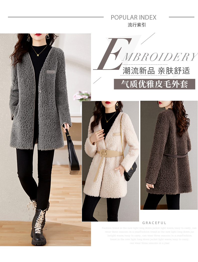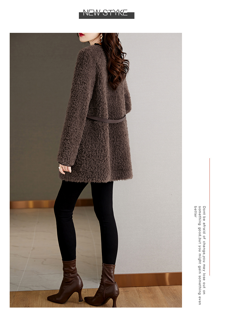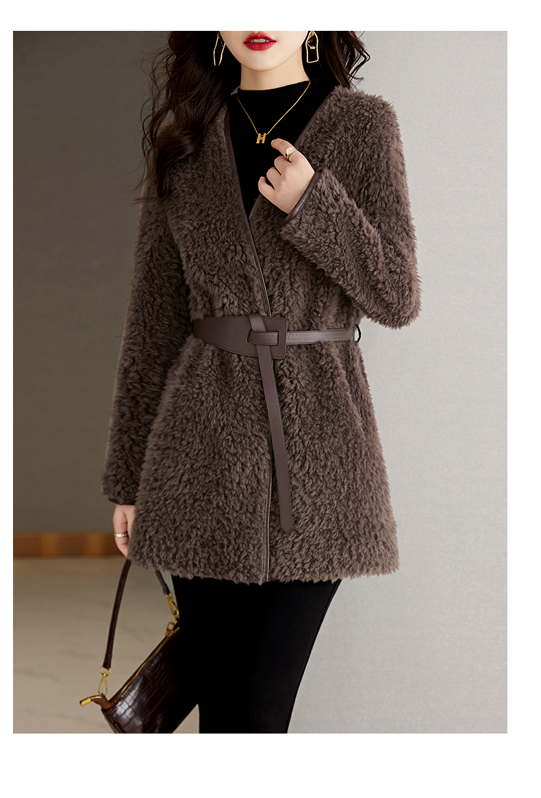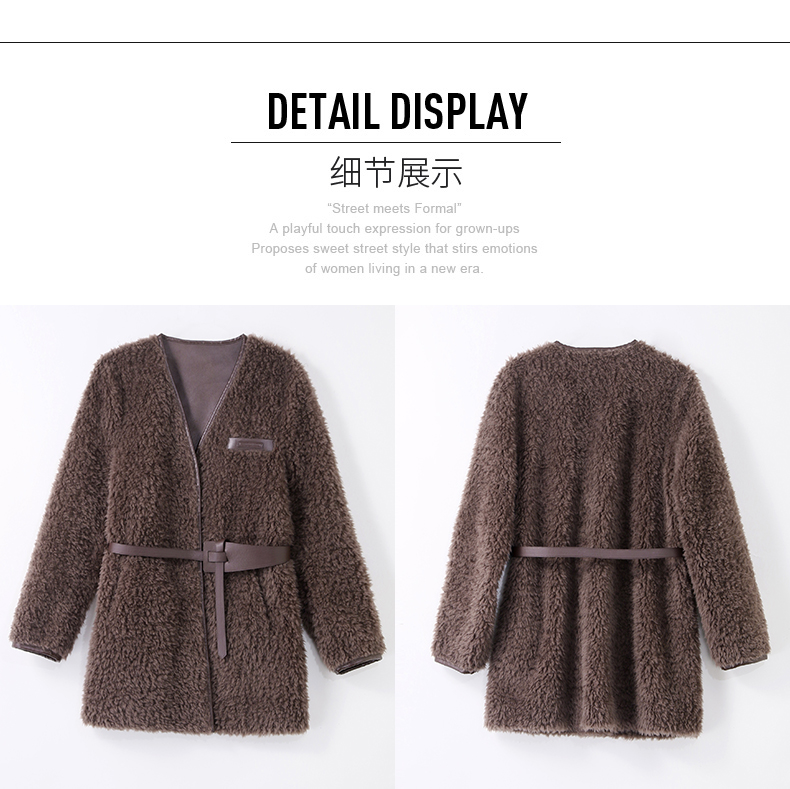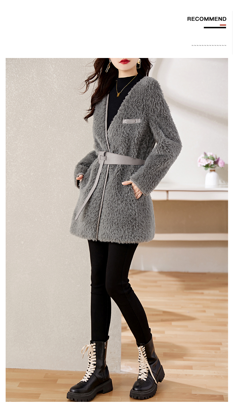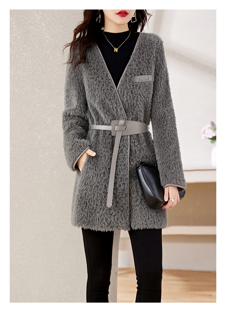 时尚气质保暖皮毛一体外套配腰带HR-GJC7231