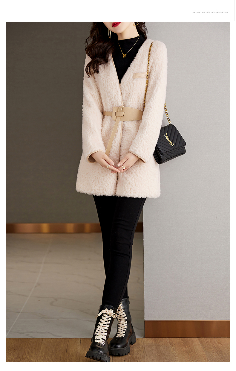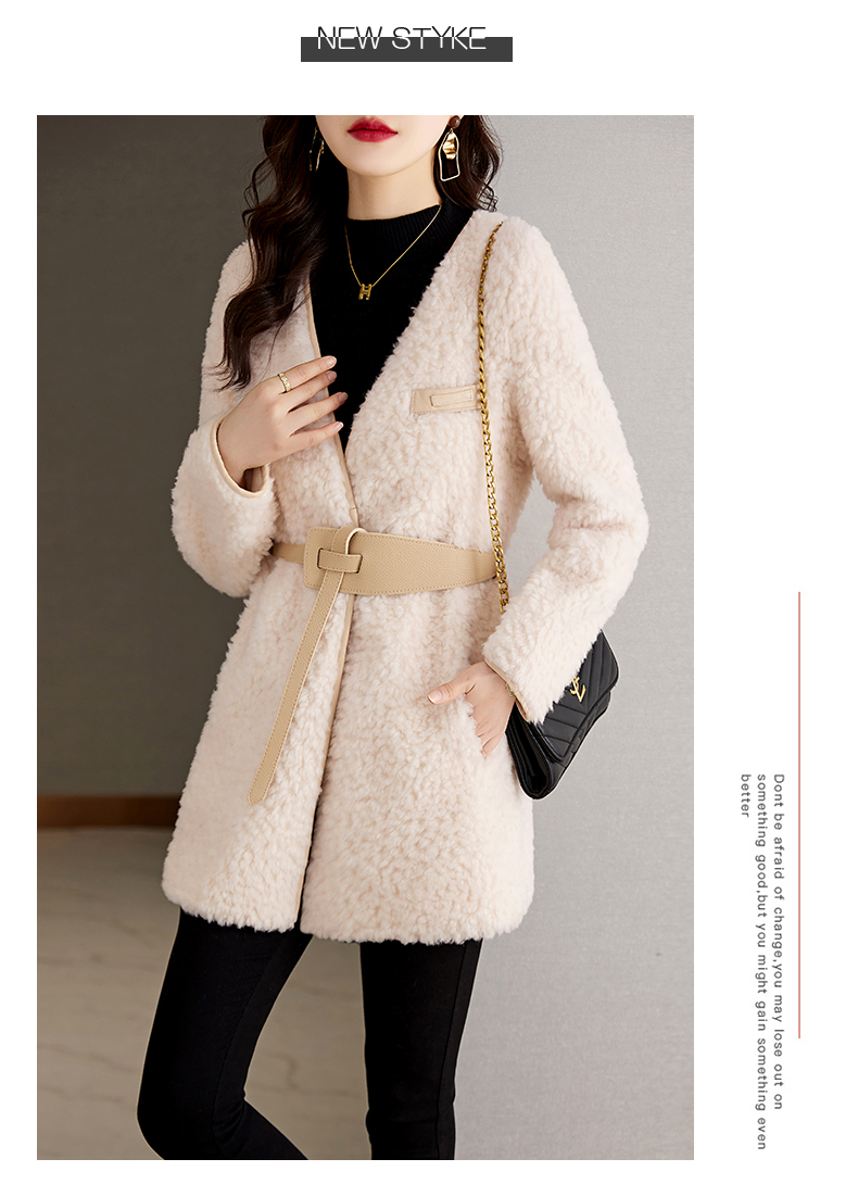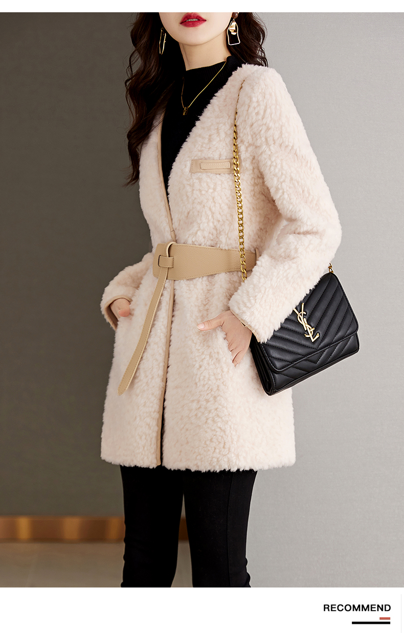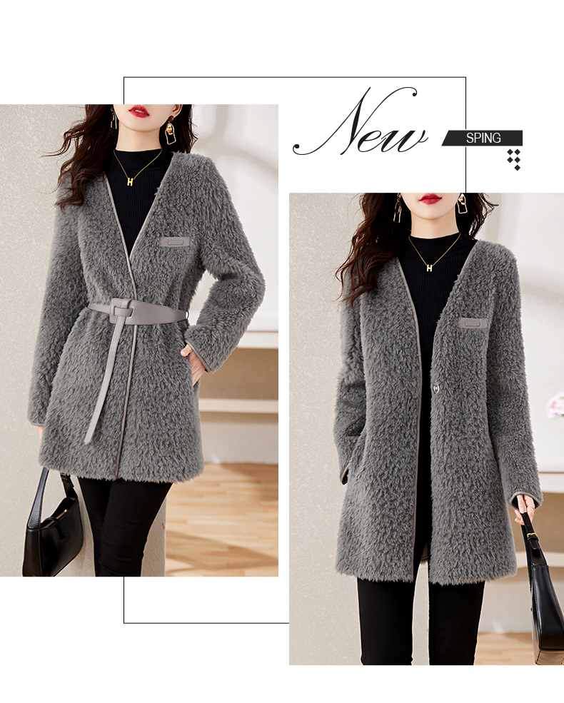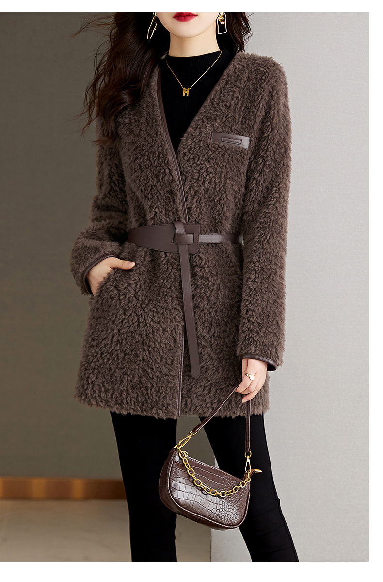 时尚气质保暖皮毛一体外套配腰带HR-GJC7231